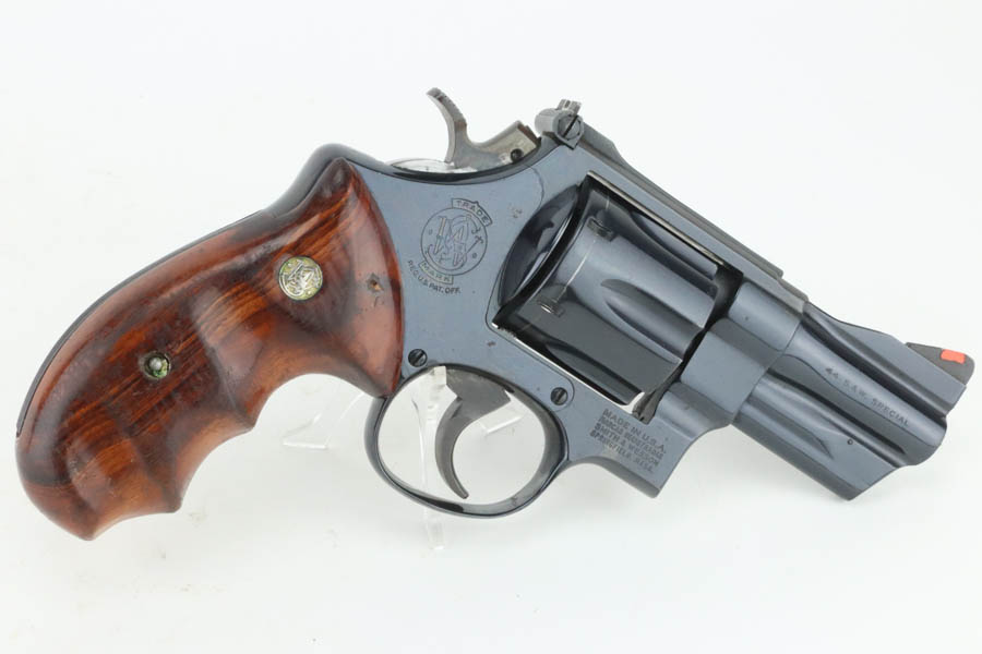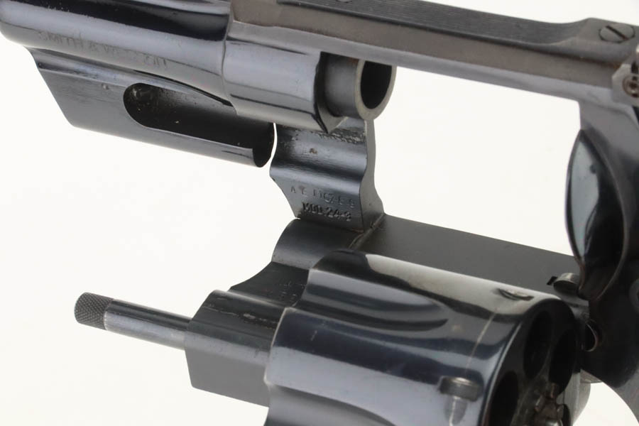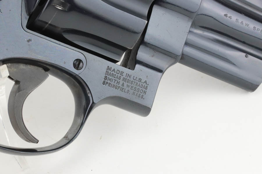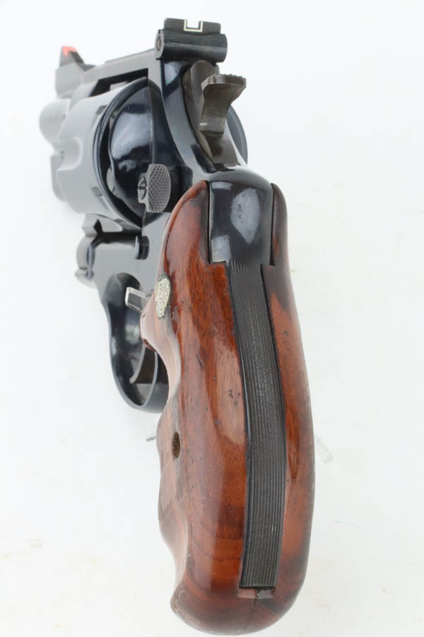 8/9/24 – This is a minty example of a Smith & Wesson Model 24-3 Revolver. It is chambered in .44 S&W Special and has a 3 inch barrel. It has retained nearly all of its original high polish finish with very minor muzzle wear and a roll mark on the cylinder. Fitted with wood grips – some wear on the high edges. Mint bore.