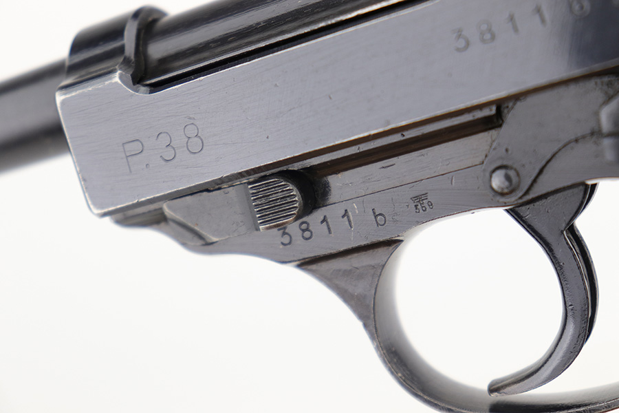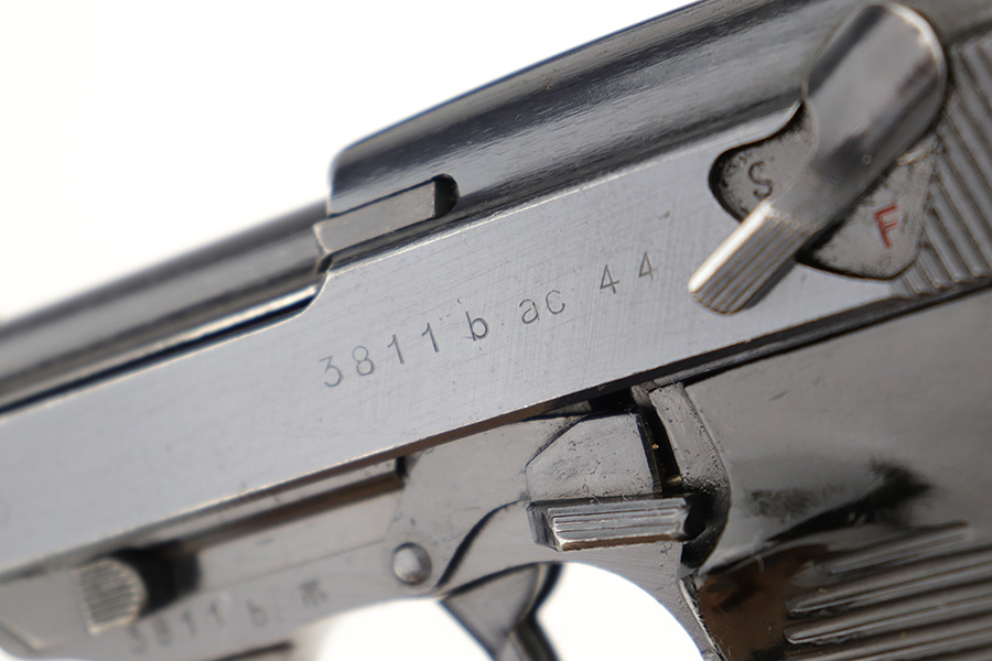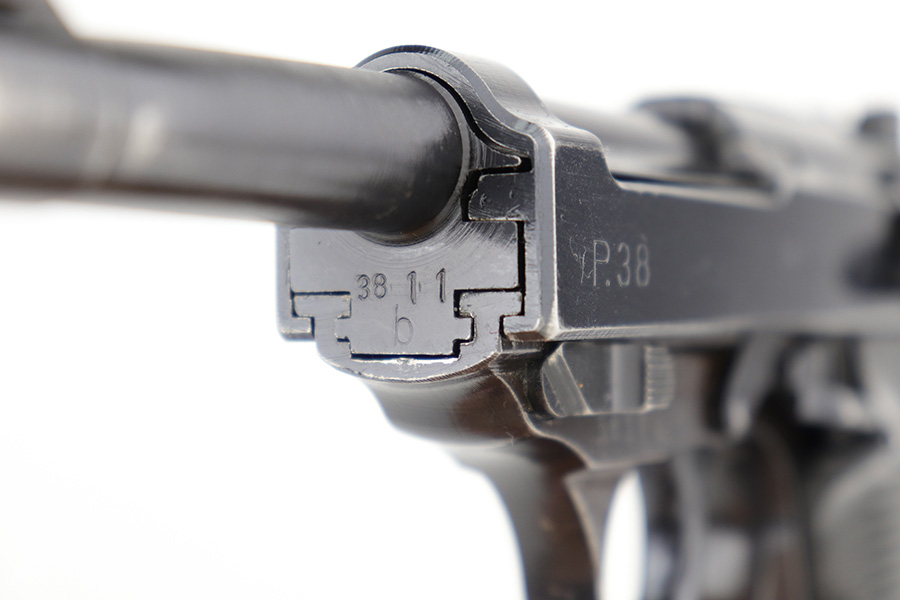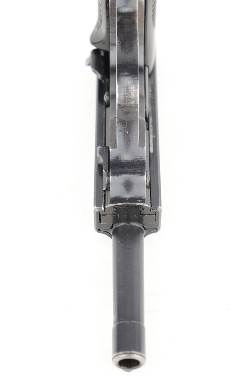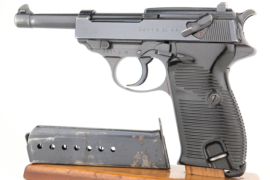 3/1/23 – This is a minty example of an AC 44 Walther P.38 issued to the Nazi military in 1944. It is all matching and has the proper “Eagle 359” military acceptance proofs. It has retained about 98% of its original bluing with just minor muzzle wear and hints of wear on some of the high edges. Fitted with an excellent set of period-correct blackish-brown bakelite grips. Comes with a period-correct P.38v magazine with a very faint “Eagle 359” proof. The bore is shiny with very strong rifling and just hints of pin-pricking in the grooves. De-cocker is functional.