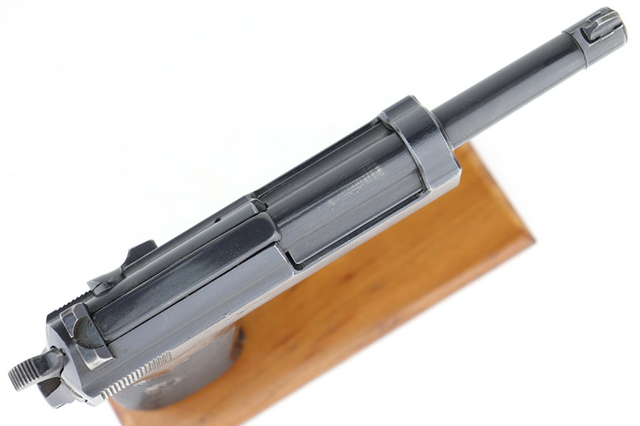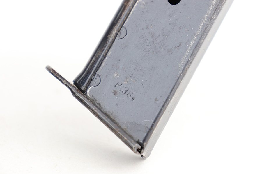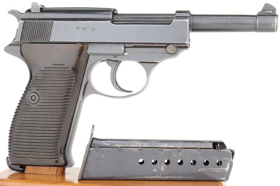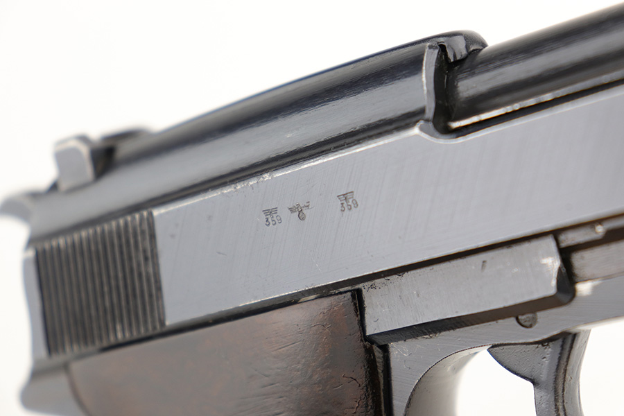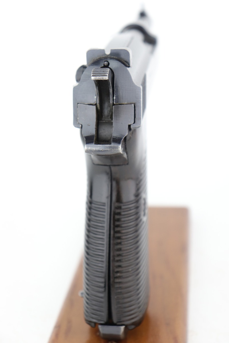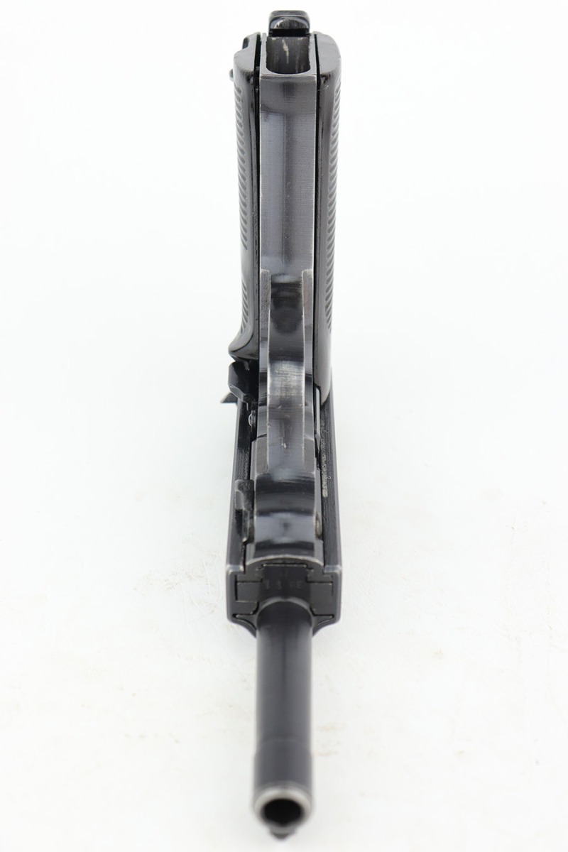 3/1/23 – This is a minty example of an AC 44 Walther P.38 issued to the Nazi military in 1944. It is all matching and has the proper “Eagle 359” military acceptance proofs. It has retained about 98% of its original bluing with just minor muzzle wear and hints of wear on some of the high edges. Fitted with an excellent set of period-correct blackish-brown bakelite grips. Comes with a period-correct P.38v magazine with a very faint “Eagle 359” proof. The bore is shiny with very strong rifling and just hints of pin-pricking in the grooves. De-cocker is functional.
