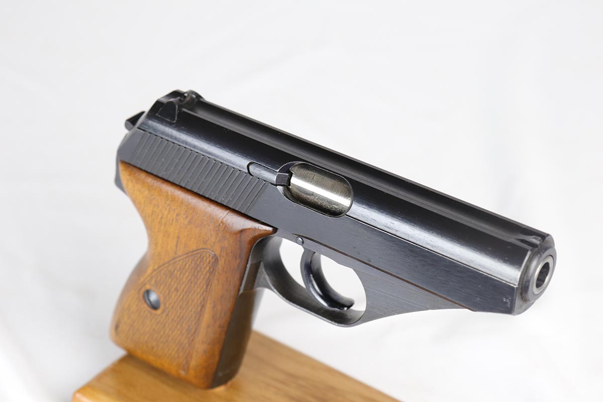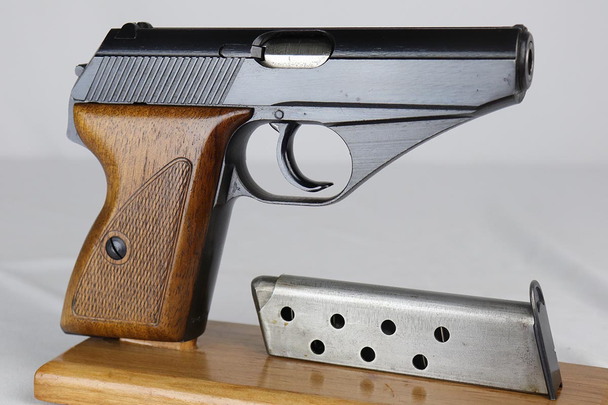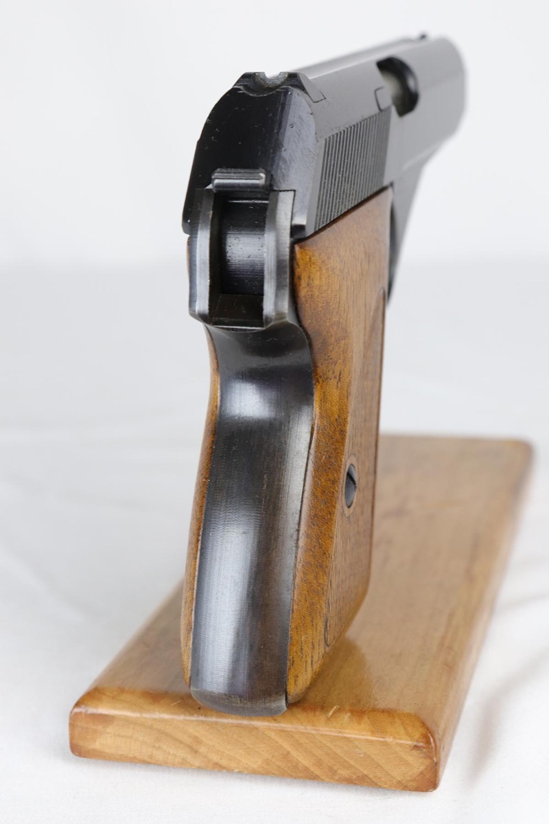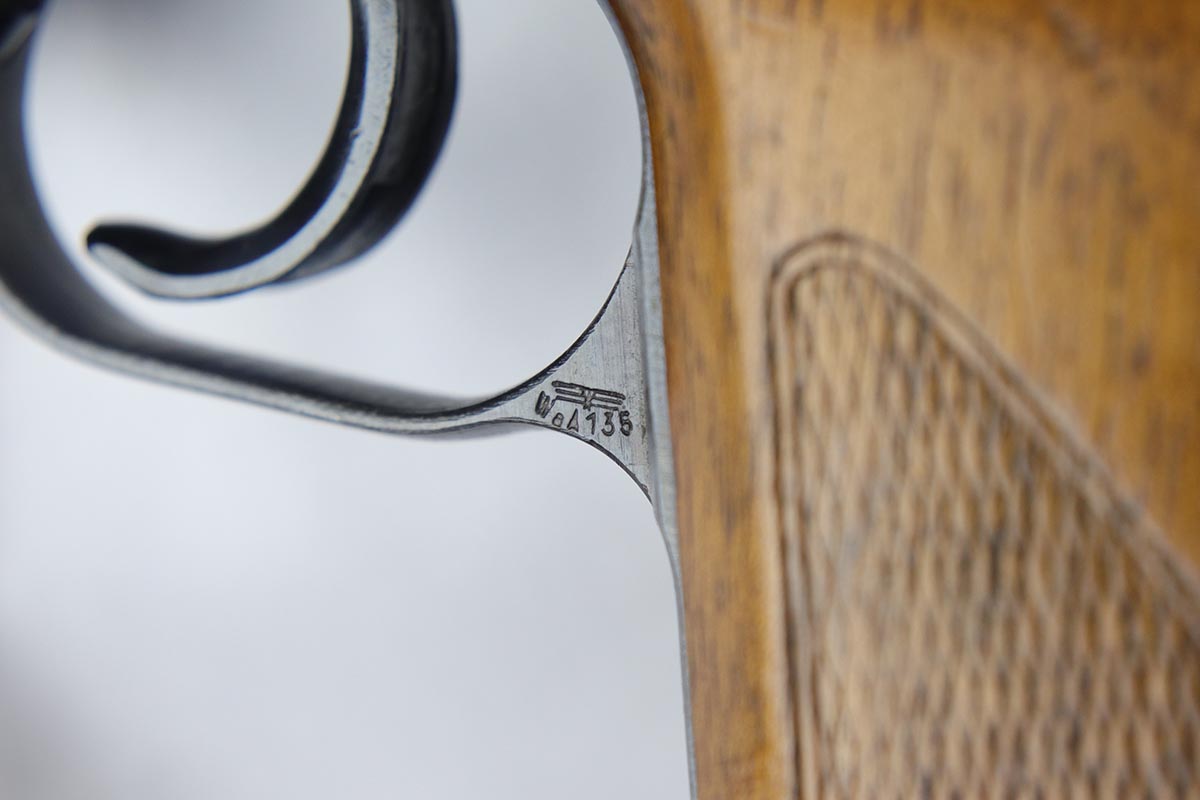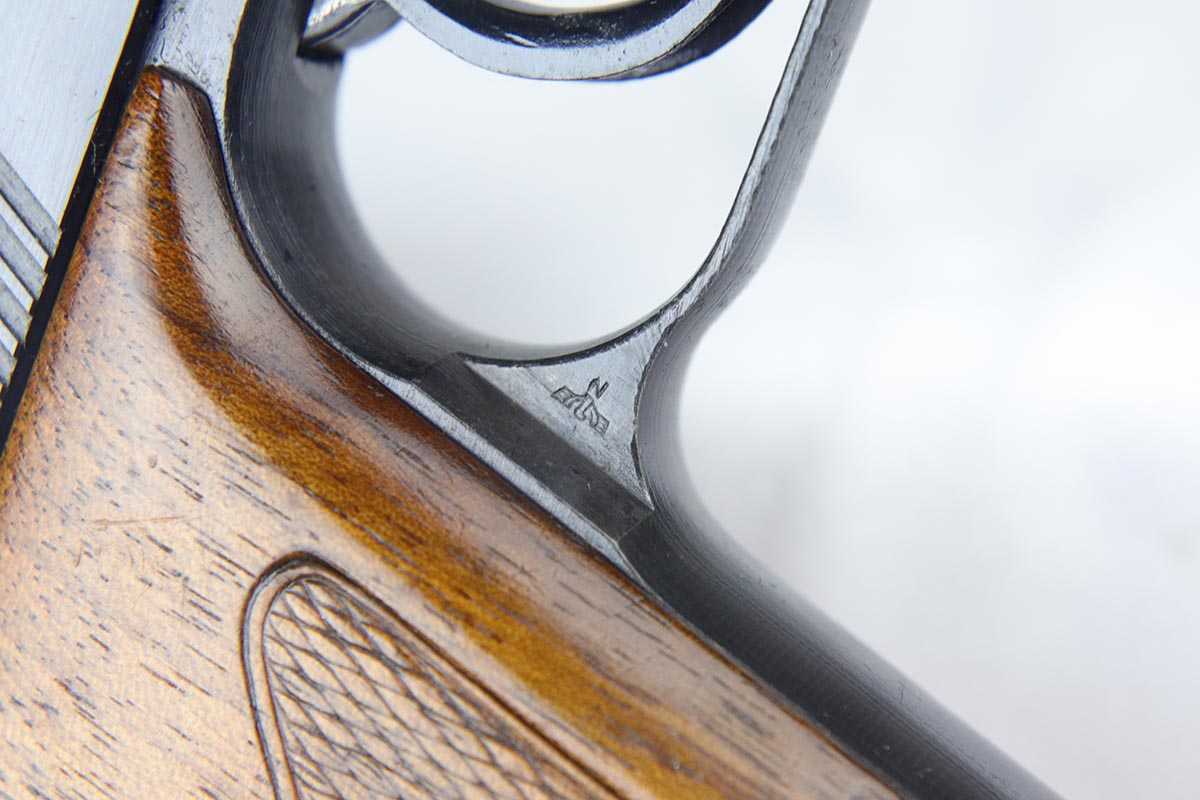 8/10/18 – This is a near-mint Mauser HSc that was issued to the German Army at the end of World War II.  Manufactured in 1945, this pistol is all original and matching with 98-99% blue remaining.  The only notable finish loss is on the bottom of the back strap.  Excellent grips and bore.  Half-moon magazine.