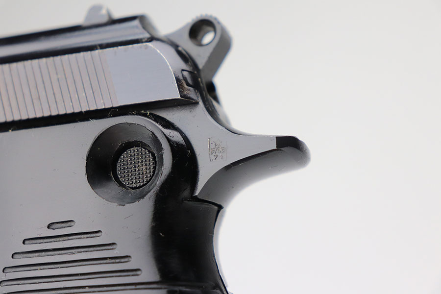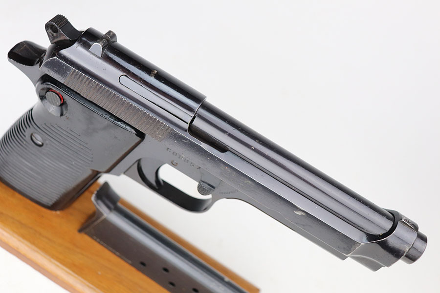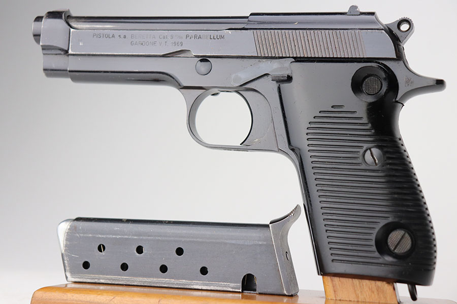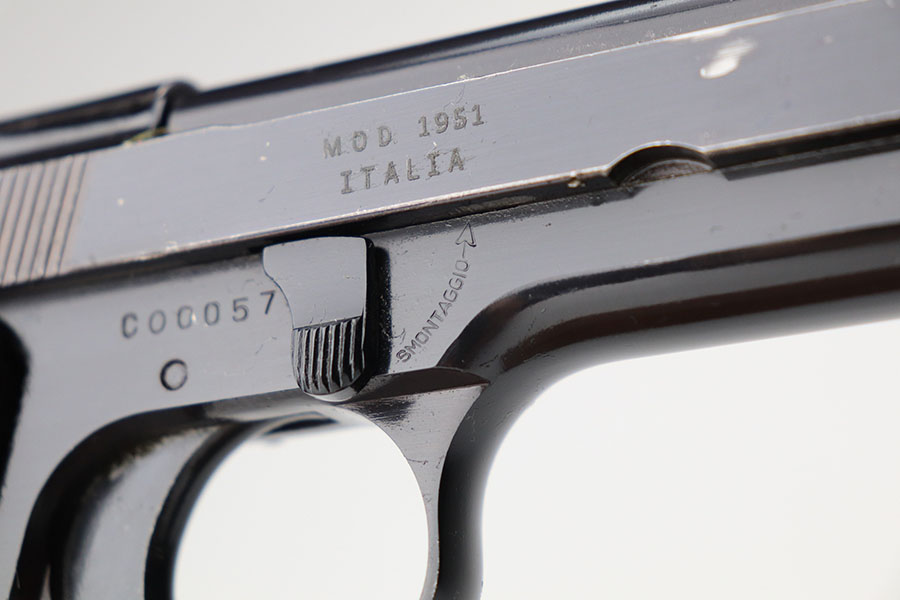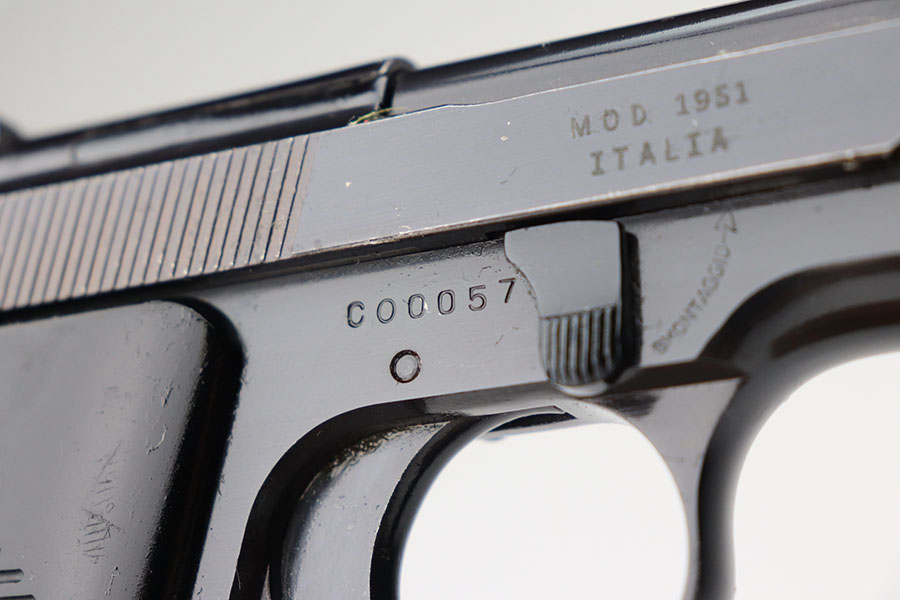 2/8/21 – This is a minty example of a Beretta Model 1951, chambered in 9mm. Manufactured in 1969. Small import mark on the underside of the trigger guard. The gun has retained about 98% of its finish with hints of wear around the high edges and a few small marks – on the right side of the slide and the underside of the trigger guard. Some minor freckling on the top of the slide. Excellent grips. Comes with one magazine. Minty bore.