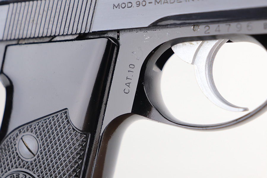 1/14/22 – This is a fairly scarce Beretta Roma Model 90, one of fewer than 25,000 produced. The finish is nearly completely intact, with virtually no finish loss. Frame is date coded BR. Minty bore and correct magazine. Excellent grips. Comes with spare magazine. Import mark on frame. FFL required.