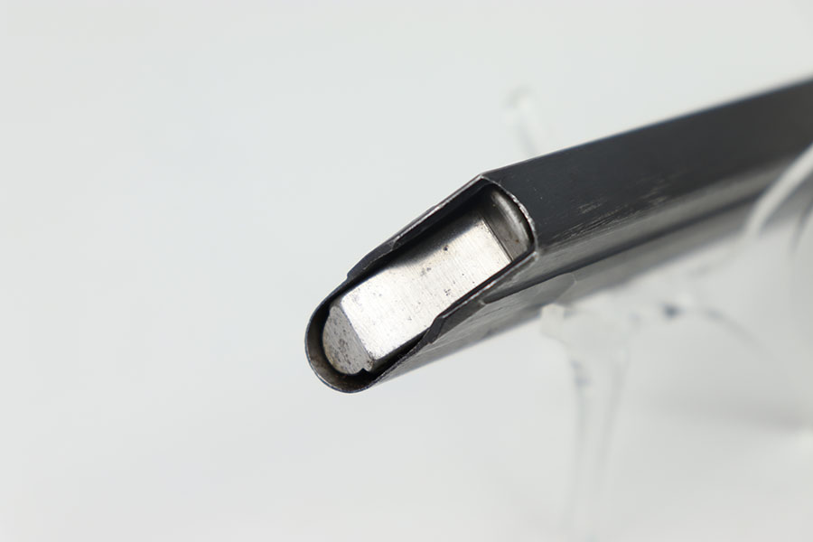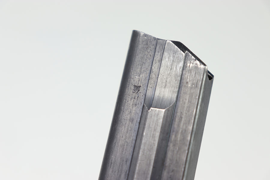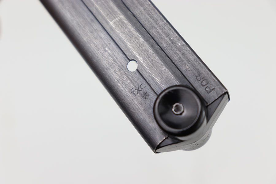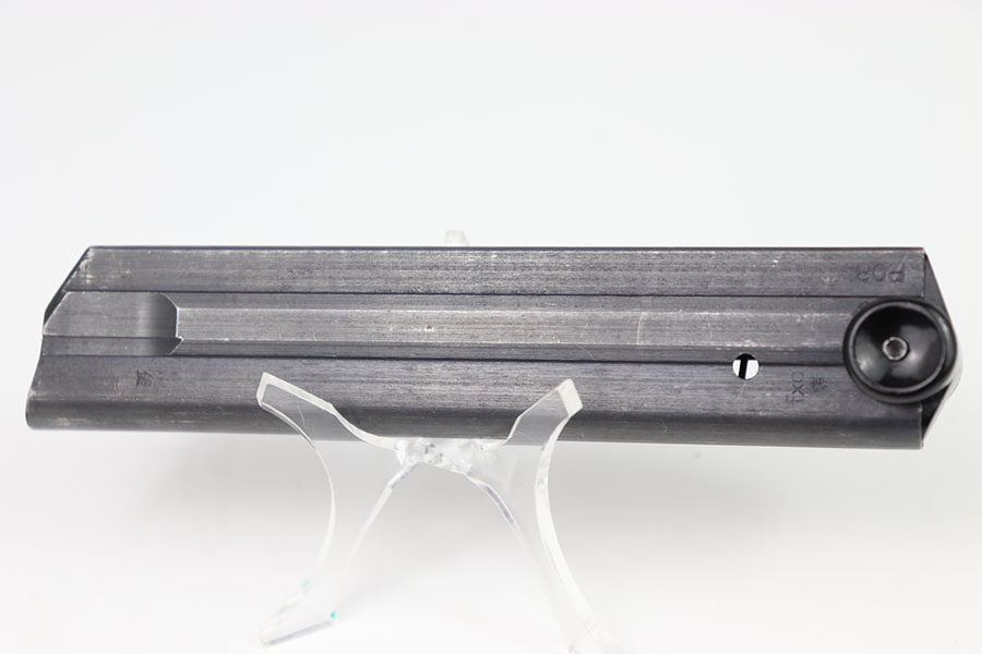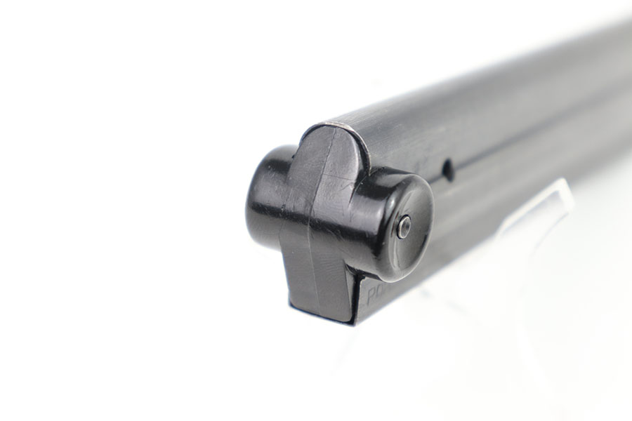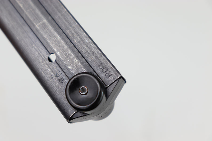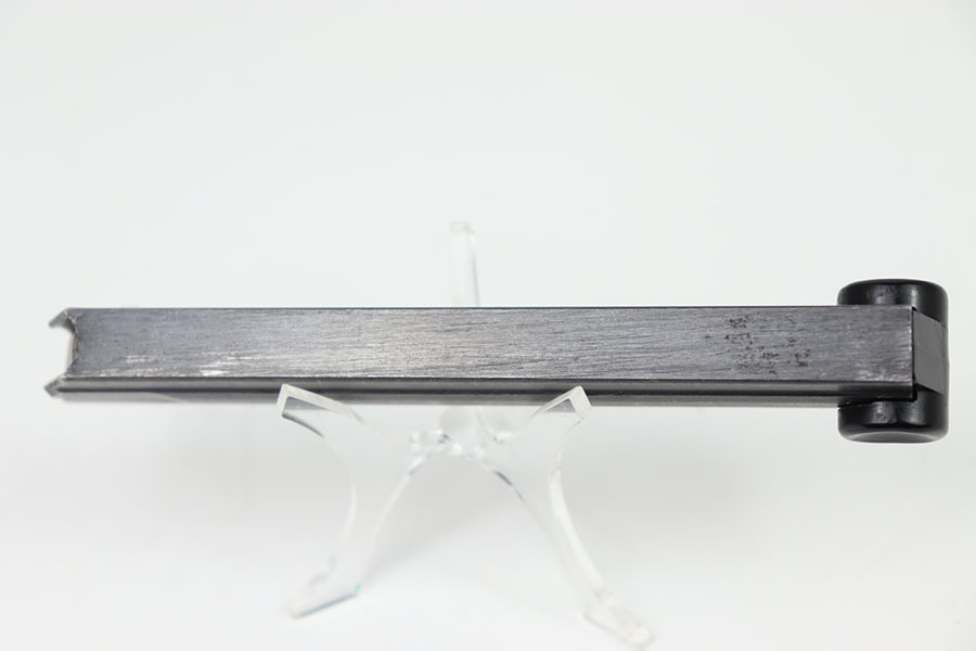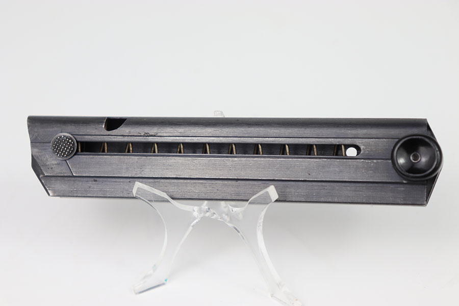 8/20/24 – This is an original WW2 FXO Luger magazine with a black bakelite base. These are commonly paired with and referred to as Black Widow Luger magazines. The magazine is in minty condition with very few signs of wear. The left side of the tube is “fxo” maker stamped by Haenel with two eagle/37 proof stamps. The base is very clean with no cracks, chips, or markings. The spring is strong and fully functional.