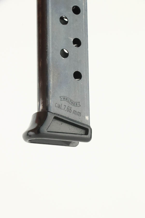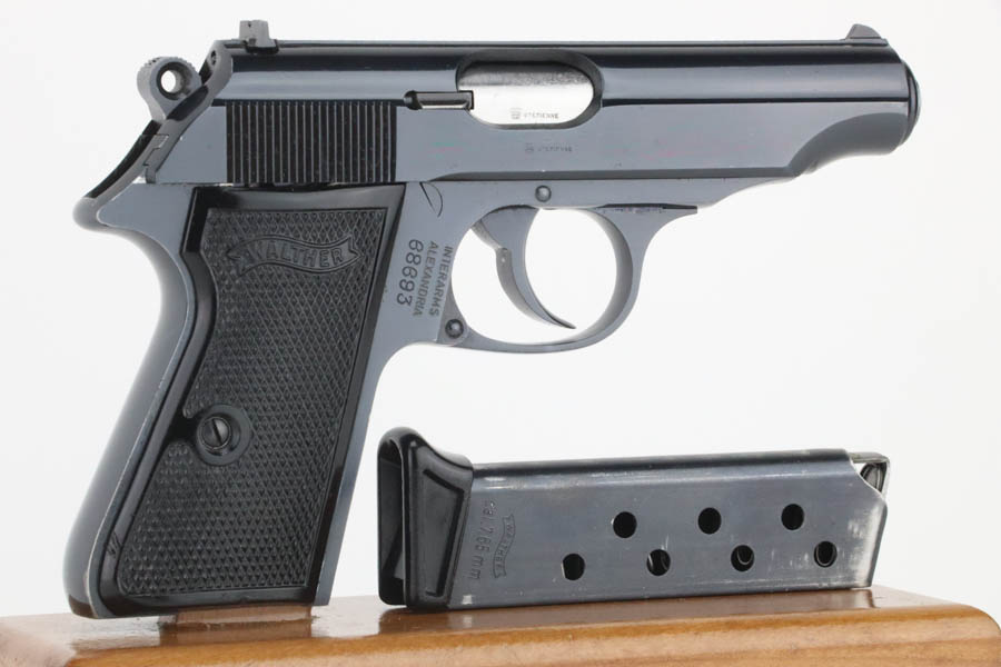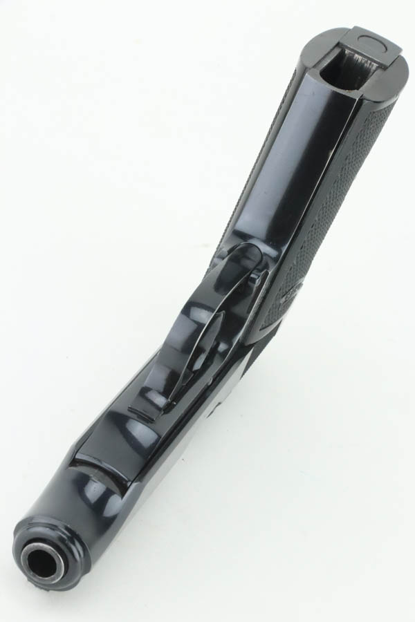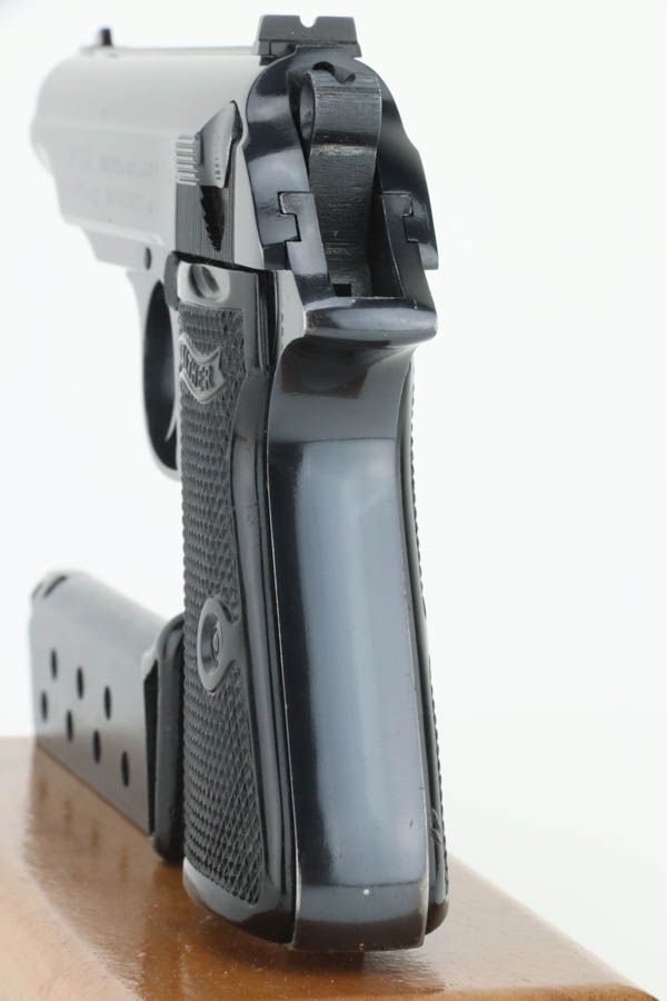 8/2/24 – This is a minty example of an early post-war French-production Walther PP from the 1950’s. It is matching, St. Etienne proofed, and has an Interarms marking on the right side of the frame. There is a circular milling mark on the left side of the frame where a police marking was likely removed. It comes with one finger extension magazine and a period-correct box (the original label is missing). The gun is like-new except for the spot where it is milled. Mint bore.