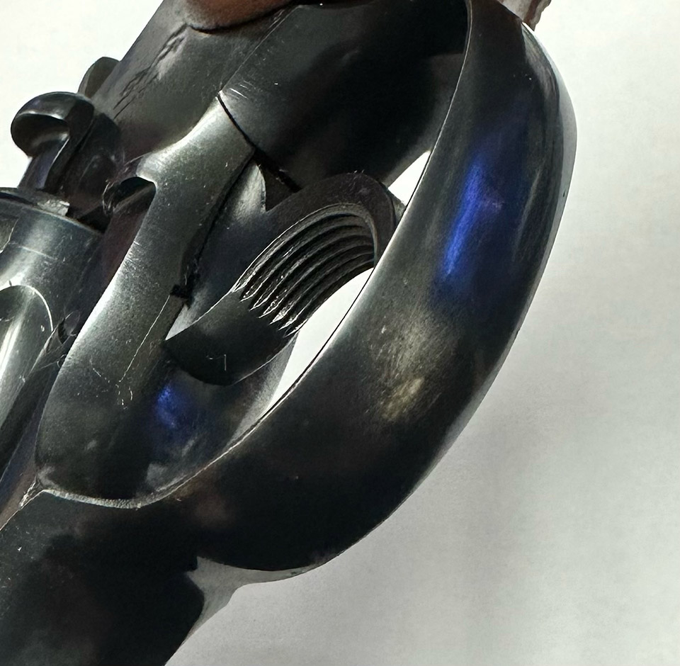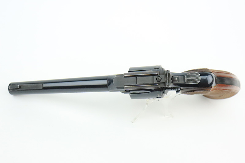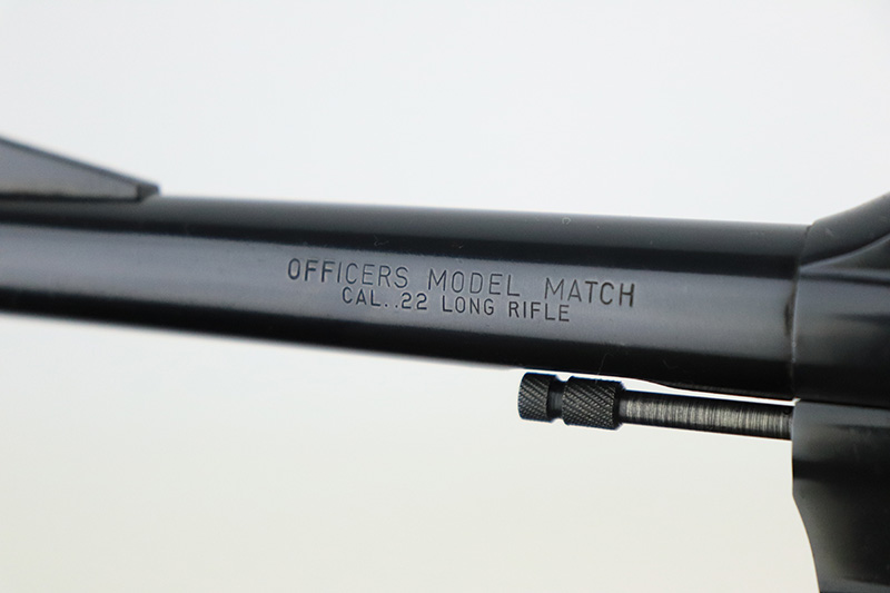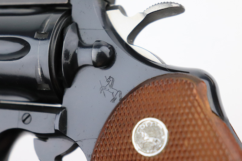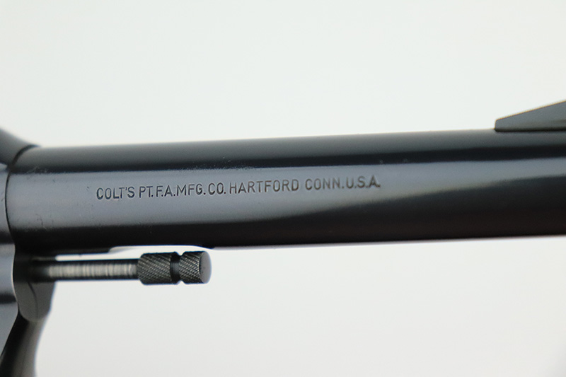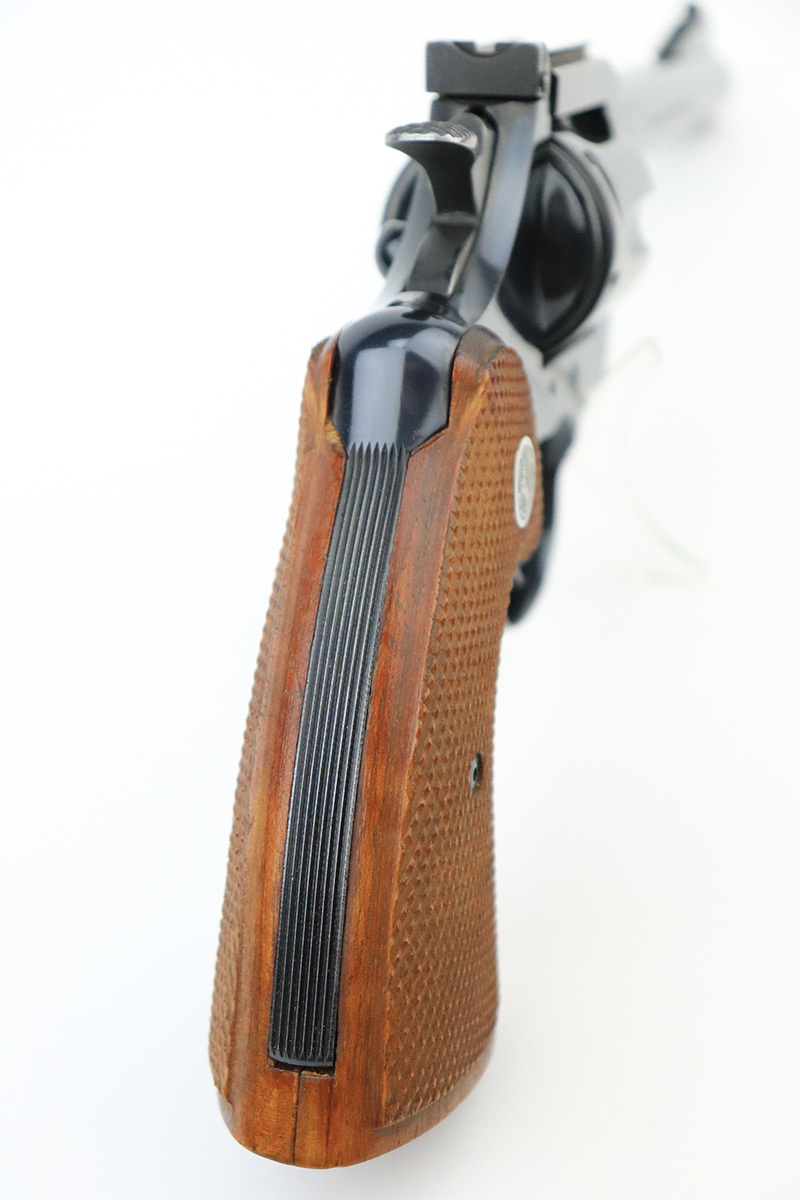 9/21/22 – This is a beautiful example of a Colt Officers Model Match Revolver, manufactured in 1958 and chambered in .22LR. 6″ barrel. It is all matching and comes with its original matching-numbered box, matching numbered test target, Colt multitool, and cleaning rod. The box is starting to tear along some of the edges, so it has been repaired with tape. The gun has retained nearly all of its original high polish Colt bluing. There are just hints of wear on some of the high edges, one tiny spot of wear on the underside of the trigger guard, and the faintest hint of a roll mark on the cylinder. Comes with beautiful hand-checkered wood grips. The bore is like-new. The cylinder is tight, and the action is very smooth.