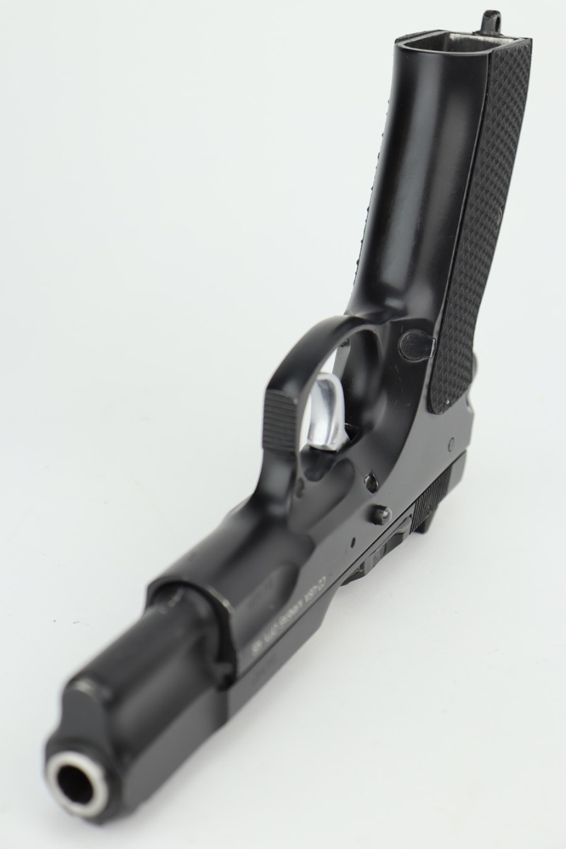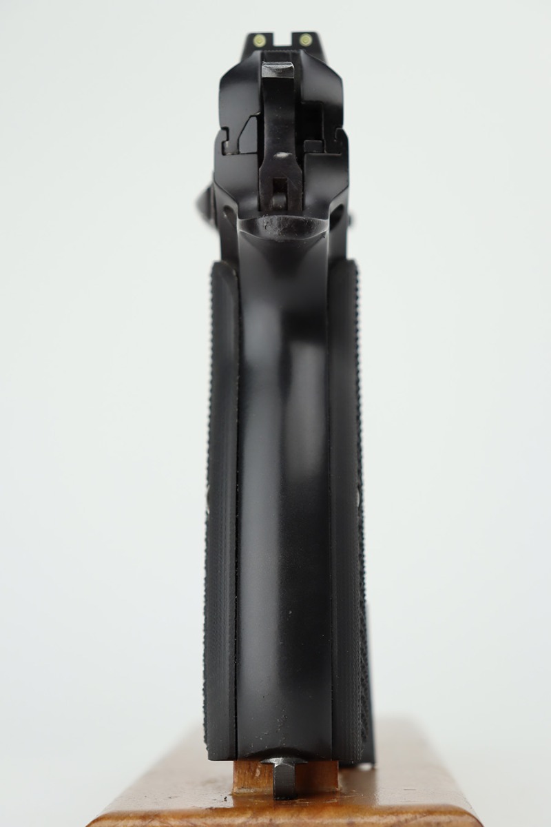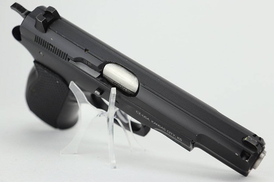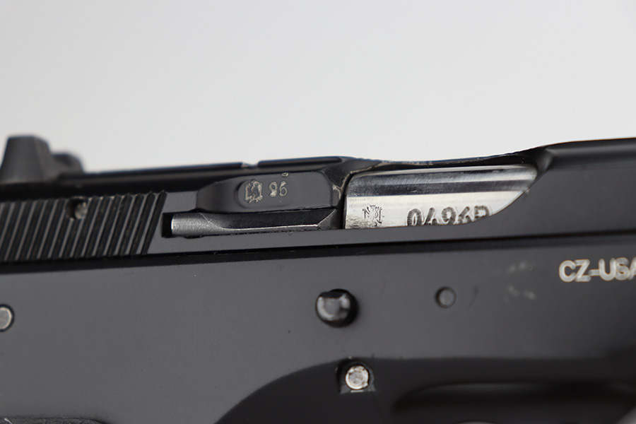 7/14/23 – This is a near-mint example of a CZ Model 75, manufactured in 1996 and chambered in 9mm Luger. All matching with import mark on the right side of the frame. Very nice black enamel finish with excellent black plastic grips. Very little sign of wear except for a few tiny scratches on the underside of the slide near the muzzle and some very light scuffs on the right side of the frame. Minty bore. It comes with its original matching box, matching hard case (no foam), test target, cleaning rod, cleaning brush, and one magazine.