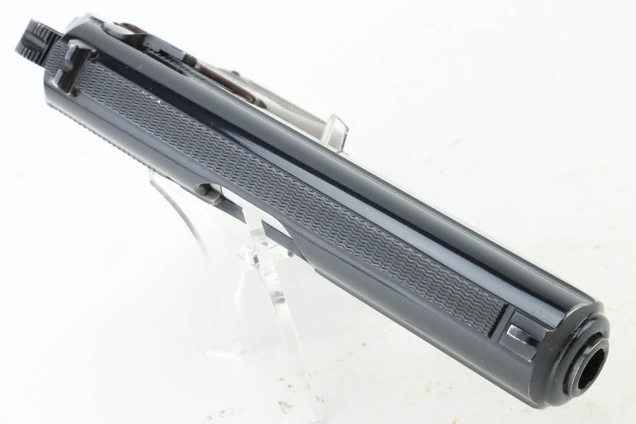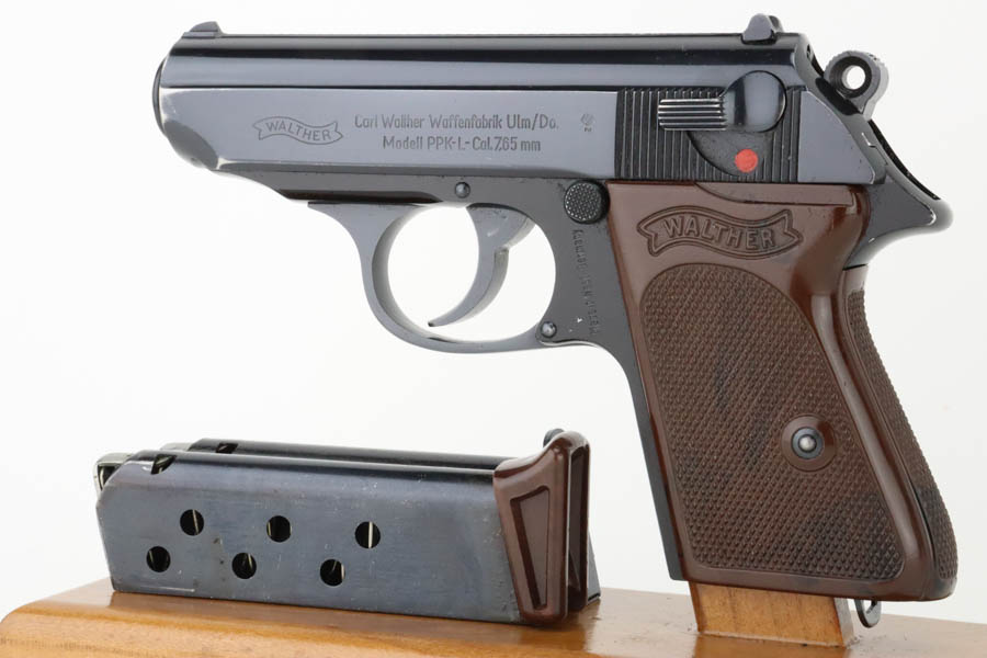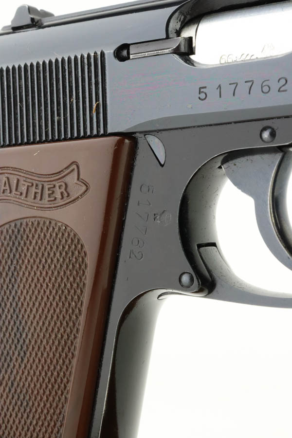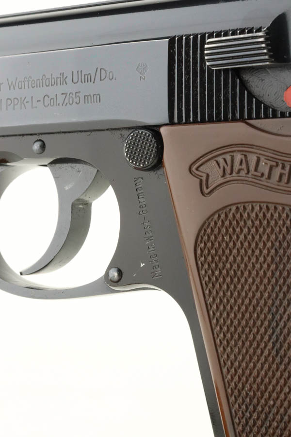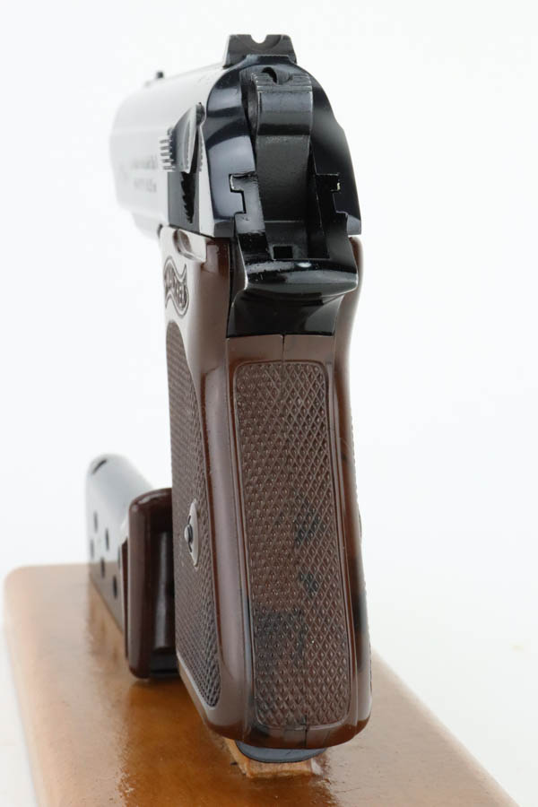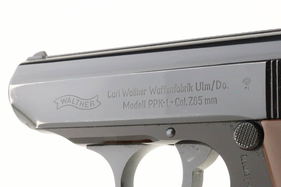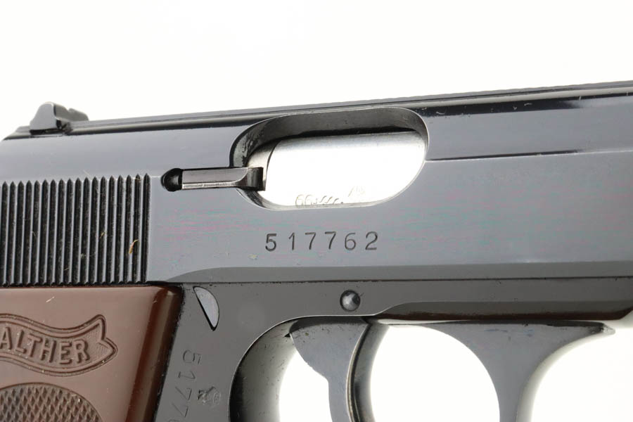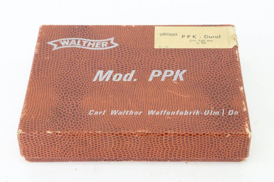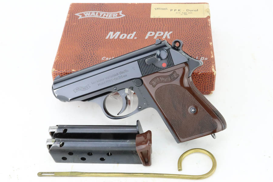 6/26/24 – Arguably the rarest variation of the post-war Walther PPK pistols, this Dural model was made in 1966 and chambered in 7.65mm (.32 ACP). It has retained about 97% of its bluing, with hints of wear around the muzzle and box wear on the left side of the slide. One tiny spot of finish loss on the front strap. The bore is stone mint. Comes with an unnumbered period-correct box, cleaning rod, manual, and two total magazines. The bluing is without defects and is considered by many to be the best blue that Walther produced over the last 100 years. The frame is light weight aluminum, as evidenced by PPK-L designation on the left side of the slide.