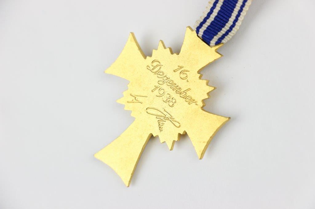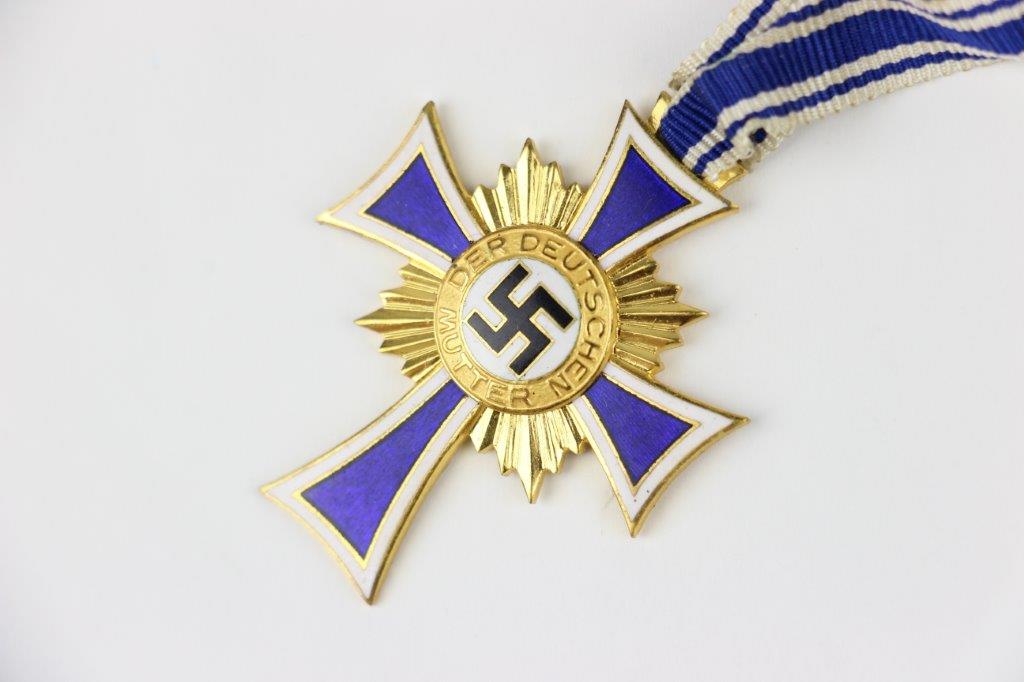 2/15/24 – This is an original WW2 German Mother’s Cross in Gold. The medal comes complete with an original ribbon and box. Overall minty condition with some natural age but no notable flaws or damage. A highly collectible example.