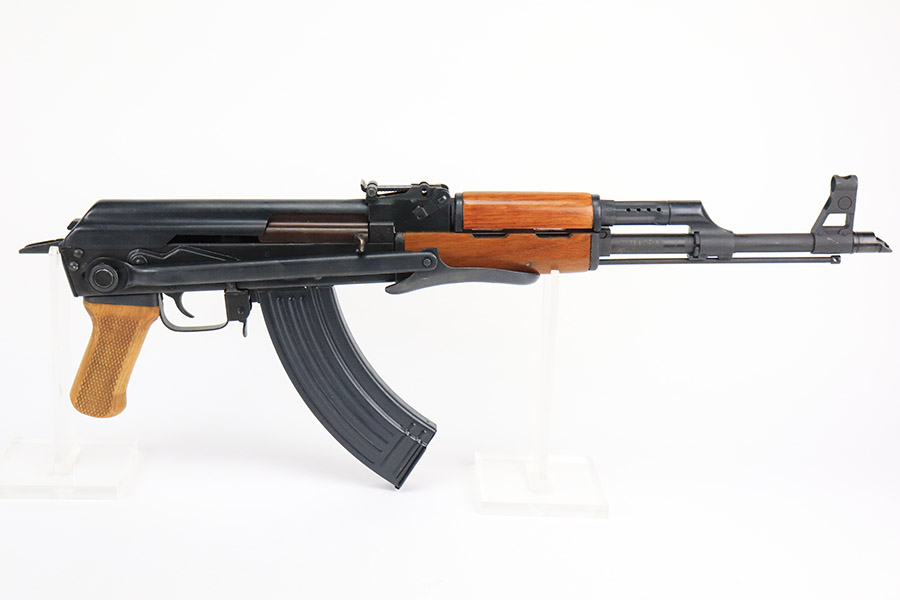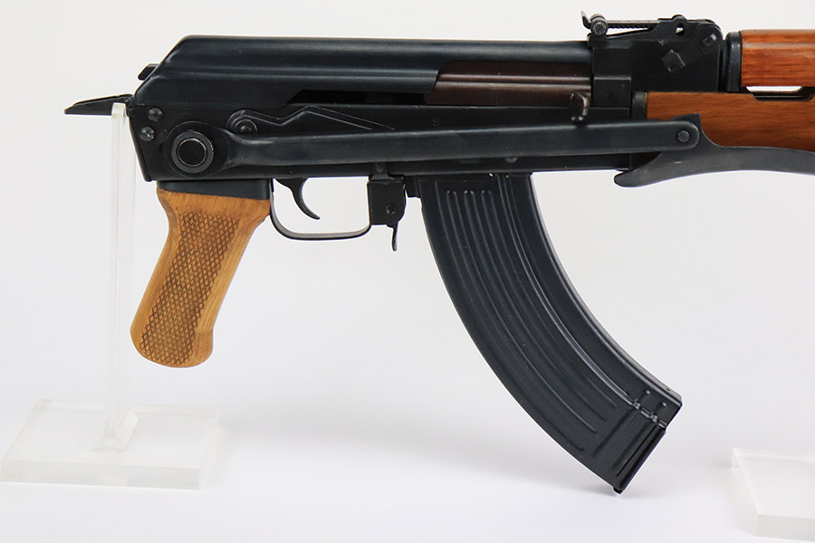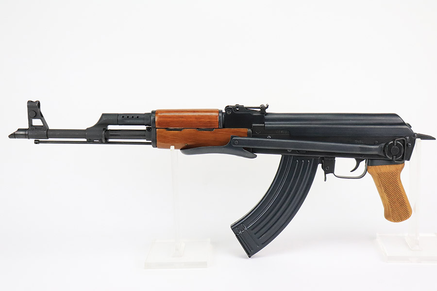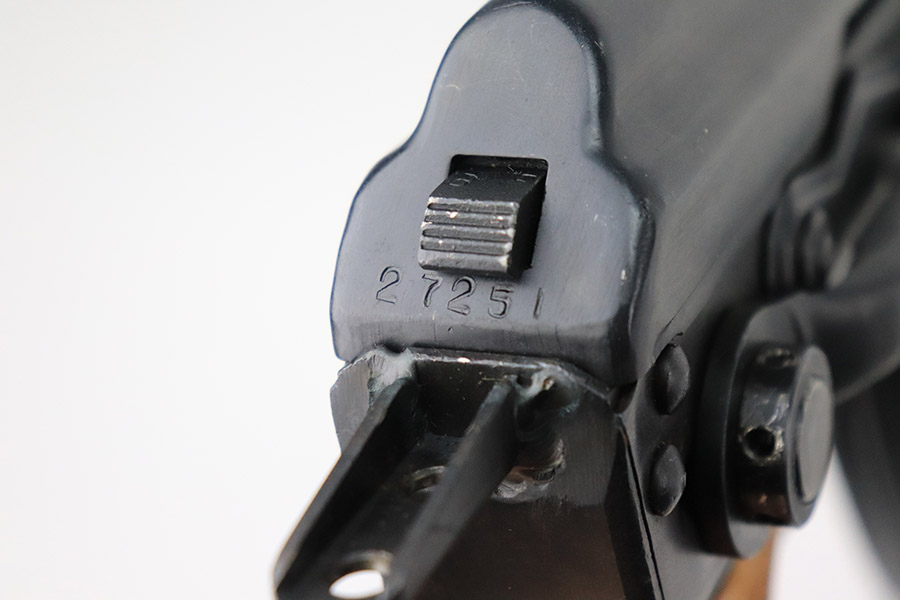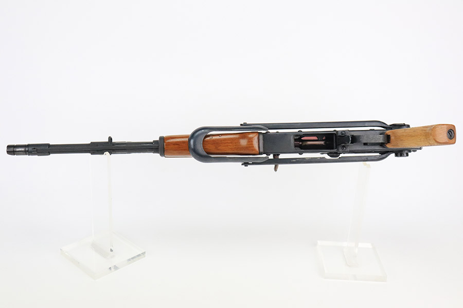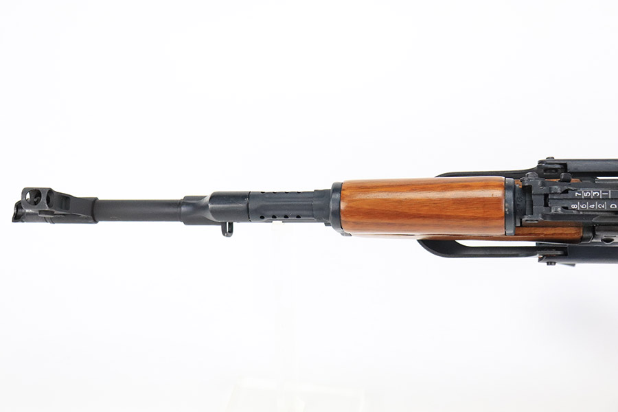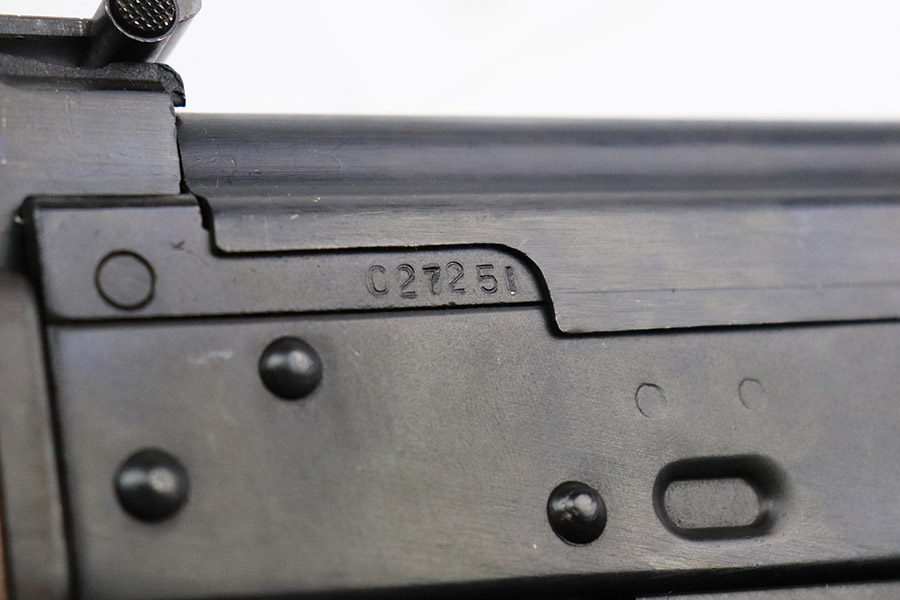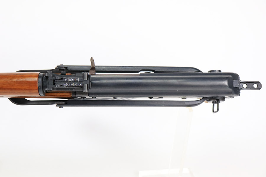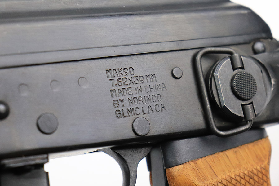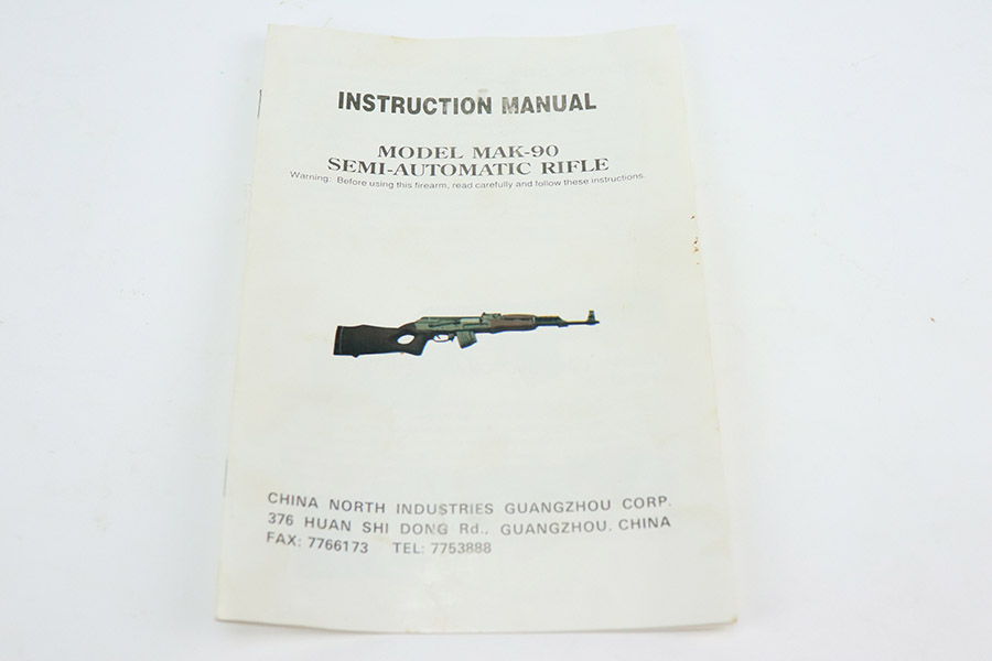 11/29/22 – This is a near-mint example of a Norinco MAK-90 Rifle, chambered in 7.62x39mm. It comes with its original matching-numbered box, three 25-rd magazines, oilier, cleaning kit, owners manual, and canvas sling. Overall, there is very little sign of wear on this gun. There are just some light scuffs and handling marks here and there and some areas of very light freckling on the folding meatal stock and on the top of the receiver. The wood grip and handguard are minty – just one tiny ding on the left side of the handguard. Minty bore.