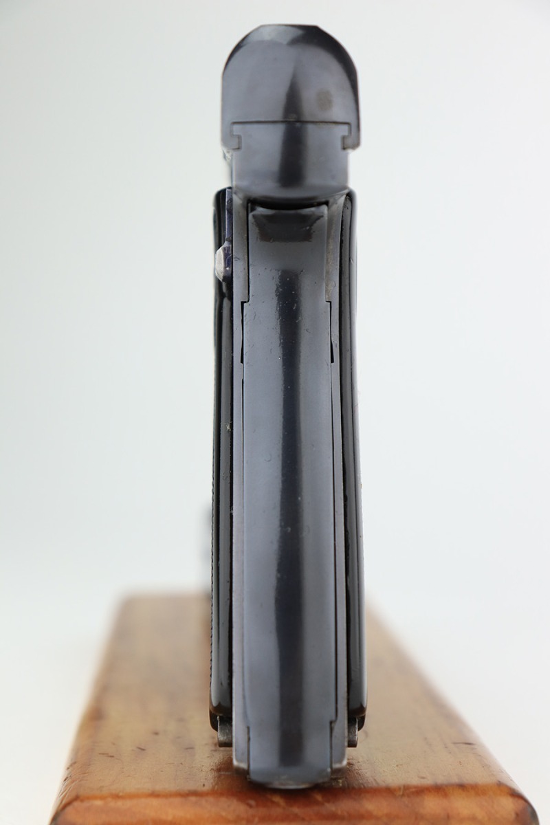 2/23/23 – This a gorgeous example of an original Remington UMC Model 51 pistol in the original box. It’s a type II example in .32 ACP, all of which were manufactured from 1923-25. The pistol has 98% of the original blue remaining, with minor high edge wear around the muzzle, light thinning on the front strap, and a small scratch (also on the front strap). Minty bore, with just a hint of usage wear. Beautiful, original grips with just a tiny hint of handling wear. One original magazine. This pistol comes with original Remington UMC box. These boxes were not serialized, but the box appears period original. The box does show considerable wear but is largely intact. Also includes manual.
