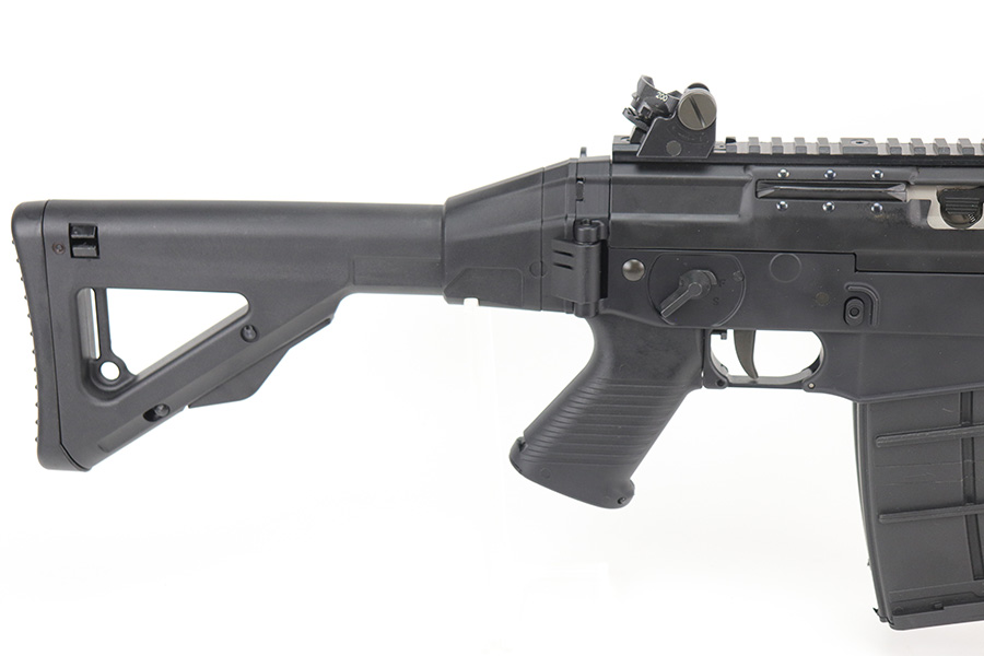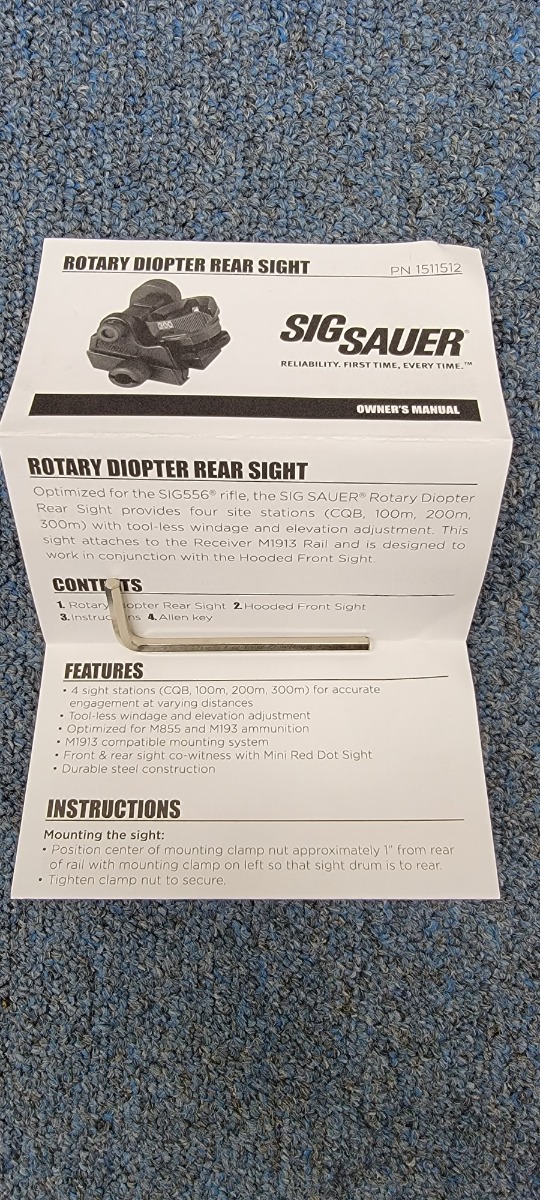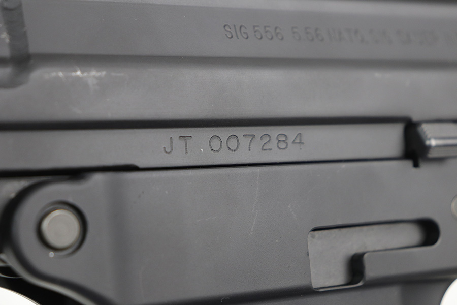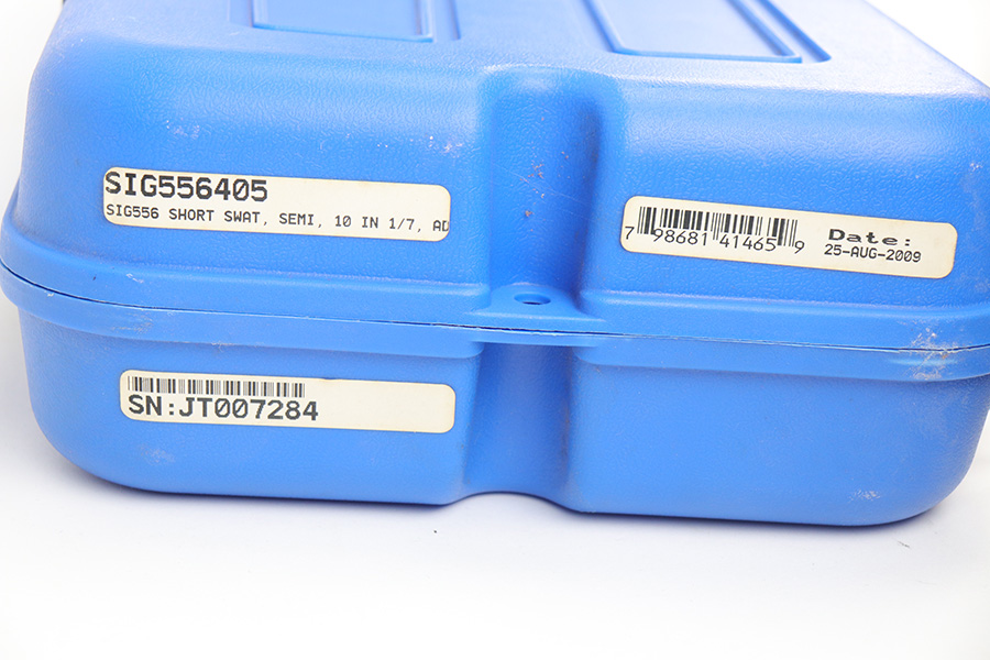 11/5/21 – This is a minty Sig Sauer 556 Short SWAT short-barreled rifle in its original, matching case. The rifle has just a hint of wear around the ejection port and high edge of receiver, but is otherwise in near-mint condition. Barrel is 11in long. 1/7in rifling twist in the bore, which is in excellent condition and clean throughout. Features: two-position adjustable gas valve, rotary diopter sight, A2 type flash suppressor, and folding swiss-style adjustable stock. Comes with two 30 round magazines, an extended stock butt-pad, the original manual and Sig paperwork. Fully transferable on a form 4. This SBR is civilian legal, but requires an ATF class 3 background check. The buyer is responsible for paying the $200 tax stamp transfer fee when applicable.