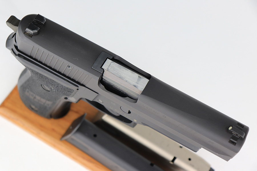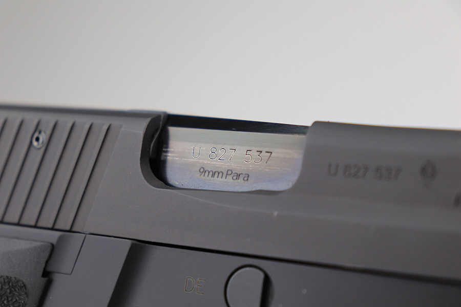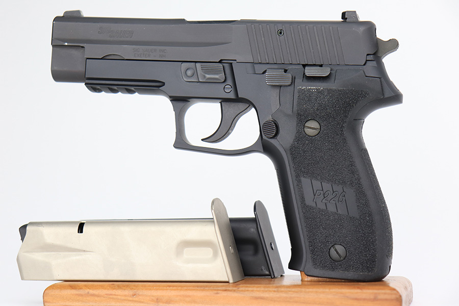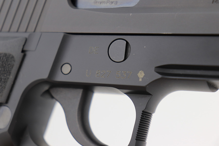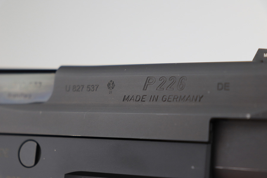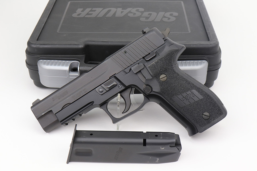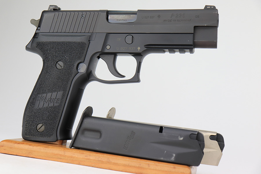 2/8/23 – This is a near-mint SIG Sauer P226 in the original, matching box. Just tiny hints of “box wear” and very minor signs of being used in the ejection port. Mint bore and excellent grips. Made in Germany. Comes with the lock. FFL required.