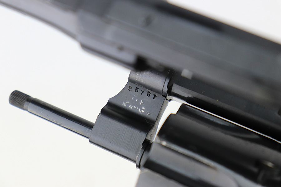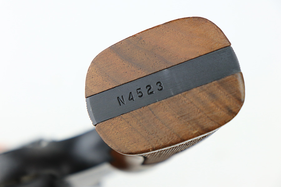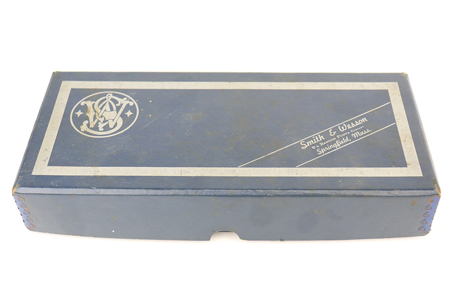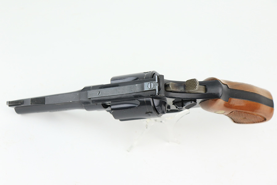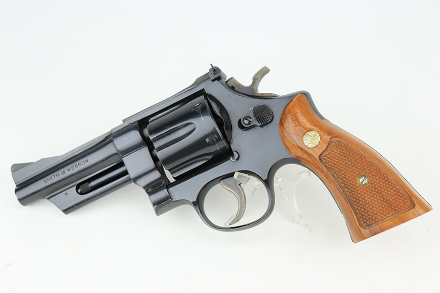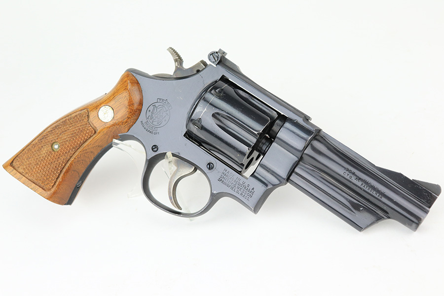 5/12/22 – This is a near-mint example of a Smith and Wesson Model 28-2 “Highway Patrolman” revolver, chambered in .357 Magnum and was manufactured in 1970-71. 4″ barrel. It comes with a period-correct box that is numbered but does not match the gun. The gun itself has retained more than 98% of its finish. There is a hint of muzzle wear, hints of wear on the high edges of the cylinder, and a light roll mark on the cylinder. Some tiny handling marks here and there. Very nice case-hardening on the hammer and trigger. Comes with minty wood grips. Mint bore. The cylinder is tight and the action is smooth. Mint bore.