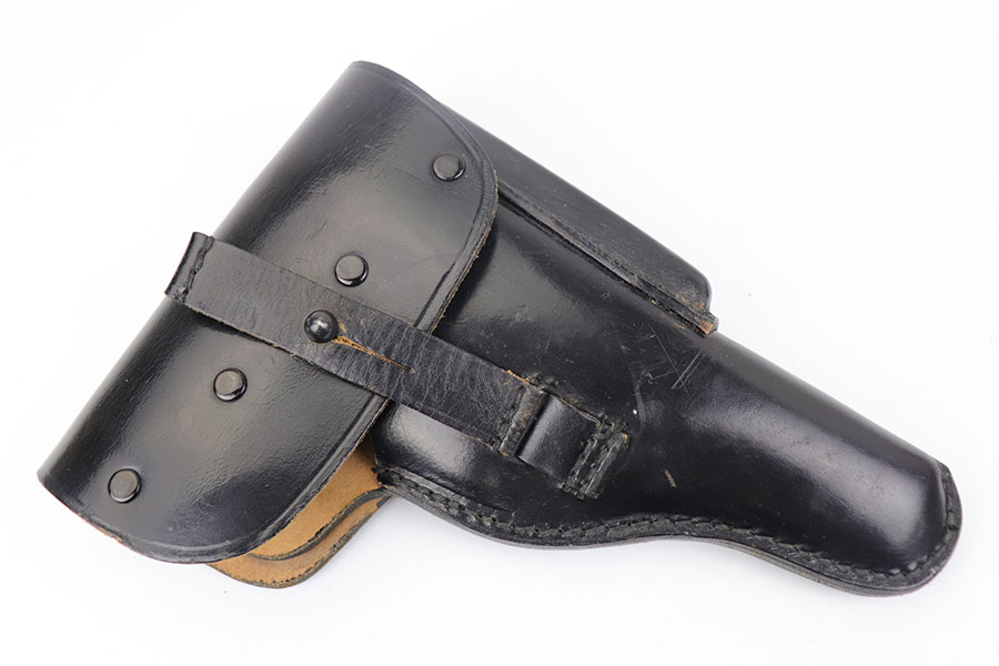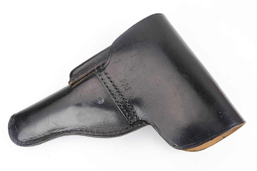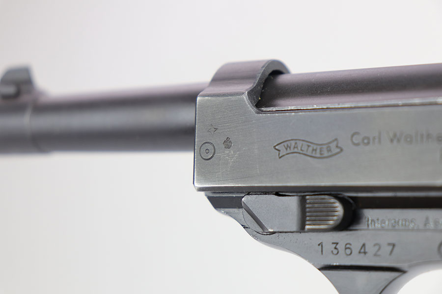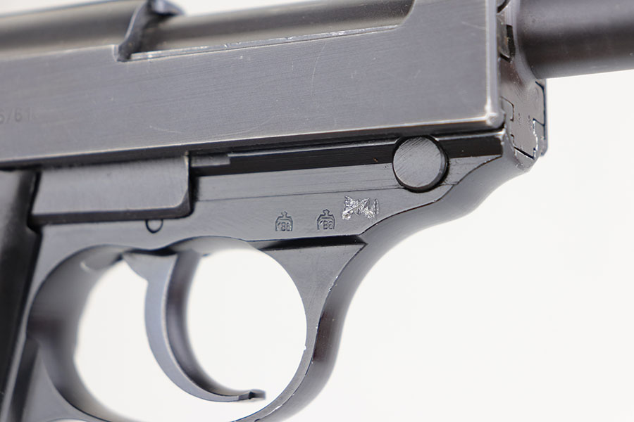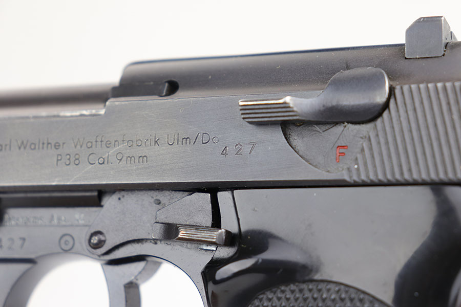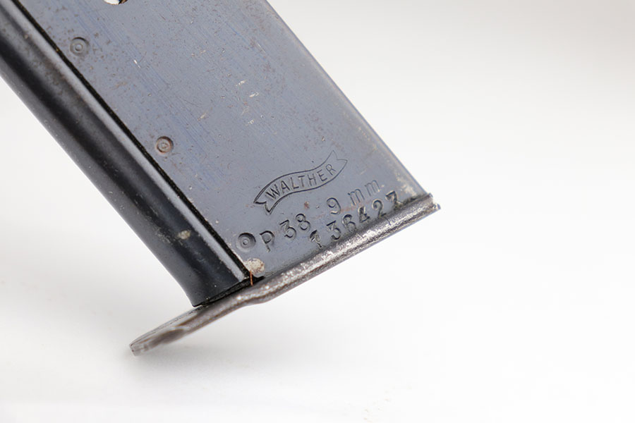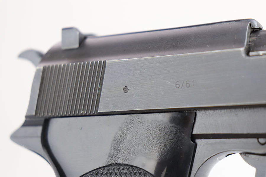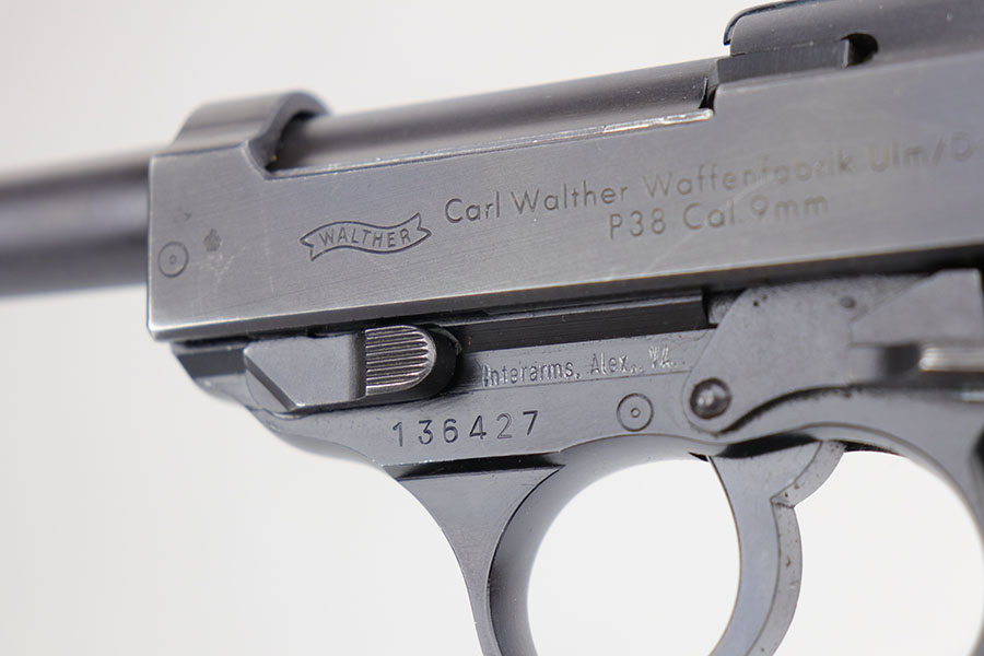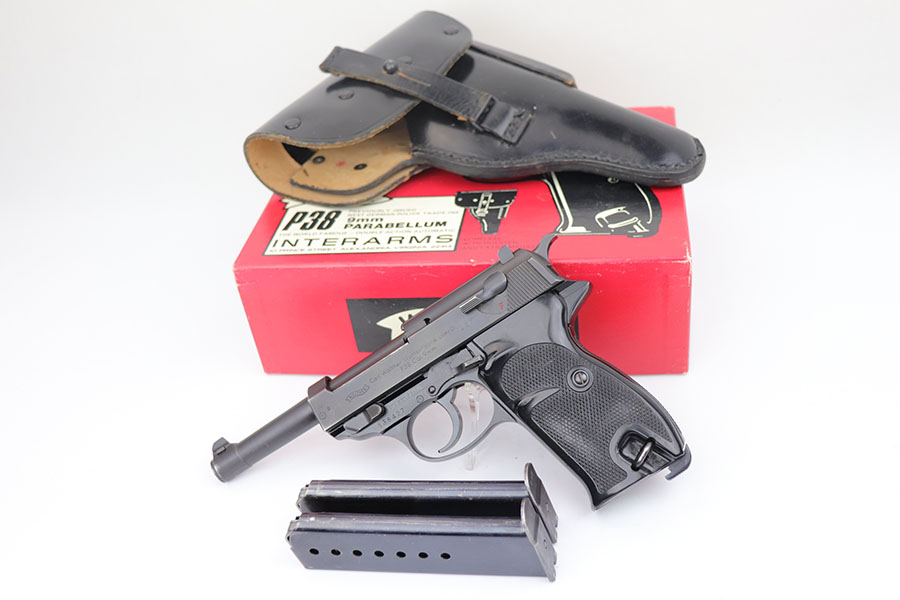 3/17/20 – This is a minty Walther P.38 rig from 1961 in the matching Interarms box. The pistol has 98-99% of the original finish remaining, with just a hint of hint point wear from the holster. All matching numbers, including the box and one of the magazines. Spare magazine is dated to October of 1962, while pistol is dated to June of 1961. Minty bore and proper mechanics. Holster is in excellent condition and has F&B maker mark. Interarms import mark on left side frame. C&R eligible.