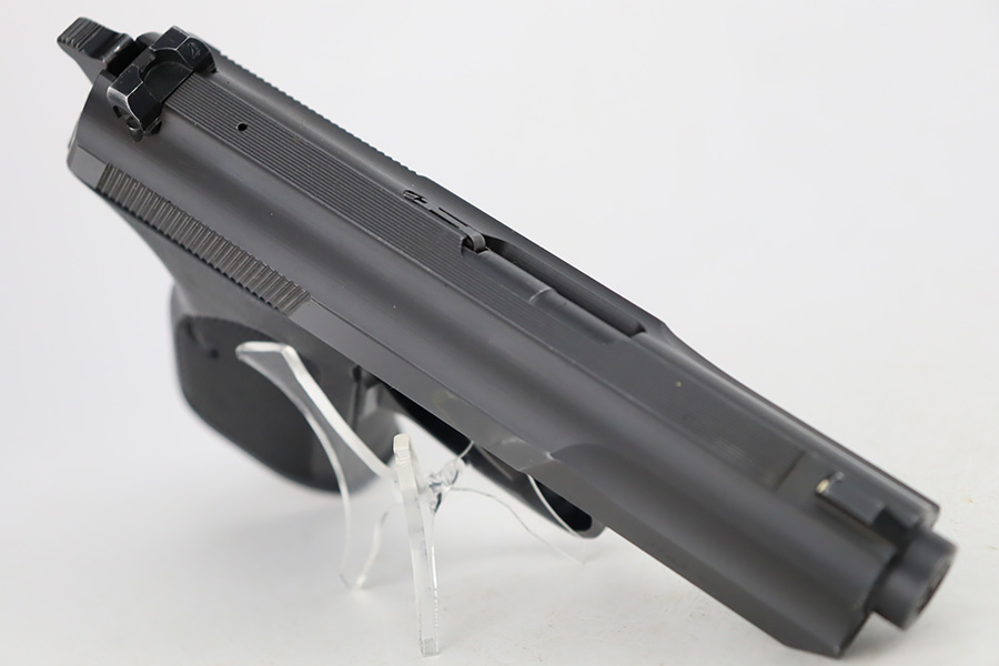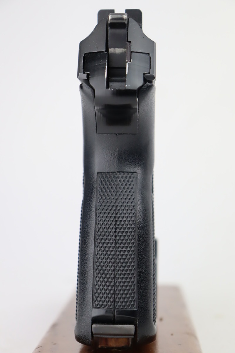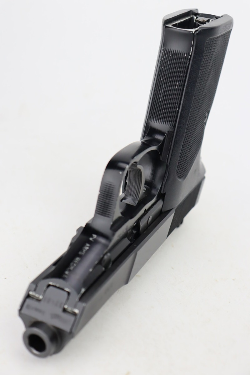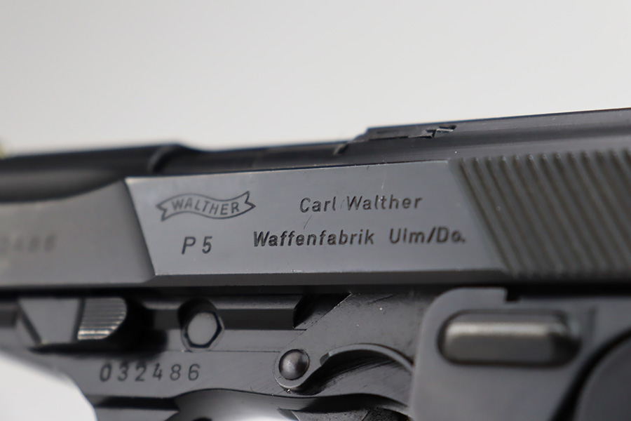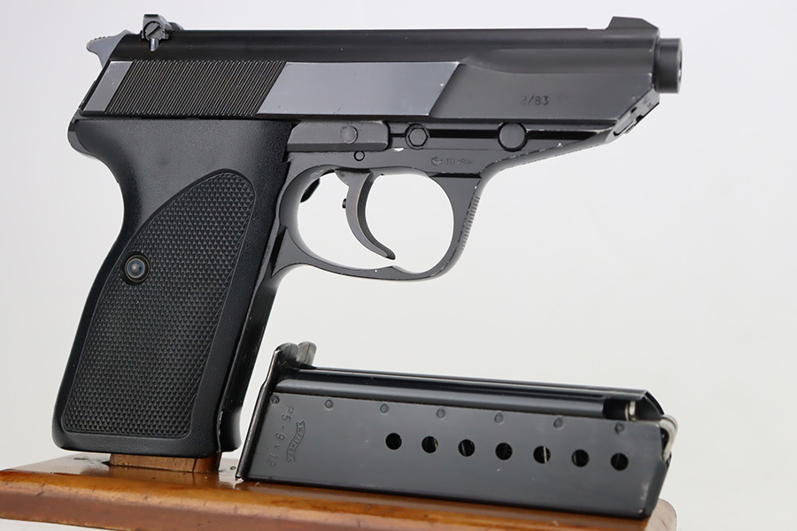 9/27/23 – This is a minty example of a Walther P5 manufactured in 1983. All matching with the proper proofs, but there is an import mark on the underside of the frame. This one is also marked “BMI” on the slide, indicating it was issued to the “Bundesministerium des Innern” or the Federal Ministry of the Interior. The “BMI” marking has a light hash mark through it. The gun comes in a period-correct box (not matching), two P5 magazines, a cleaning rod, and an owners manual. The gun itself has retained most of its original finish with hints of wear on some of the high edges. Excellent black plastic grips. Mint bore.