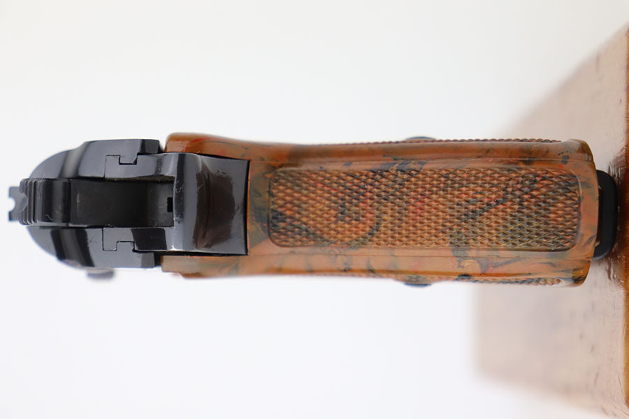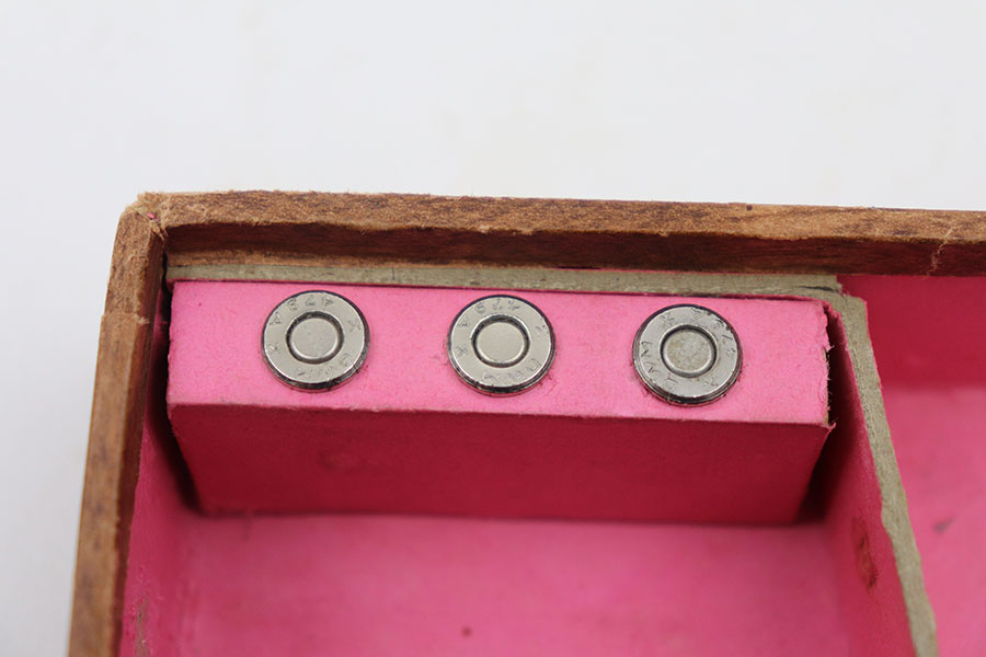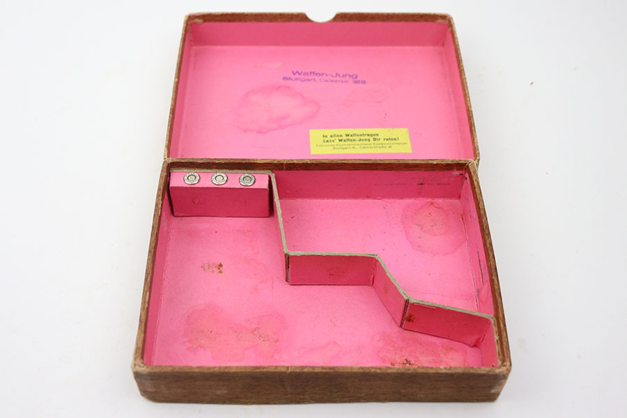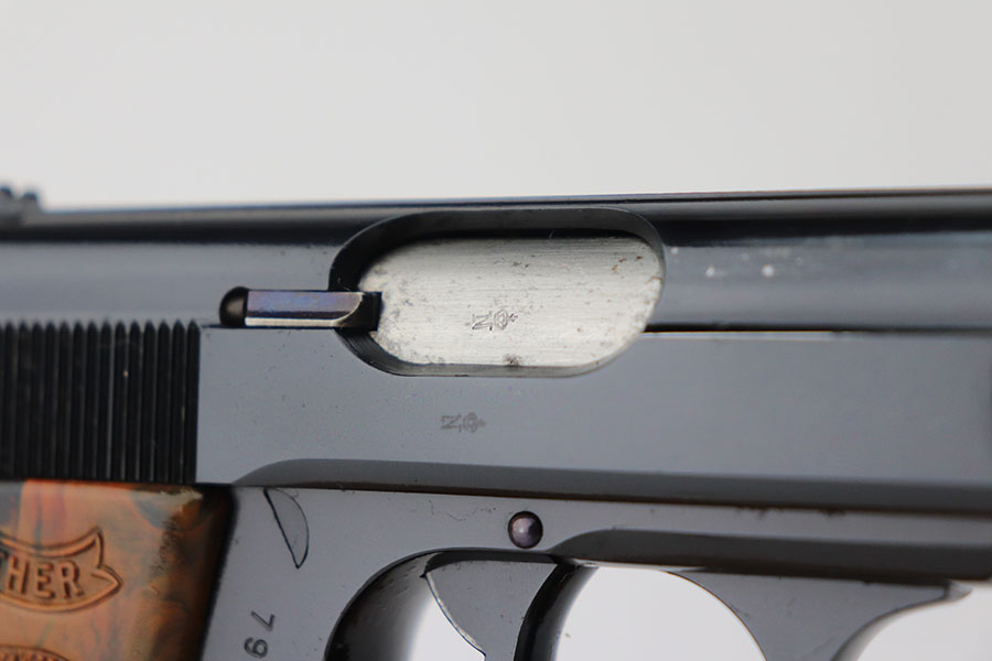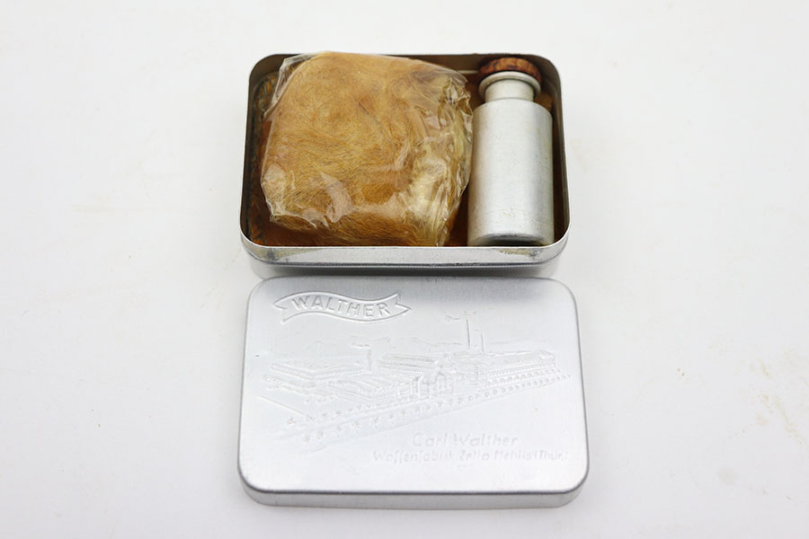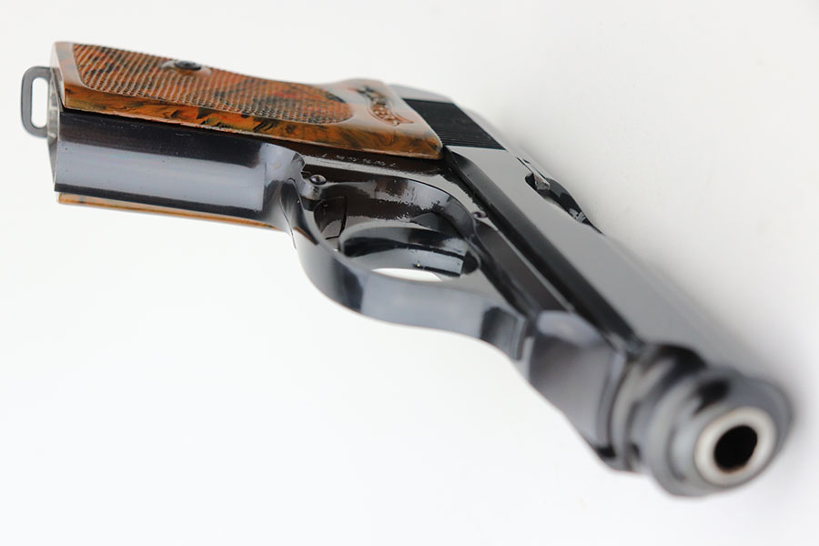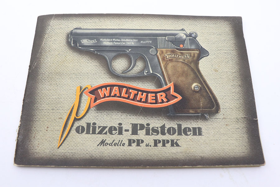 4/21/21 – This is a minty Walther PPK from 1934 with box, cleaning rod, spare magazine, manual and original dummy rounds. The pistol is all original with 99% of the high-polish blue remaining. Just a hint of muzzle wear on the slide. Comes in period original box which is unnumbered. The box includes a spare magazine with flat bottom, and a 1936 dated manual. Also has the early cleaning tin with oiler inside. Hischier collection.