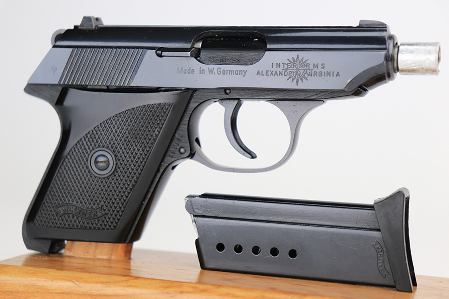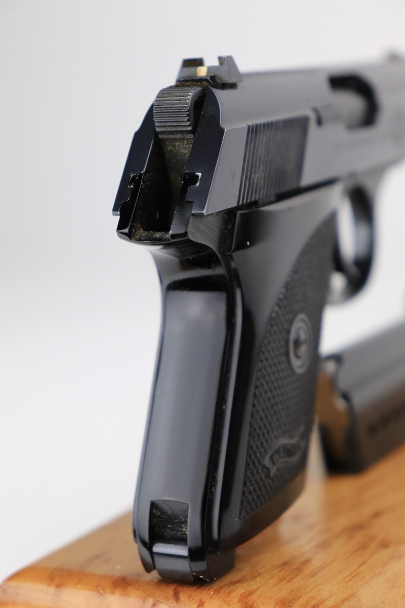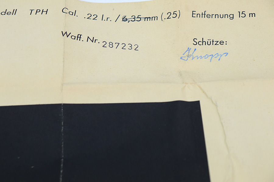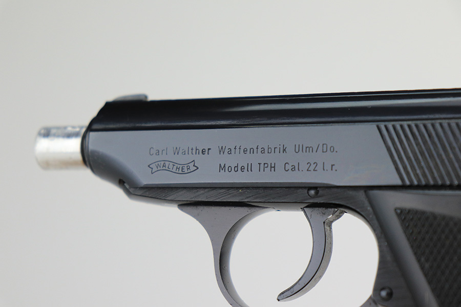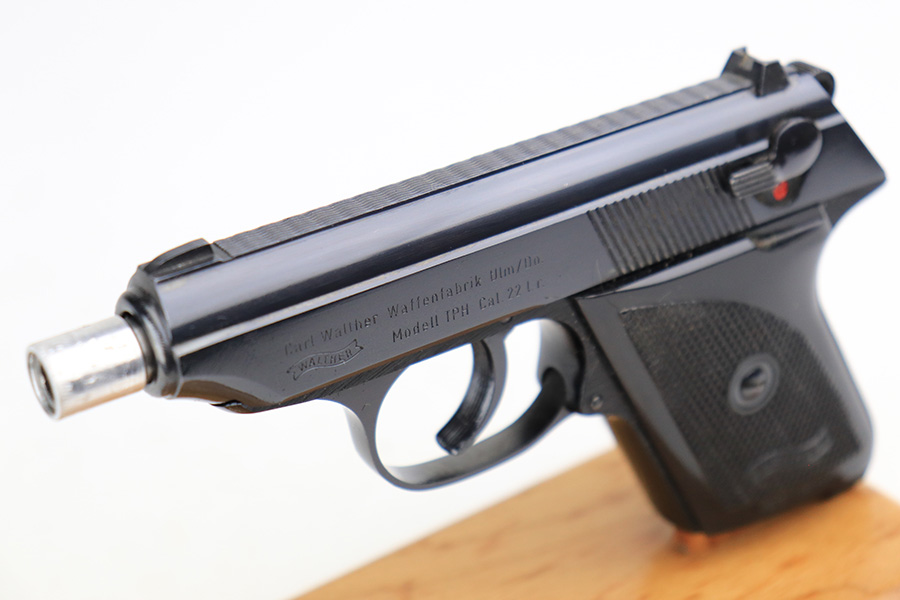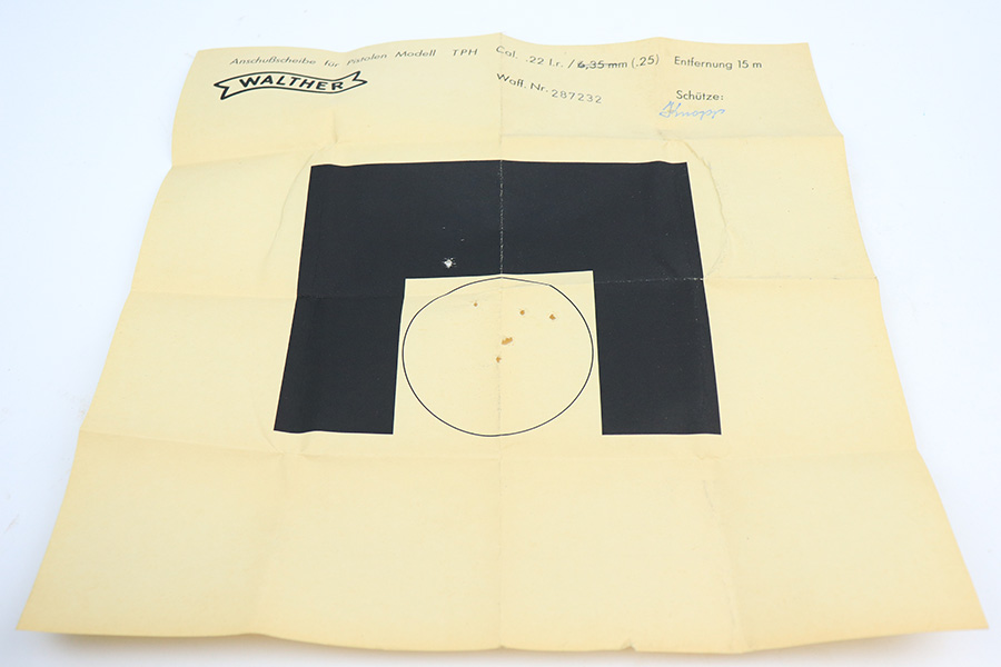 4/21/22 – This is a minty Walther Model TPH from 1978 in its original, matching box. The box also comes with the manual, spare magazine and original, matching test target. There were about 35,000 of these produced in .22LR, and this one has a barrel that has been threaded for a suppressor. The bluing on the pistol is original and minty with just a hint of wear around the muzzle. Mint bore and grips. Interarms import mark on the right side of the slide.