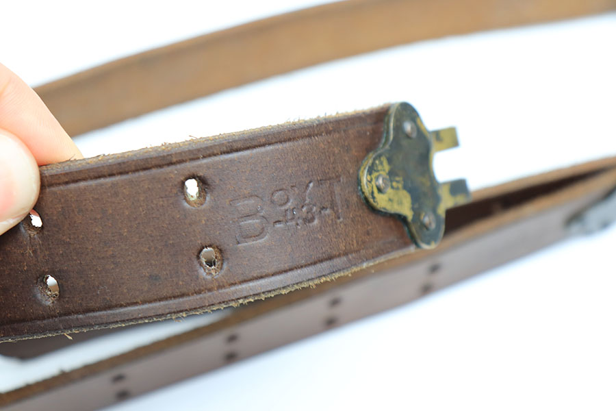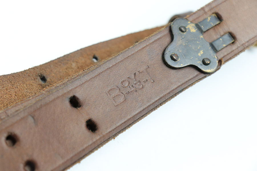 1/20/21 – This is a minty leather sling for a 1903 or M1 Garand rifle. The sling has supple leather that is stamped with two BOYT 43 maker and date stamps. At first we thought this may be a reproduction as the condition is flawless, however there are some signs of aging and we’ve received feedback that this is an original. See photos before buying!
