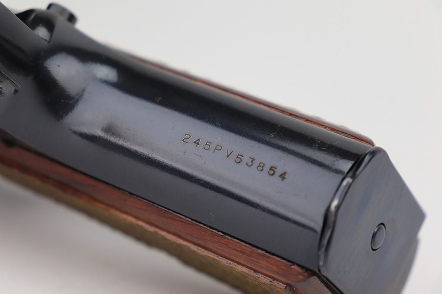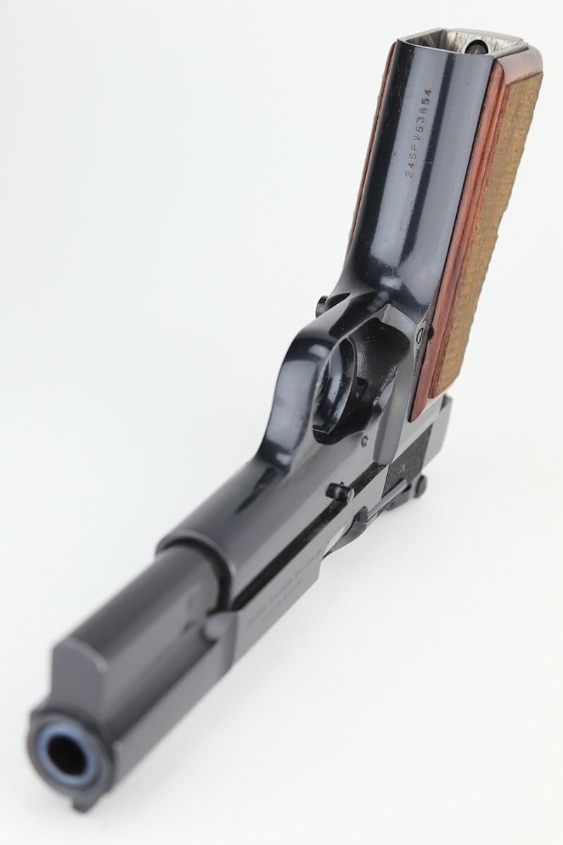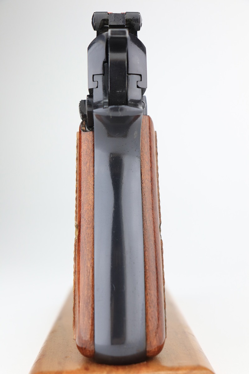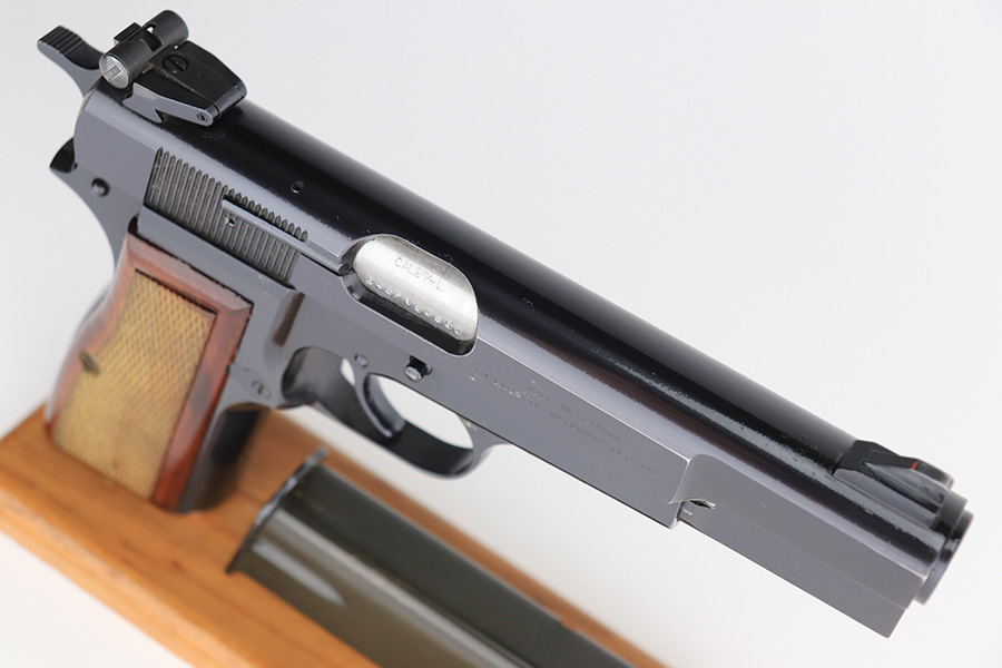 2/20/23 – This is a near-mint Browning Hi Power from 1985. Just a tiny bit of edge wear on the muzzle end of the pistol and a few minor surface scuffs. Mint bore and grips. Adjustable rear sight. Proper commercial mag. FFL required.