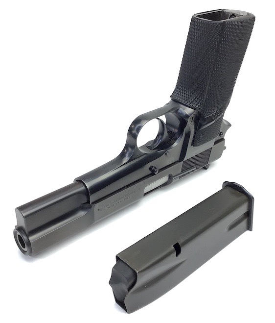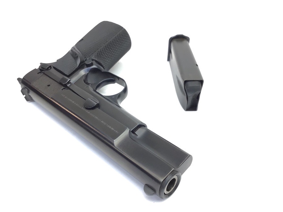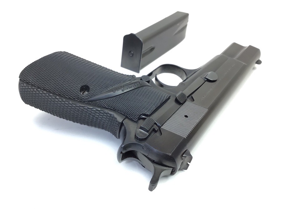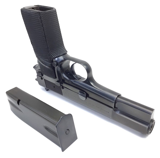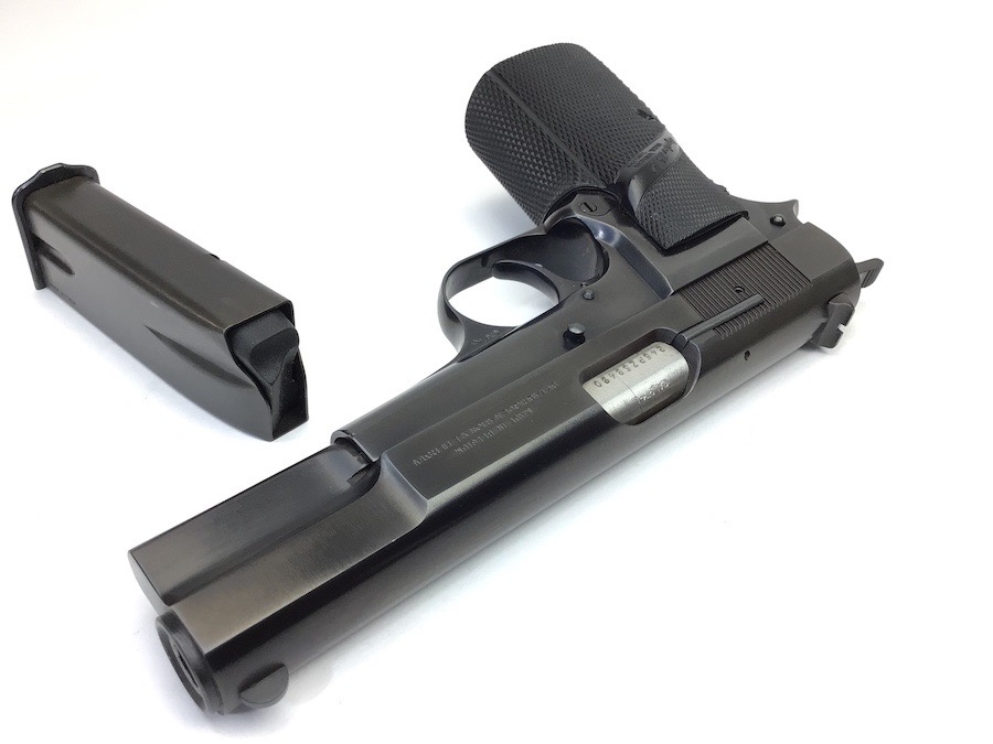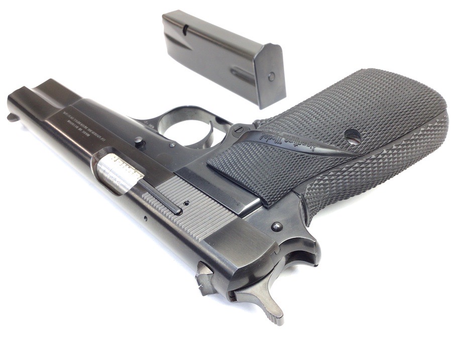 7/28/23 – This is a minty example of a Browning Hi Power manufactured in 1981. The gun has retained about 99% of its original finish. It appears never to have been fired. Comes with Pachmayr grips and a proper magazine. The bore is near-mint. Includes original manual and receipt.
