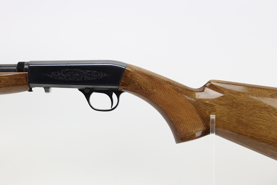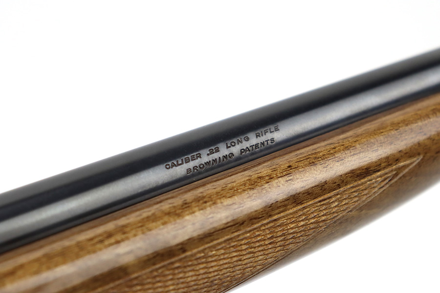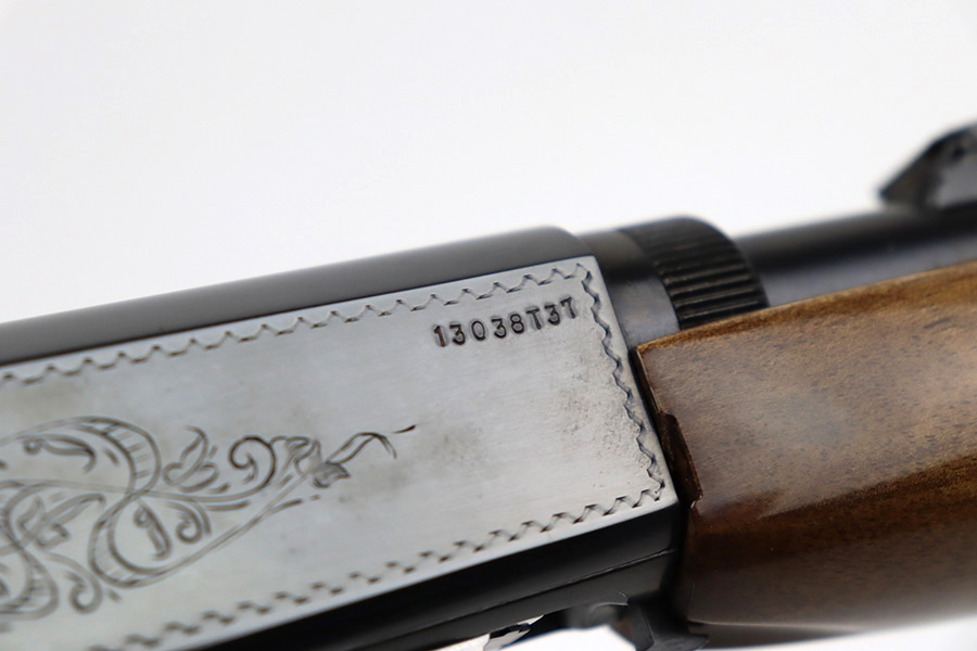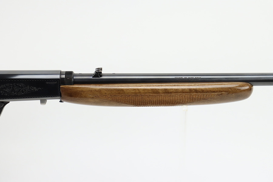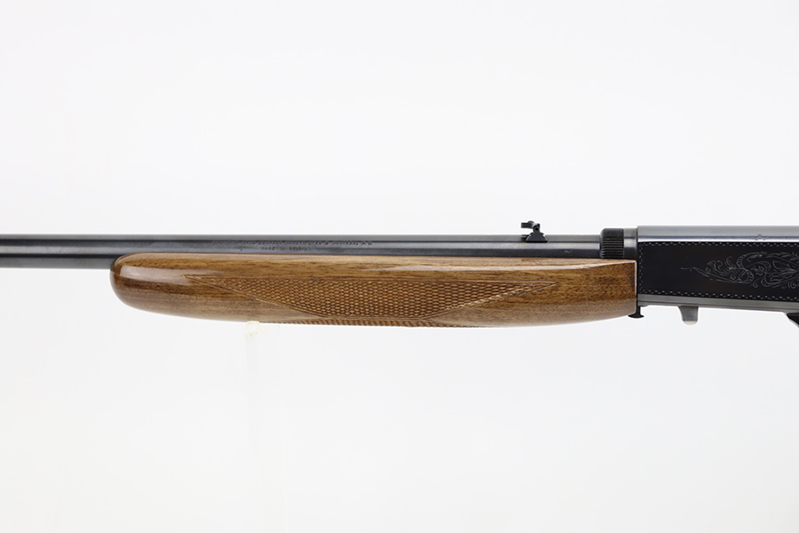 3/11/24 – This is a minty example of a Browning Model SA-22, chambered in .22 LR. The receiver and trigger guard feature some nice filigree engravings. The metal parts show virtually no finish loss or wear except for a few tiny handling marks on the receiver. Excellent laminated wood stock with just a few small marks. Mint bore.