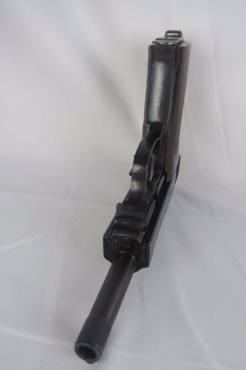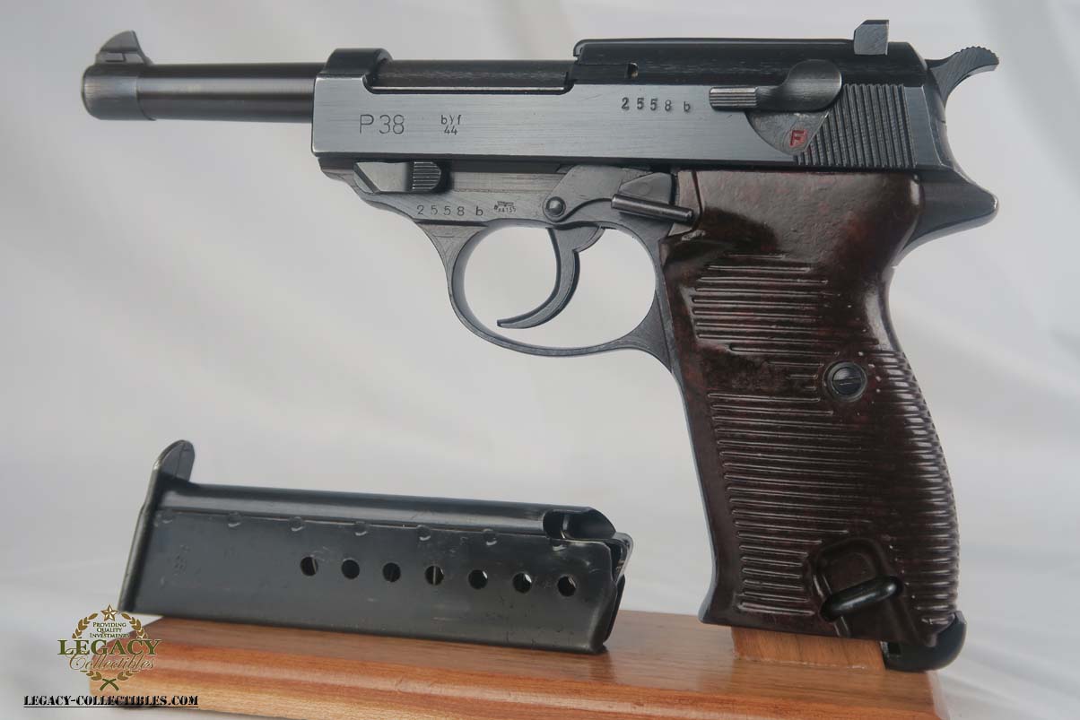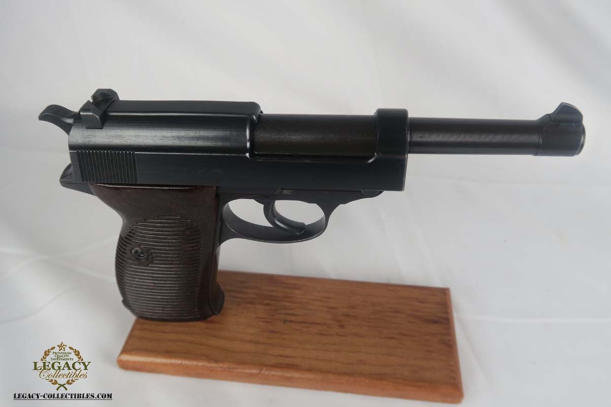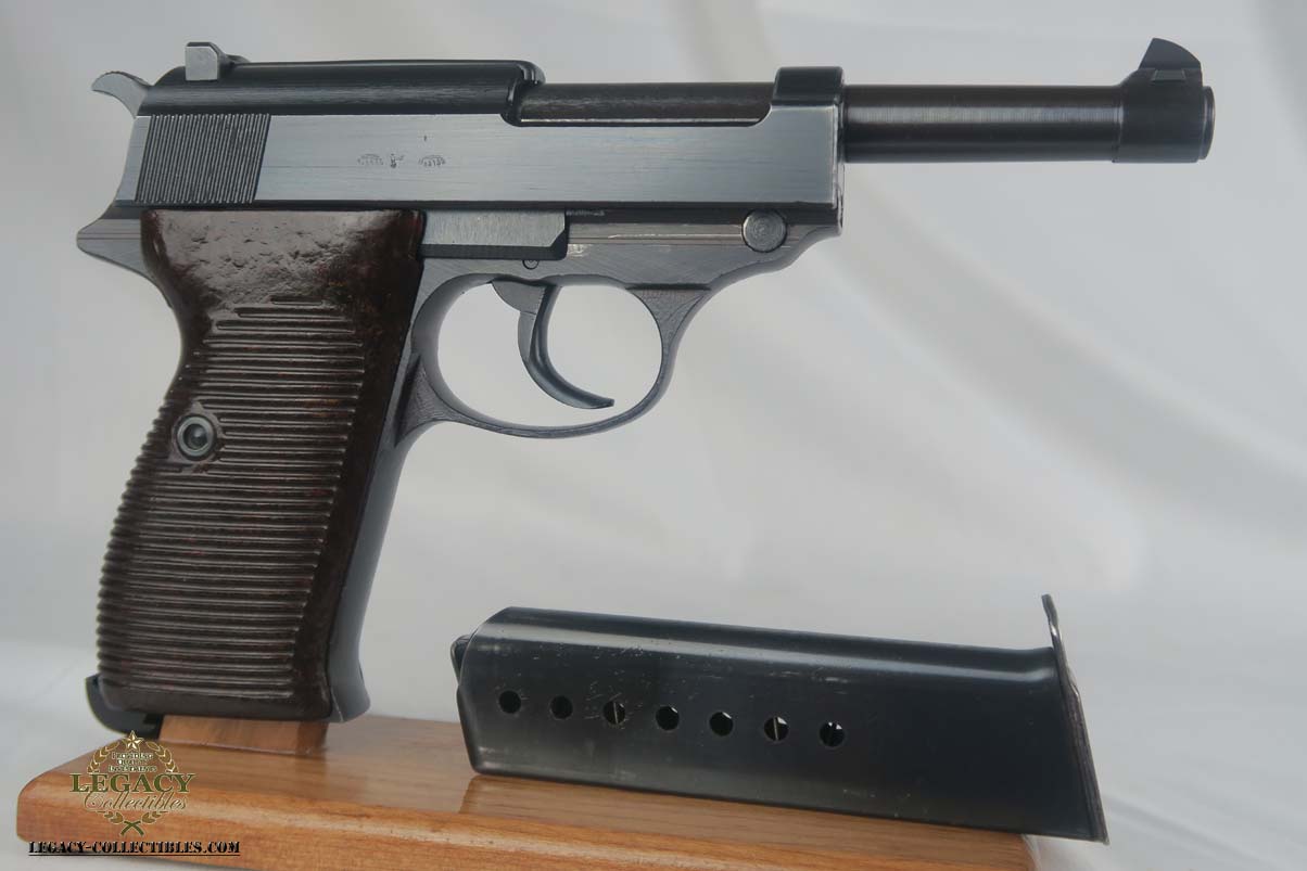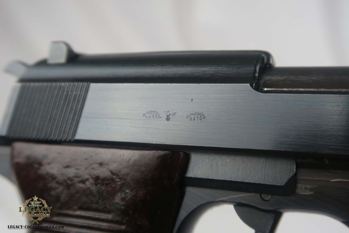 4/24/17 – This is a Mauser produced byf 44 P.38, in near mint condition.  The original finish is 99+%, with just the slightest edge wear.  Comes with an excellent set of proper reddish grips, and a WaA135 proofed magazine.  Bore is minty as well.  Tough piece to upgrade!