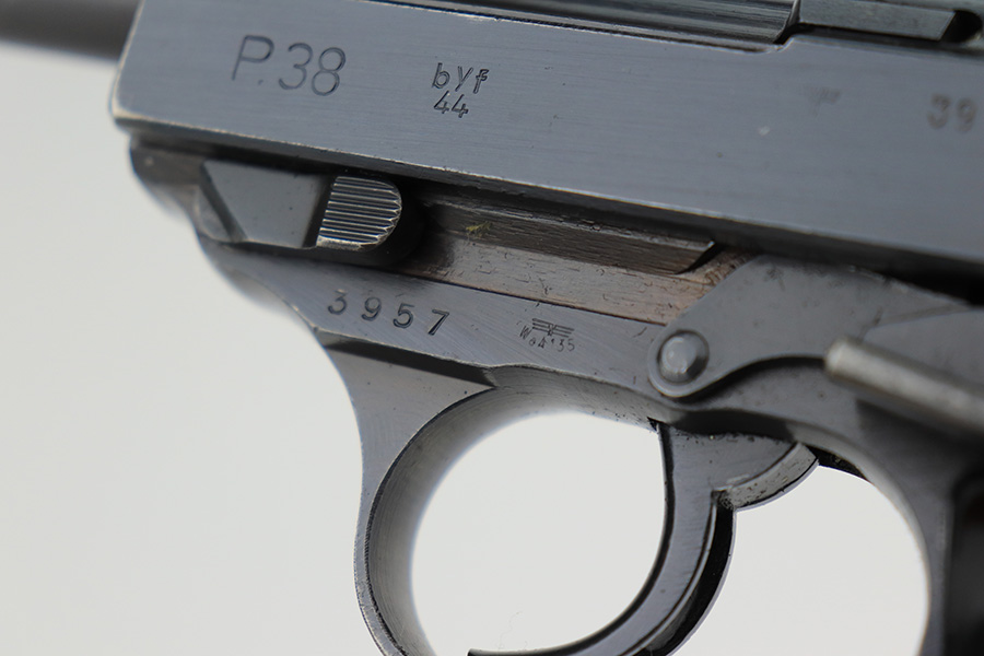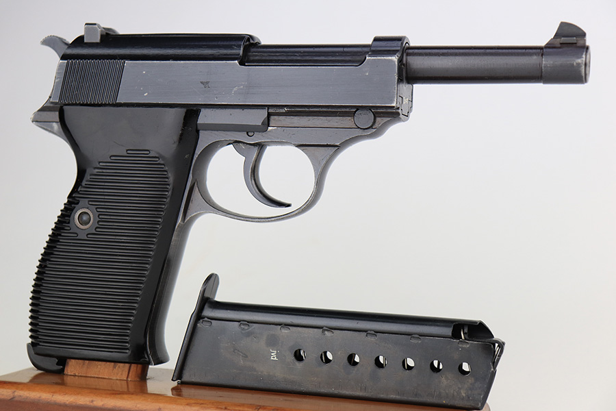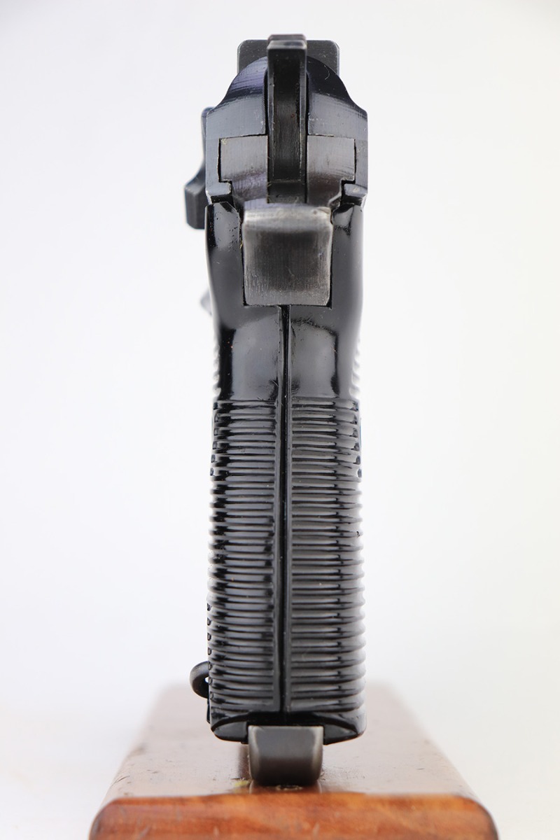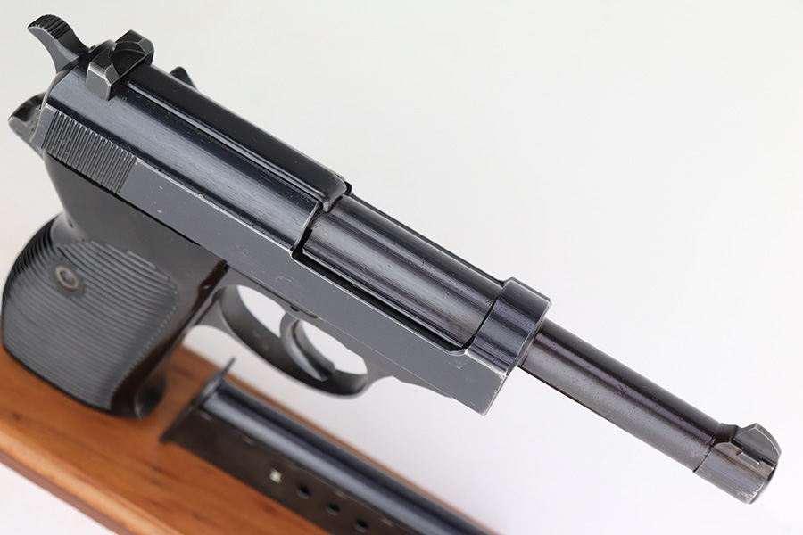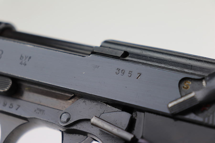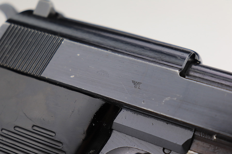 3/22/2023 – This is a near-mint example that was issued to the Nazi police force in 1944. It is all matching and has all the proper waA 135 and police eagle L proofs. There is some very minor muzzle wear, and a bit of thinning on the front strap. Bore is absolutely pristine. Excellent black plastic grips that are slightly shaved along the top edges. Comes with period correct jvd-marked magazine. Functional decocker.