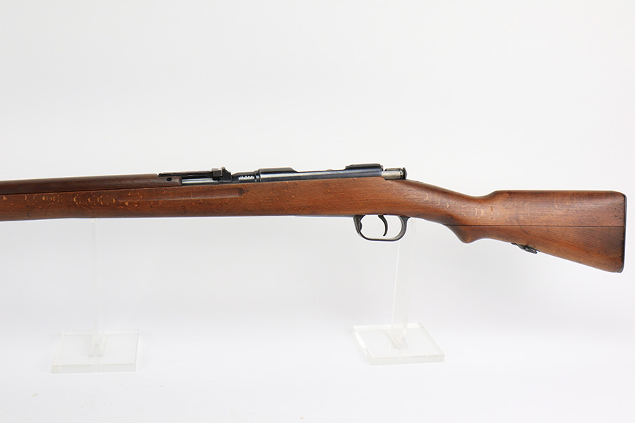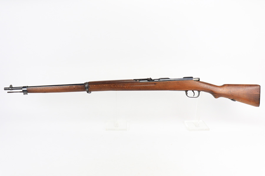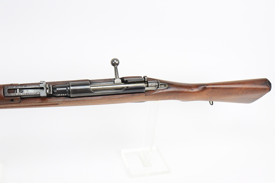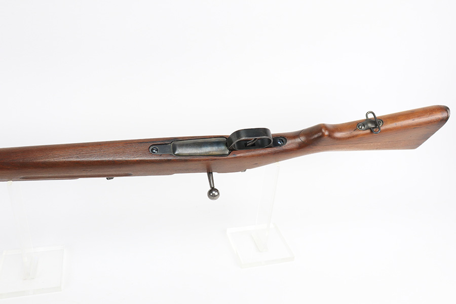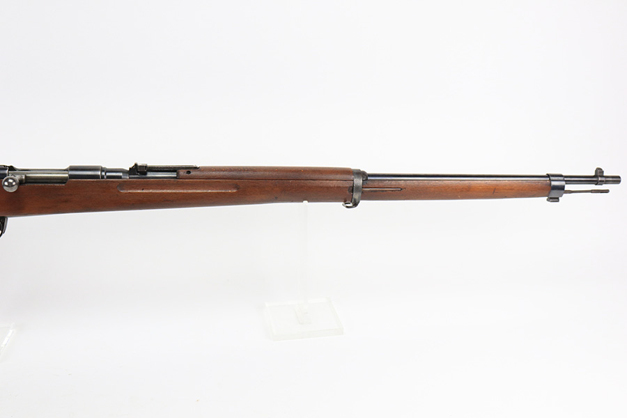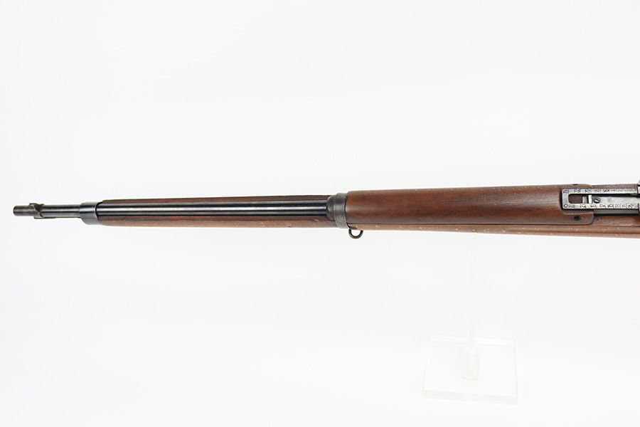 6/7/22 – This is an interesting and somewhat uncommonly seem Carcano Type I rifle. These rifles were made for the Japanese empire by Italy in the late 1930s and early 1940s, and primarily used by Japanese Imperial Navy forces. The gun is all original, correct without mum and only the one serial on the side of the receiver. Overall, the gun is in minty condition. There is minor wear around the high edges of the receiver, tiny handling marks along the barrel, and minor thinning on the rear barrel band and floor plate. Minty wood stock. The bore is excellent – shiny with strong rifling.