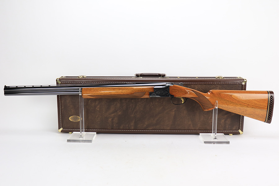 5/10/23 – This is a minty Browning Lightning Superposed shotgun in the original case. Hardly any wear on the gun with engraved receiver. Terrific stock with only a few minor surface scuffs. Barrels are 26.5in with mint bores. Made in 1968 so C&R eligible. Case is also in terrific condition.