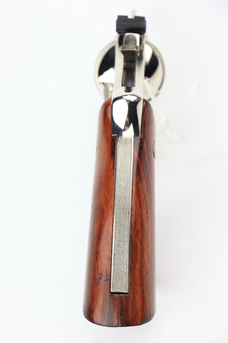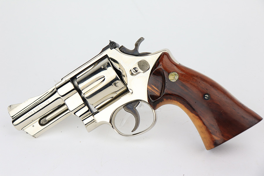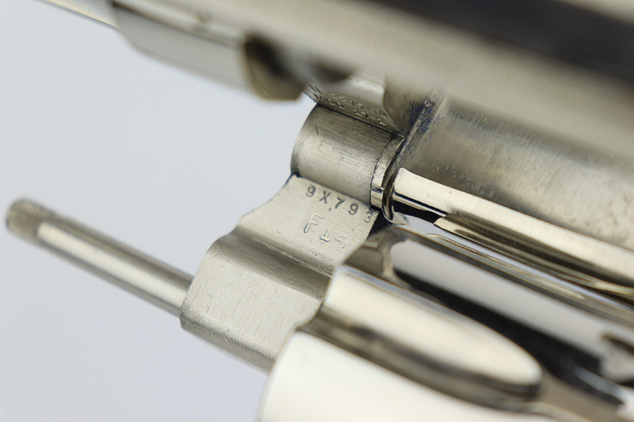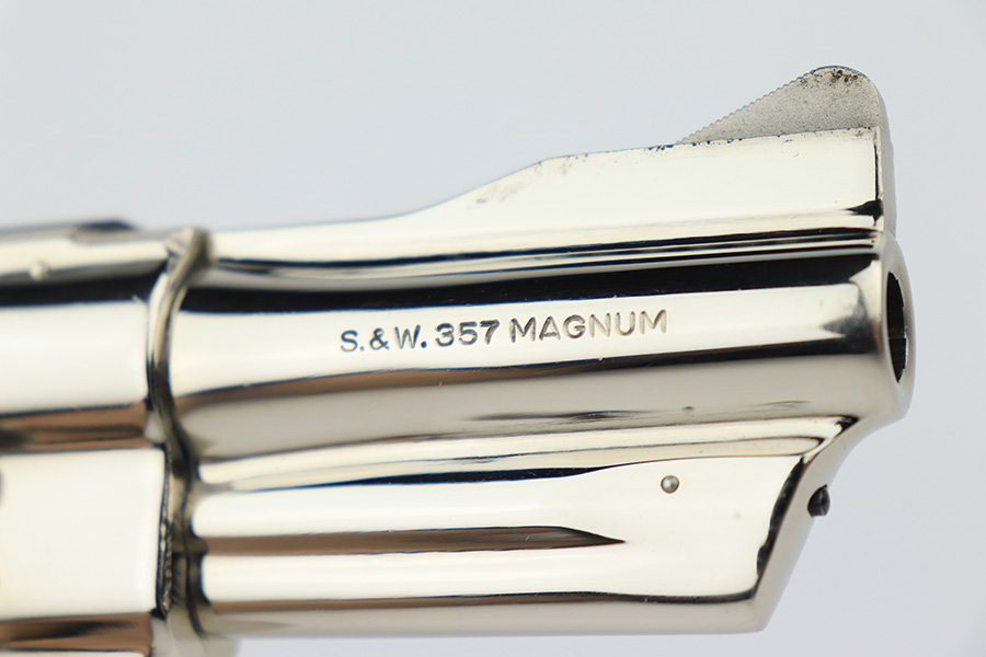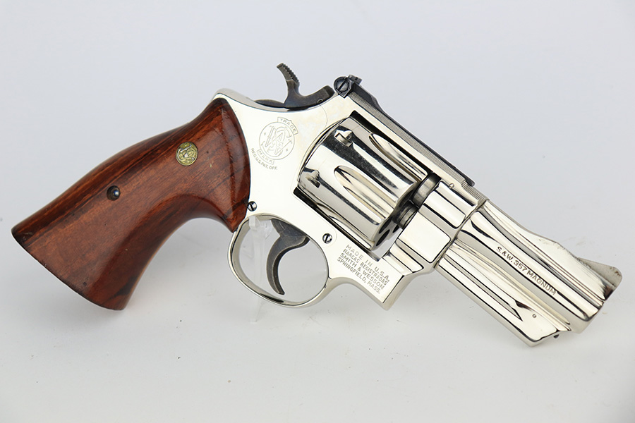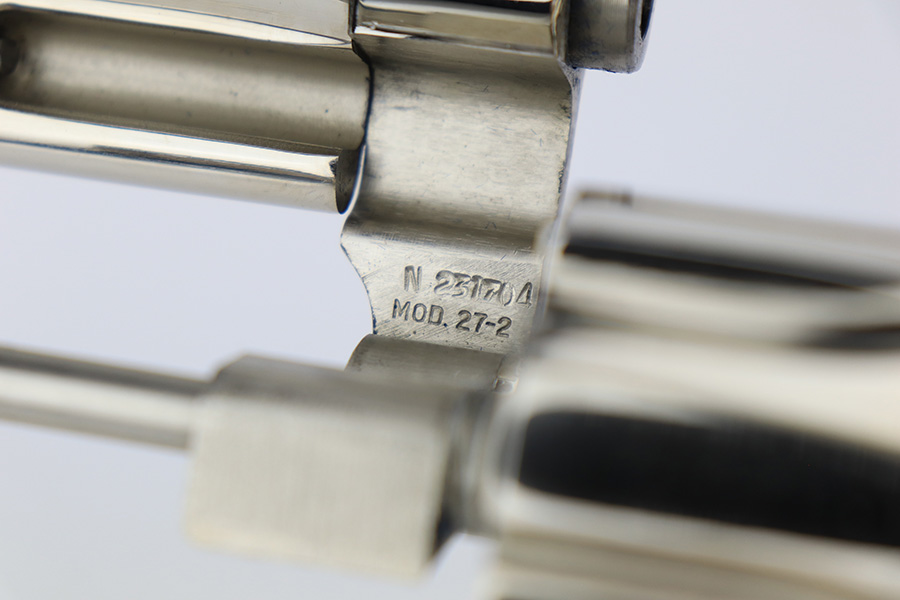 4/20/23 – This is a minty Smith & Wesson 27-2 in the original case. Made in 1975, features the factory original nickel finish. Hardly any wear, just minor surface scuffs and a light turn line on the cylinder, though there is a little pitting on the front sight. Barrel is 3.5in with a minty bore. Smooth timing/action. Goncalo Alves grips with the distinct indentation on the left panel. Pinned barrel and recessed cylinder. Case is in terrific shape and has the screw driver set. The listing also includes a total of 90 rounds.