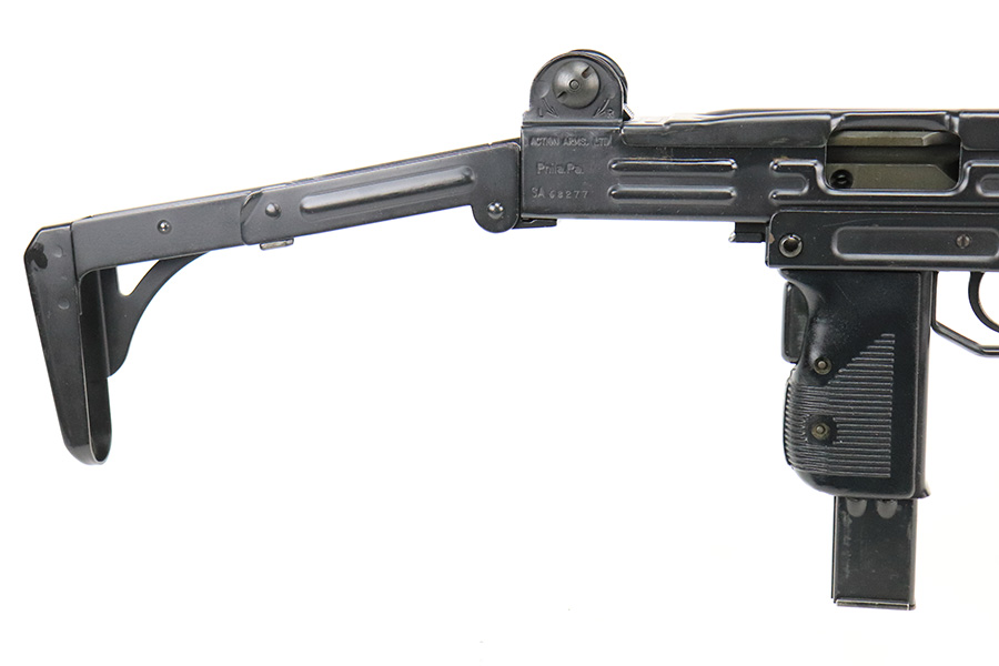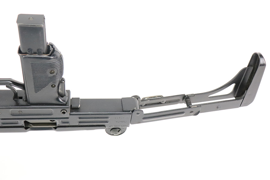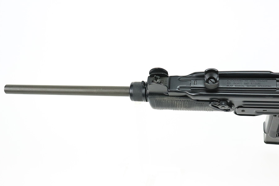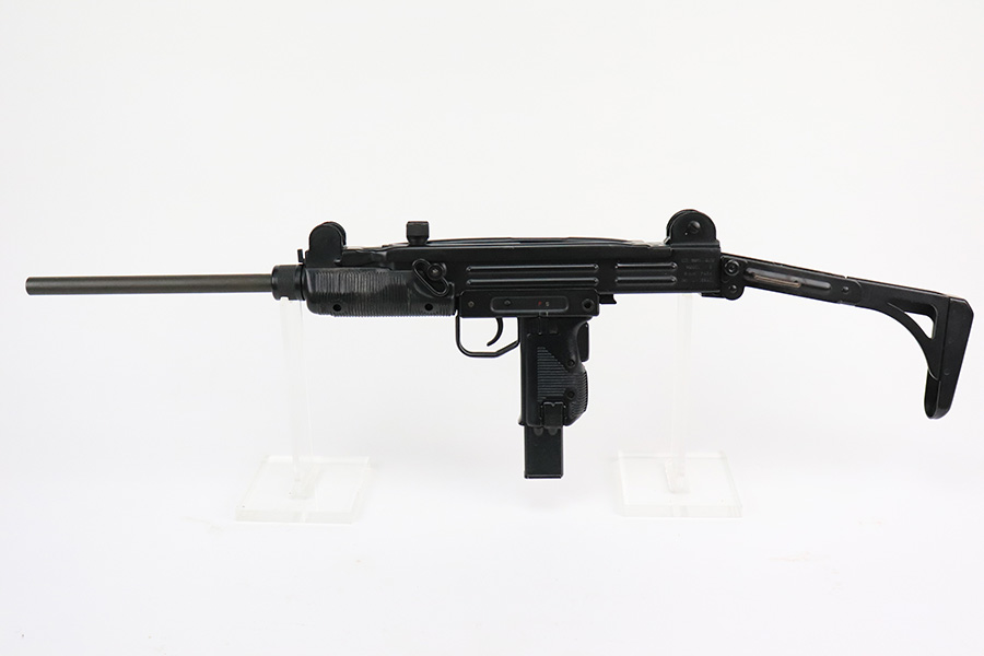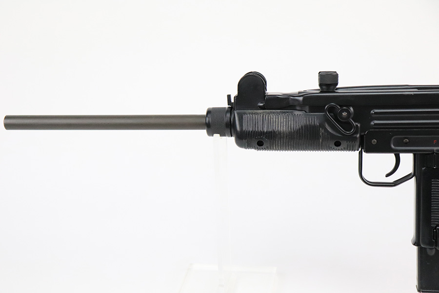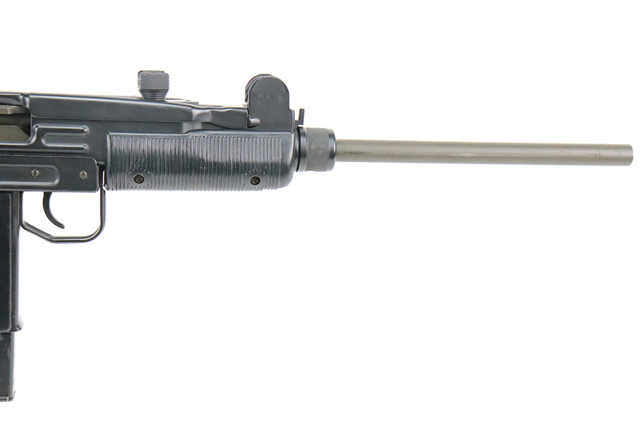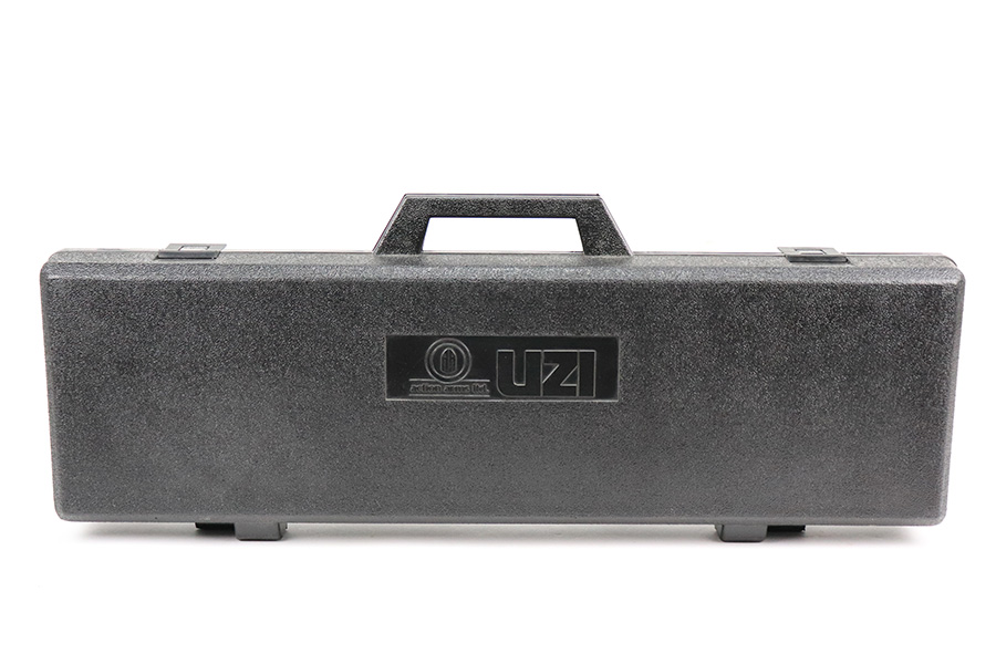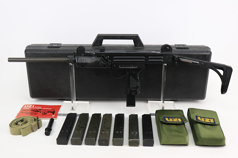 7/15/22 – This is a minty UZI Model B carbine in the original case. It comes with a total of eight original magazines, two UZI-marked canvas mag pouches, the original sling and manual. The rifle has just minor “box wear” with a mint bore, so doesn’t appear to have been used much at all. Produced by IWI in Israel and then imported by Action Arms in Philadelphia. Extended barrel allows this one to qualify as a rifle. FFL required.