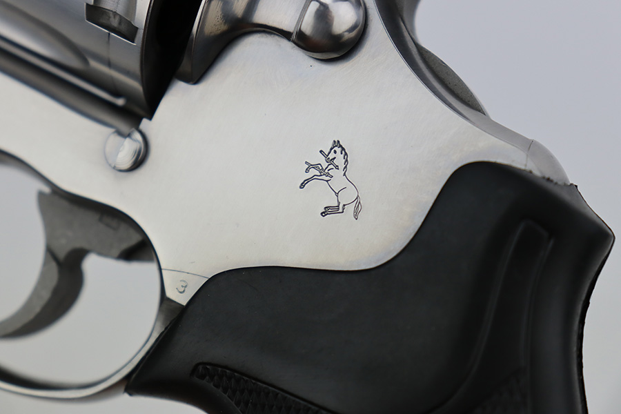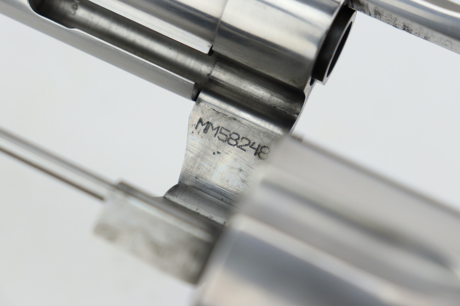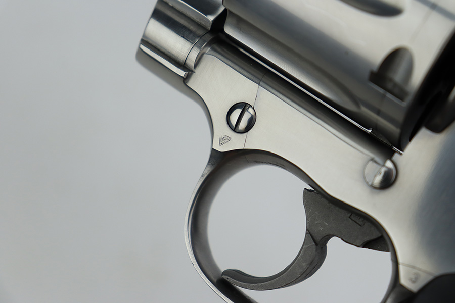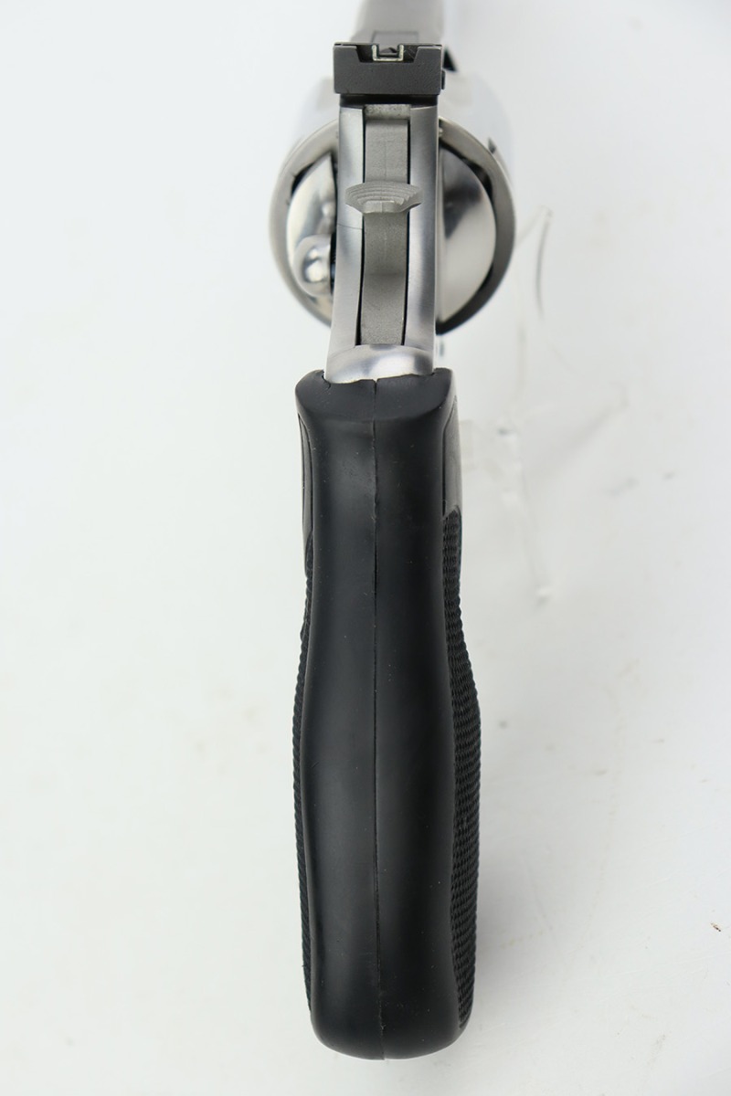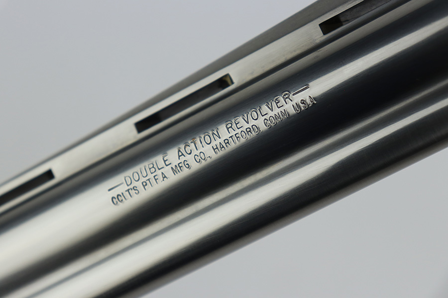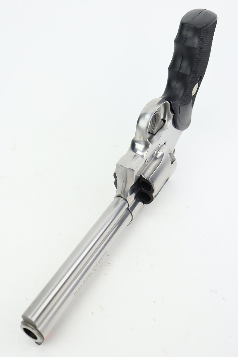 8/25/23 – This is a near-mint example of a Colt Anaconda Revolver, manufactured in 1994 and chambered in .44 Magnum. 6″ barrel. It has a really nice polished stainless finish. There is very little sign of wear or use except for a few tiny scuffs here and there and a light roll mark on the cylinder. It is fitted with nice Pachmayr black rubber grips. Mint bore.