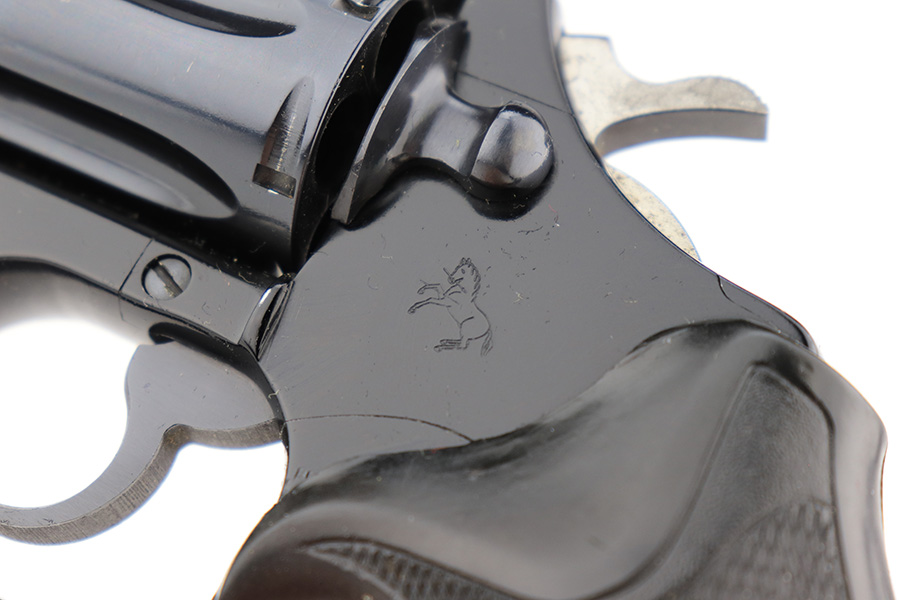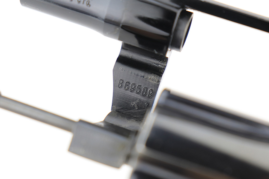 3/28/23 – This is a near-mint example of a Colt Cobra Revolver, manufactured in 1971. It is all matching, has 2″ barrel, a lightweight aluminum frame, and is chambered in .38 Special. It has retained nearly all of its finish with just some tiny handling marks on the trigger guard. There is barely even a roll mark on the cylinder. Excellent and comfortable black rubber grips. Minty bore.