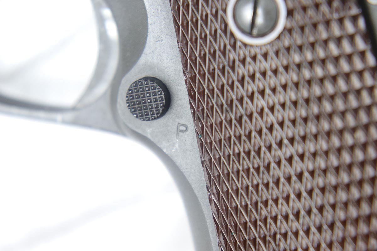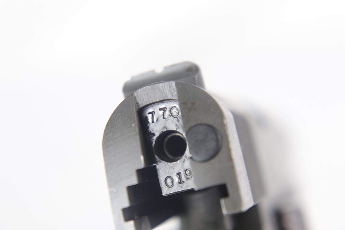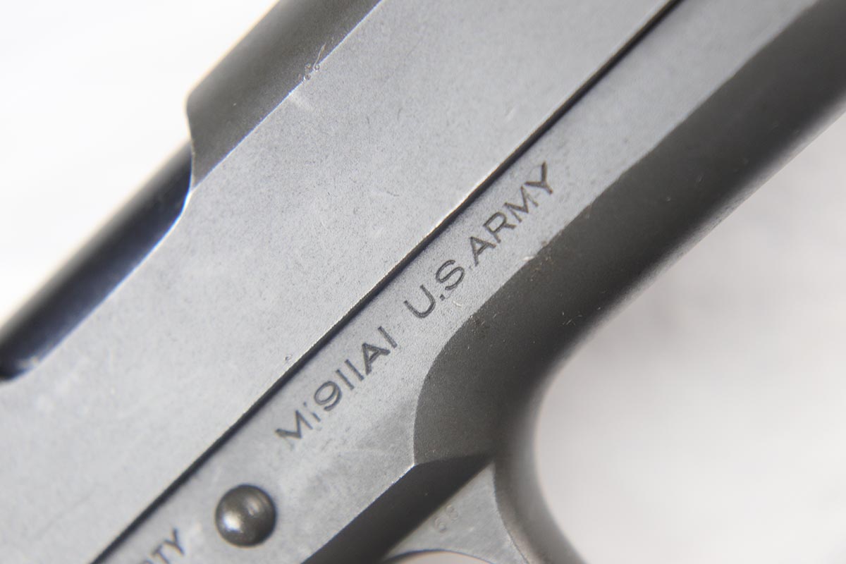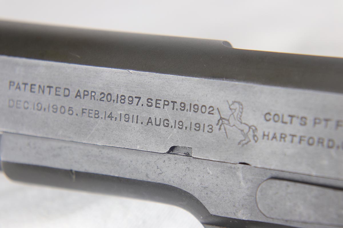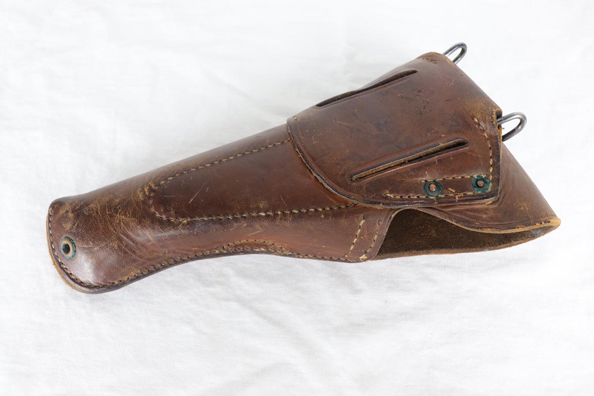 7/19/18 – This is a near-mint Colt M1911A1 rig, manufactured in 1942 with all correct inspector marks and proof stamps. The pistol retains 98-99% original parkerized finish with only minor finish loss on the underside of the slide. The slide is numbered to the frame, and the scarce barrel is ‘G’ proofed under the lug and has a mint bore. Minty grips and an ‘R’ marked magazine. The pistol comes with a 1942 dated Sears holster, as well as the original canvas belt with magazine pouch and first aid kit. Just an excellent example of an ‘as issued’ wartime rig.