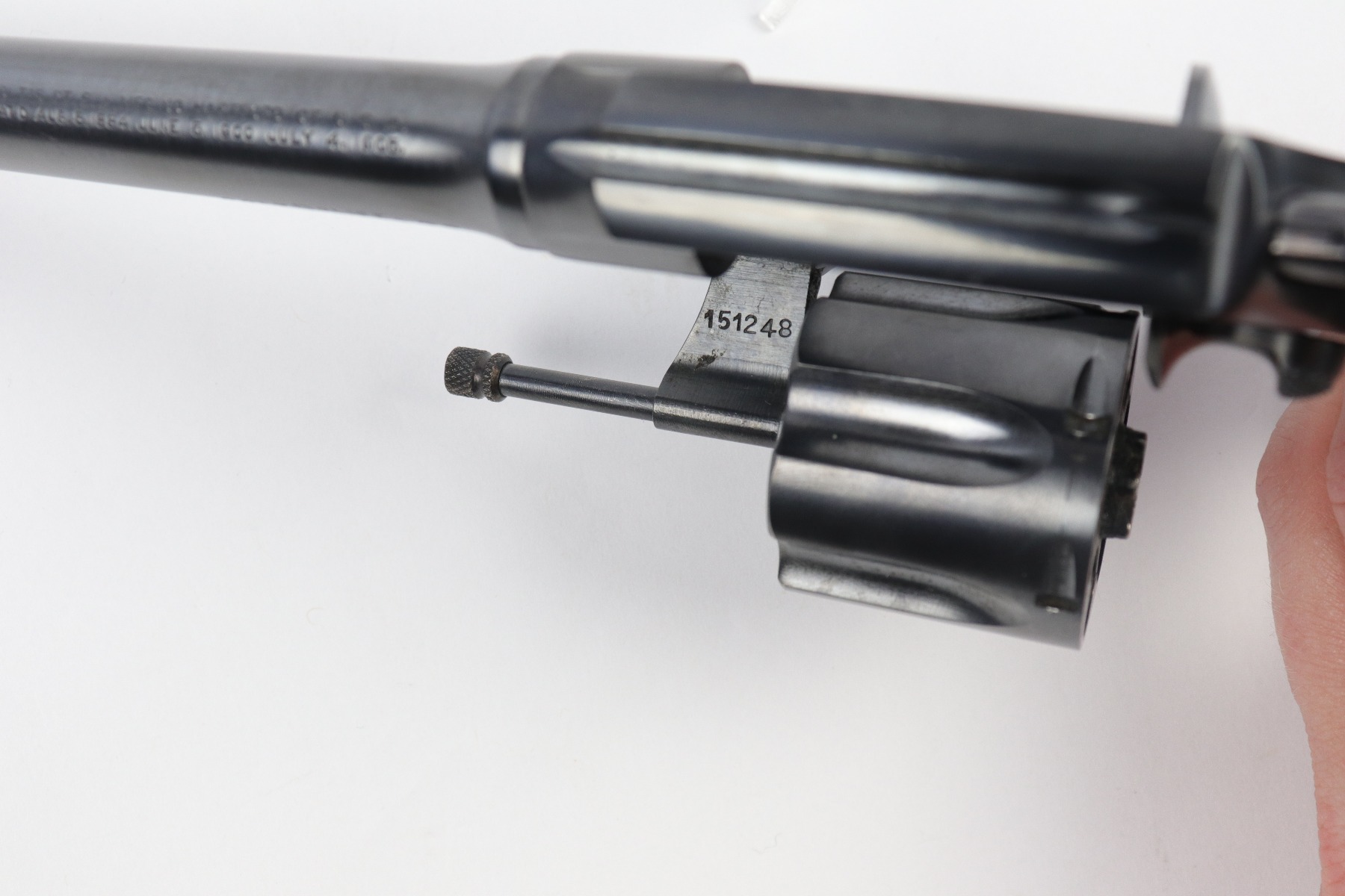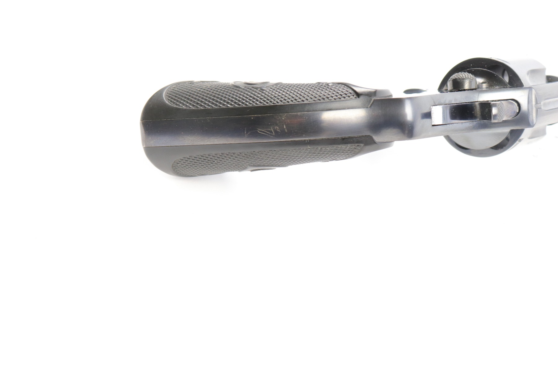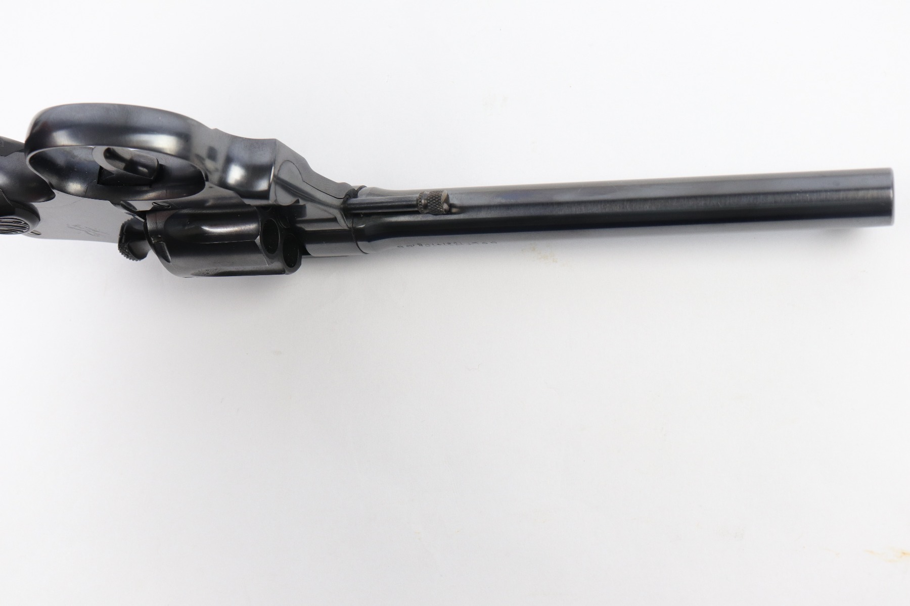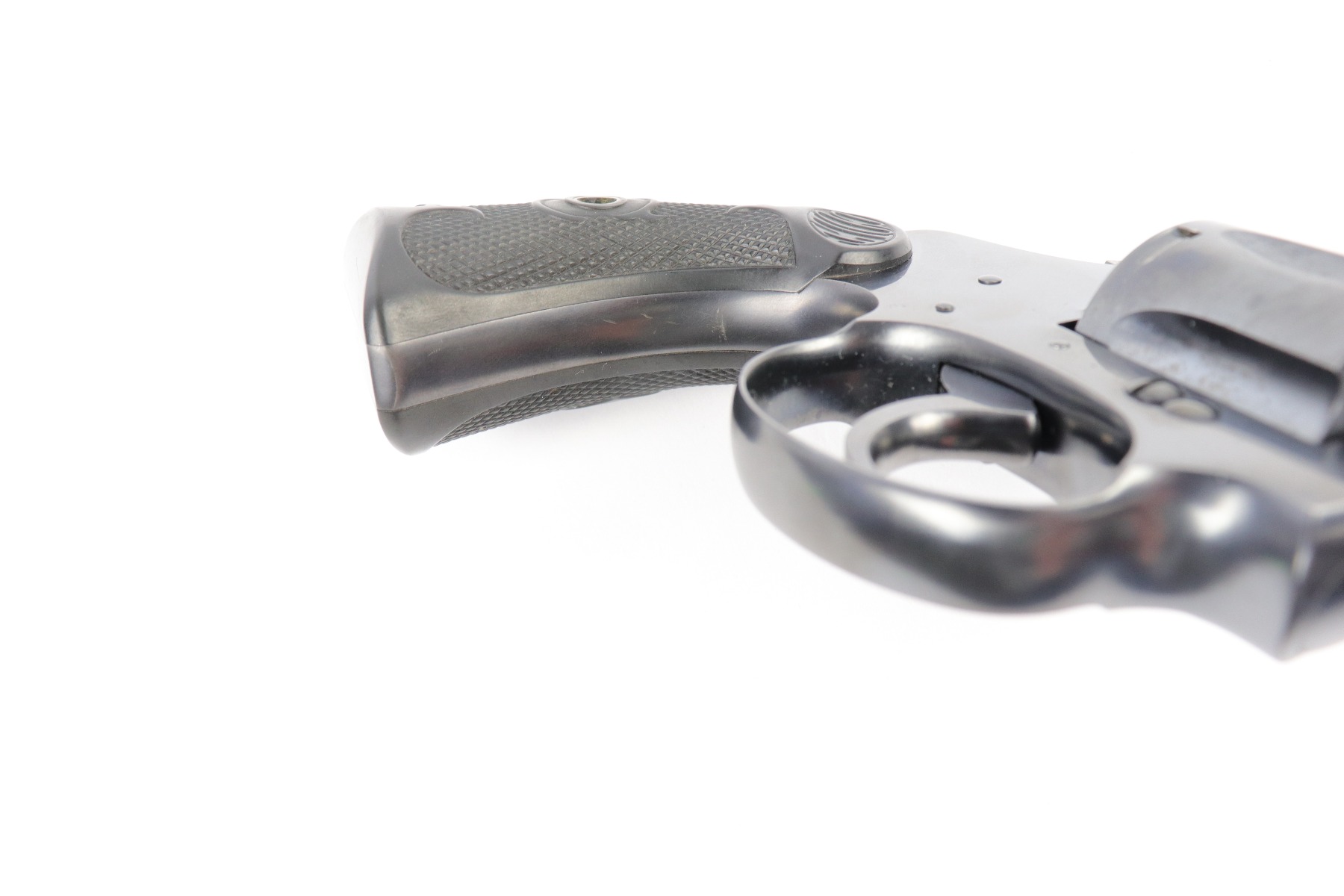 3/16/18 – This is an original, excellent first-issue Colt Police Positive revolver. The beautiful Colt factory bluing is still in excellent condition with only approx. 2% wear throughout the entire gun. There is some very light surface scratching on the barrel that can only be seen in the right angle and lighting, but otherwise the gun is close to mint. The back strap of the grip has very light, minimal patina. The cylinder has typical roll marks, but the bore looks minty – almost un-fired. Guaranteed original and authentic.