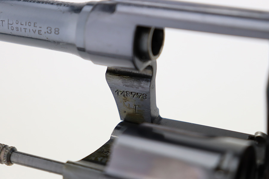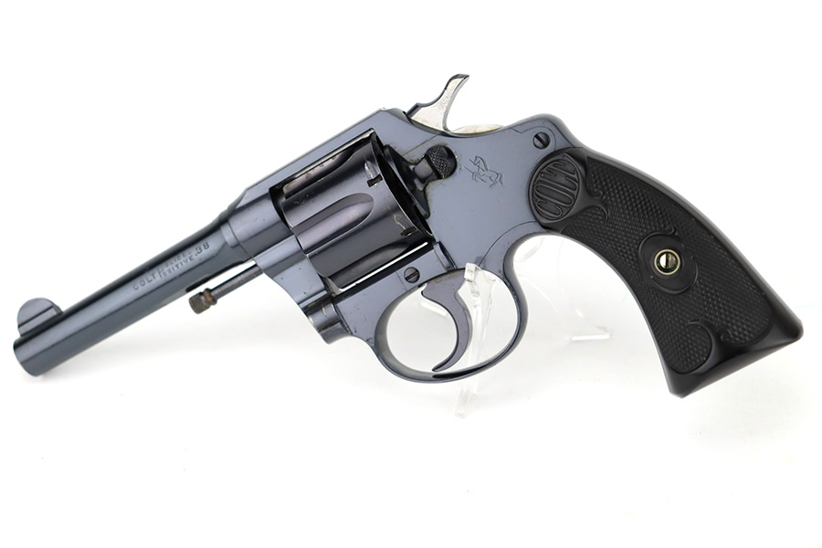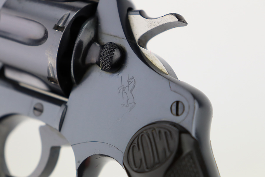 12/14/23 – This a near-mint example of a Colt Police Positive Revolver, manufactured in 1922 and chambered in .38 Caliber. It is all matching and has retained nearly all of its beautiful Colt bluing. There is just a hint of a roll mark and a few tiny dots of discoloration on the cylinder. Fitted with period-correct black hard rubber grips. Mint bore.