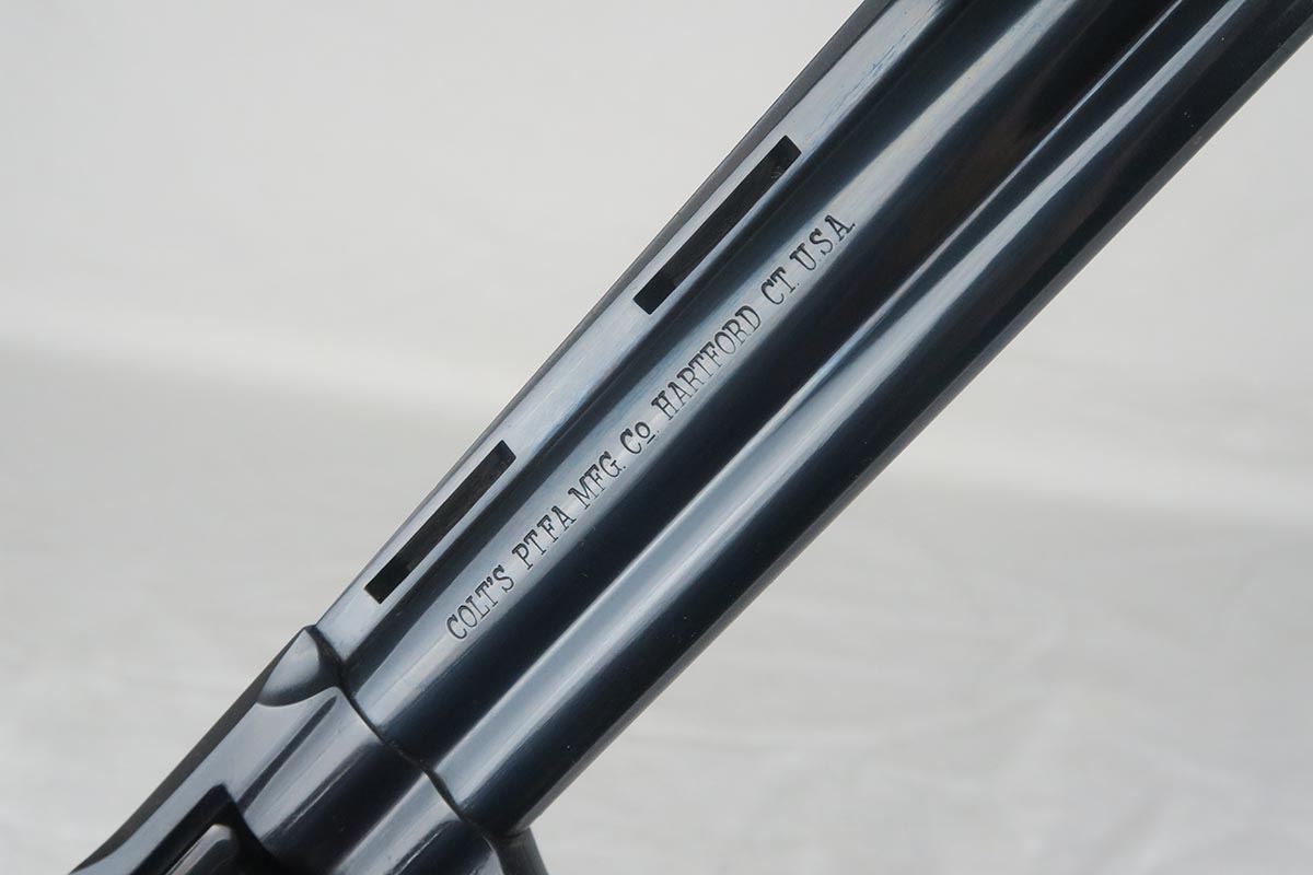 12/8/17 – This is a minty Colt Python revolver that was manufactured in 1968.  It is all original and correct with 99+% high-polish blue remaining.  There’s virtually no wear aside from a minor roll mark.  Minty original grips and minty bore.
