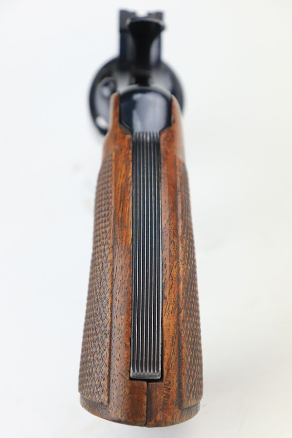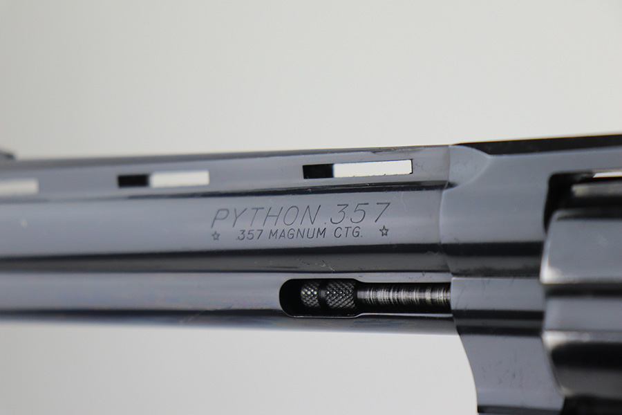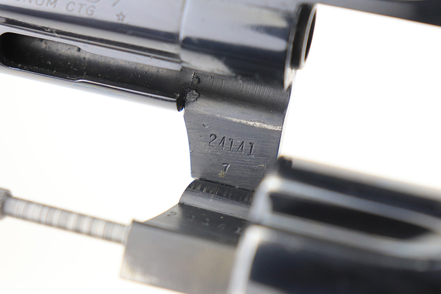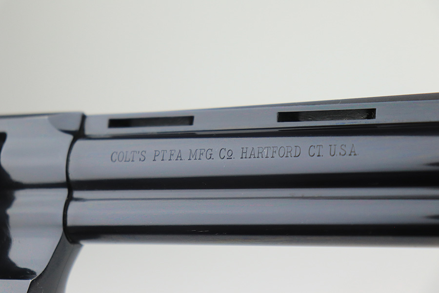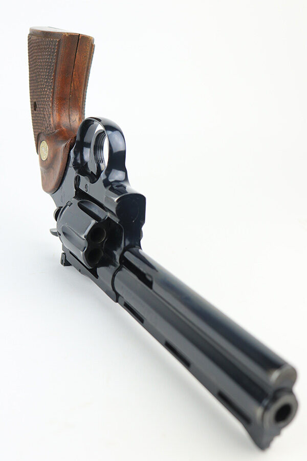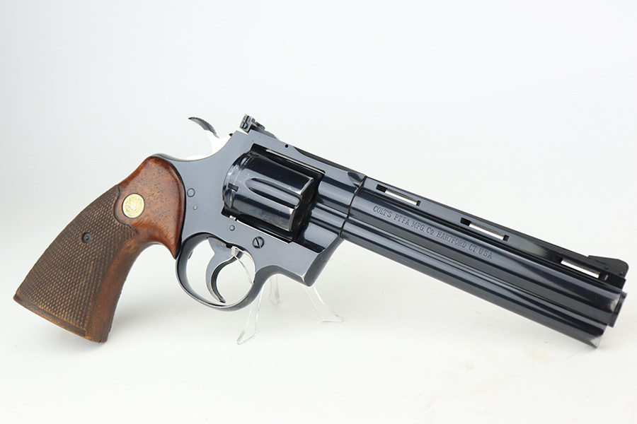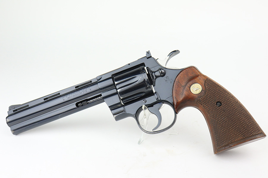 12/9/21 – This is a minty example of a Colt Python revolver manufactured in 1962. It is chambered in .357 Mag and has a 6 inch barrel. It is all correct and comes with an official Colt factory letter. According to the factory letter, it was delivered to a gentleman in NYC on December 12th, 1962. The gun is in minty condition, retaining about 97% of its original high polish finish. There is very minor wear around the muzzle and at the front edge of the frame. On the cylinder, there is somewhat spotty wear concentrated on the high edges and an extremely light roll mark. A light scratch on the underside of the barrel. The cylinder is tight and the action is very smooth. Comes with minty wood grips. The bore is mint.