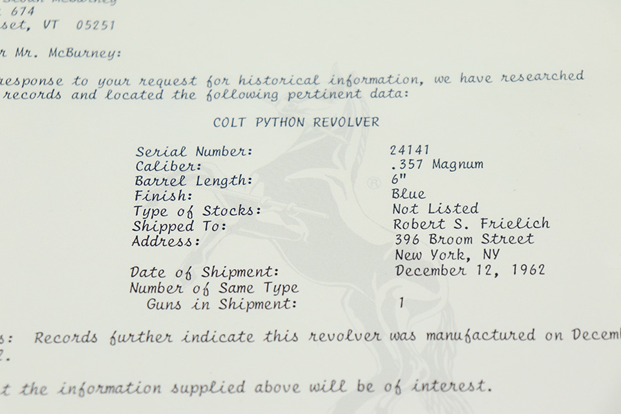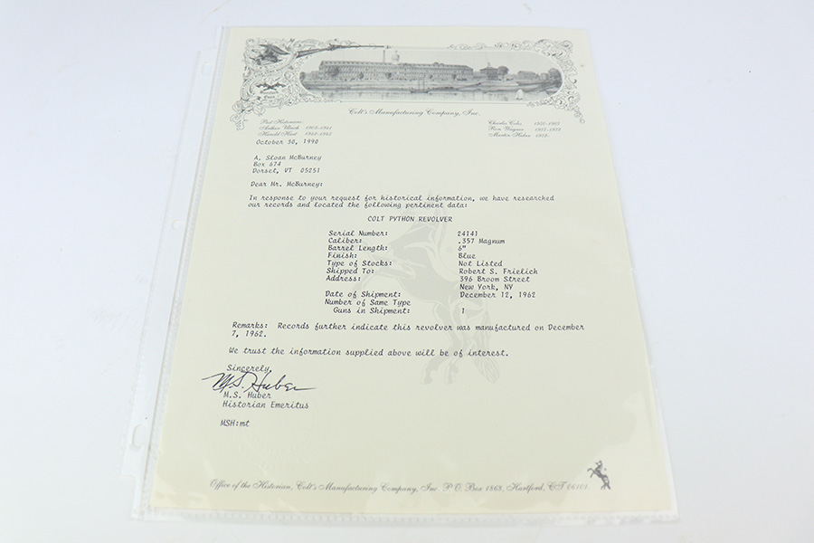 SOLD – Minty Colt Python Revolver – With Factory Letter