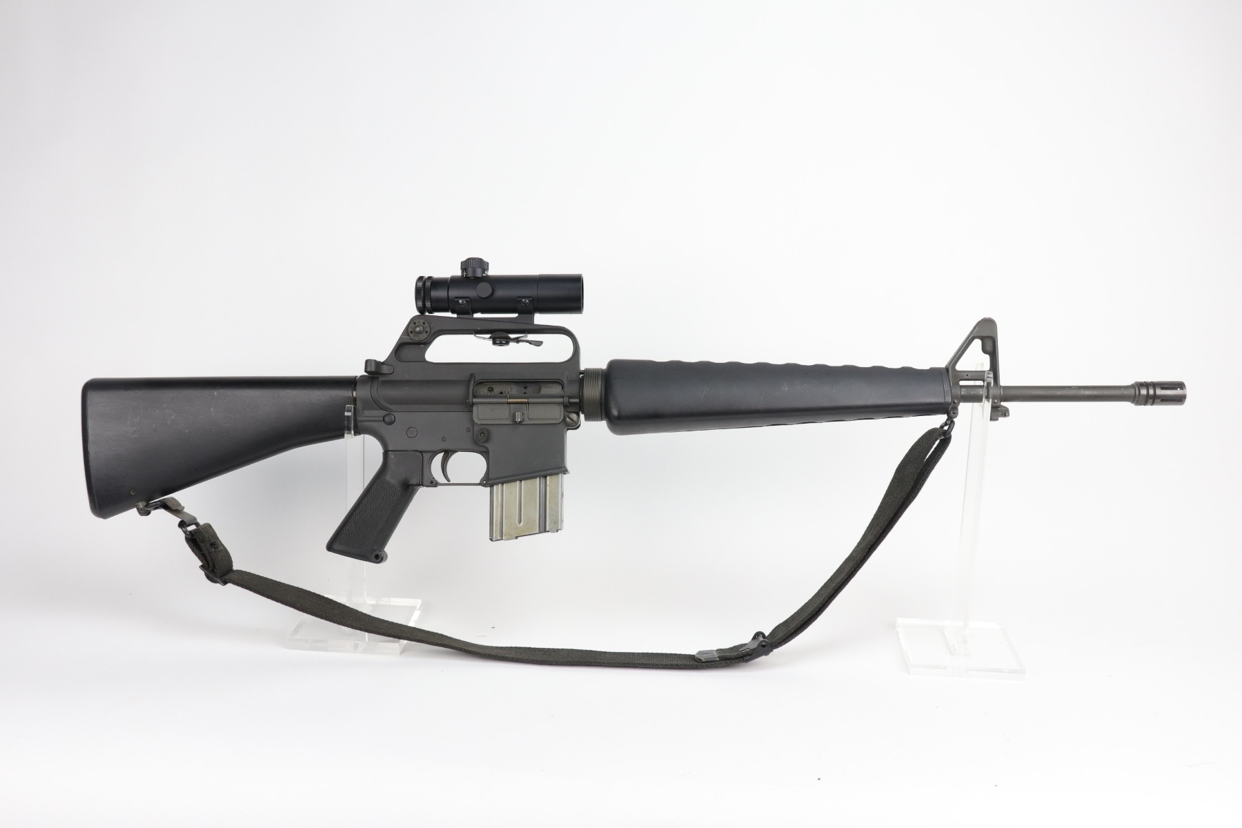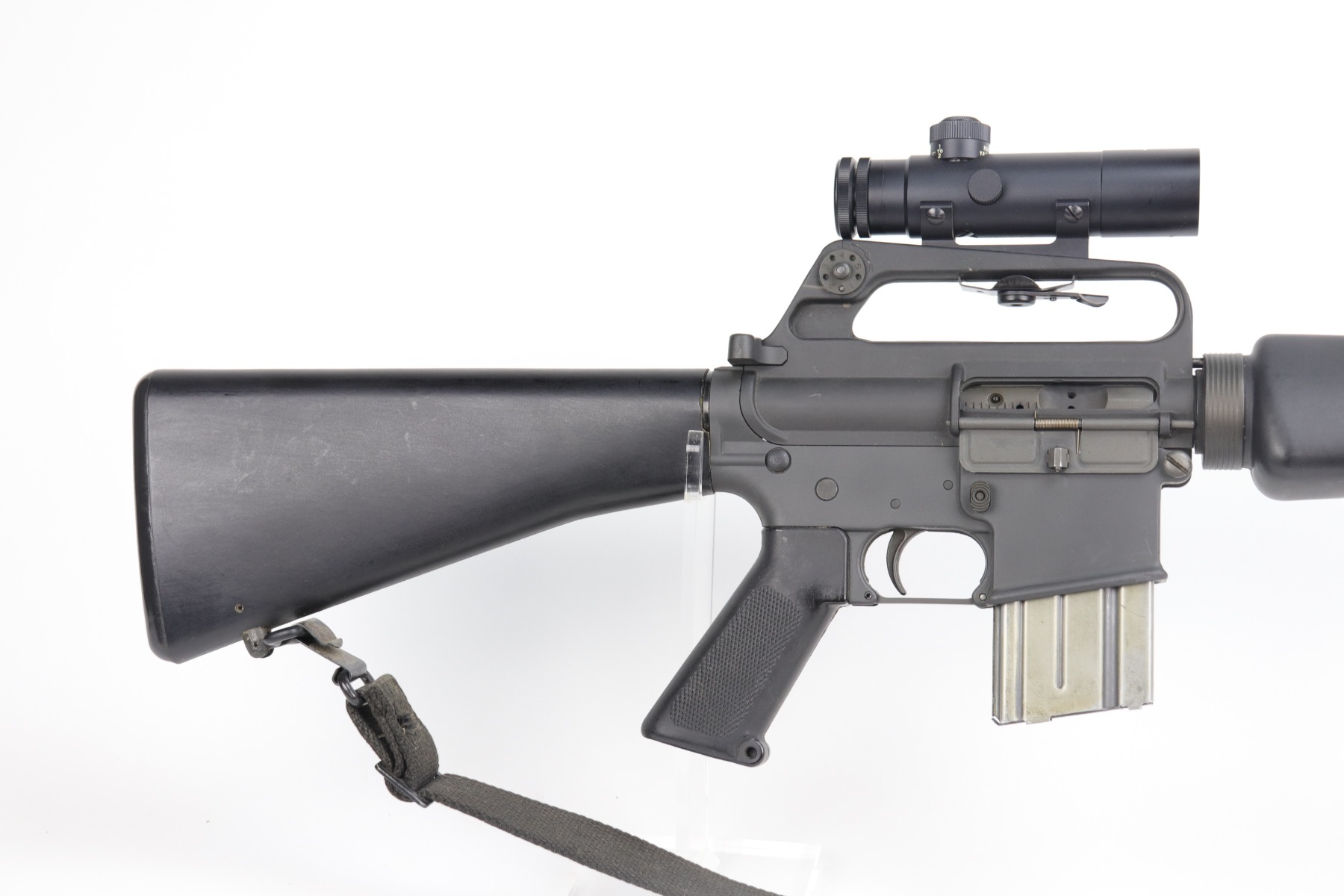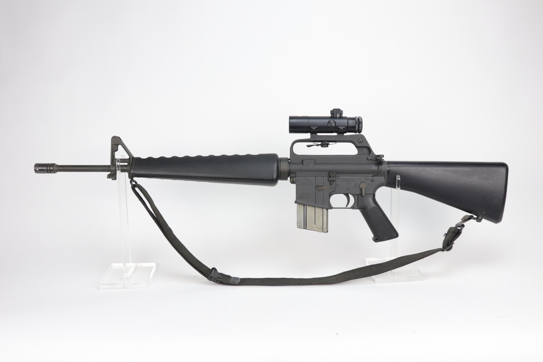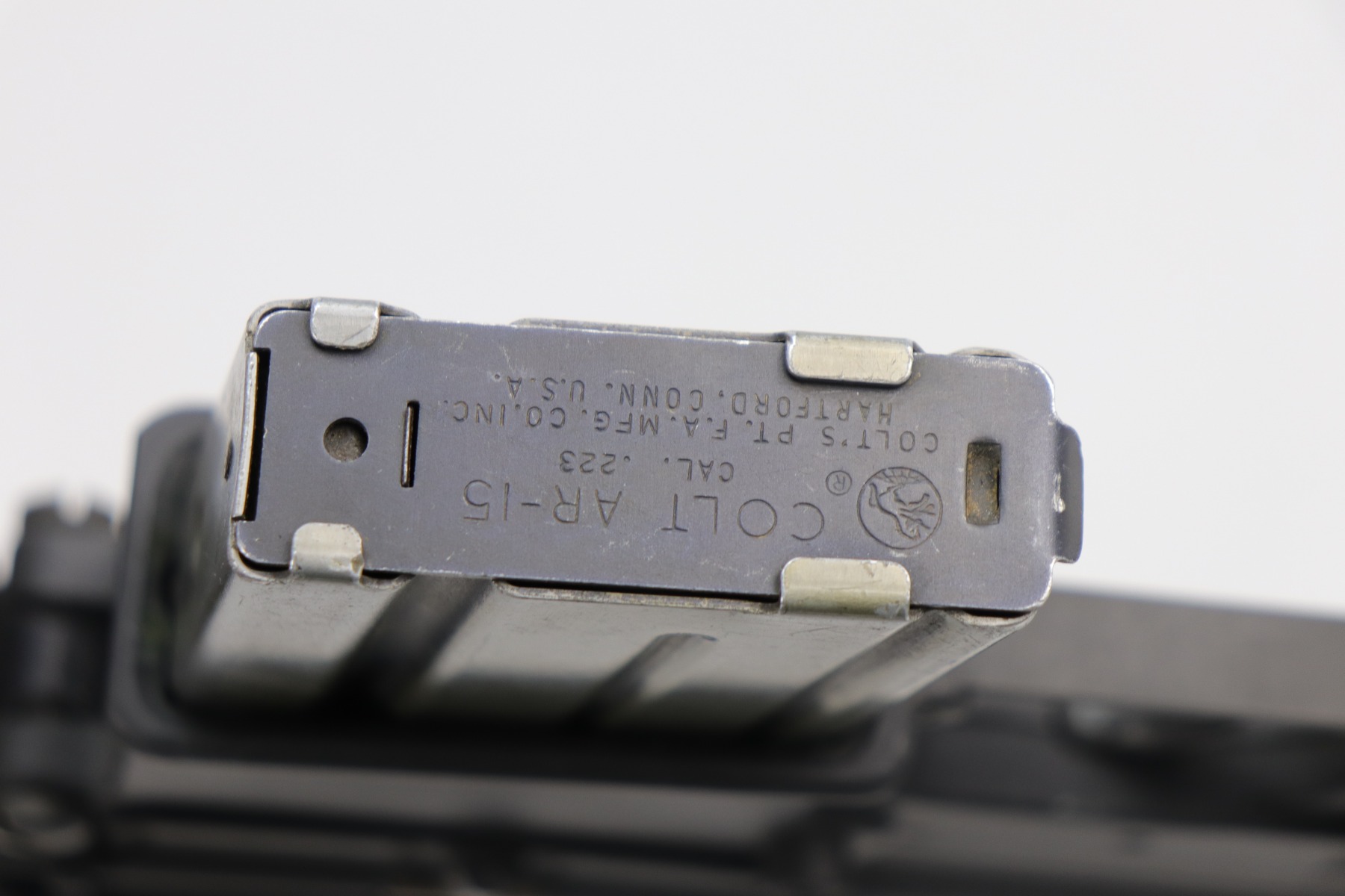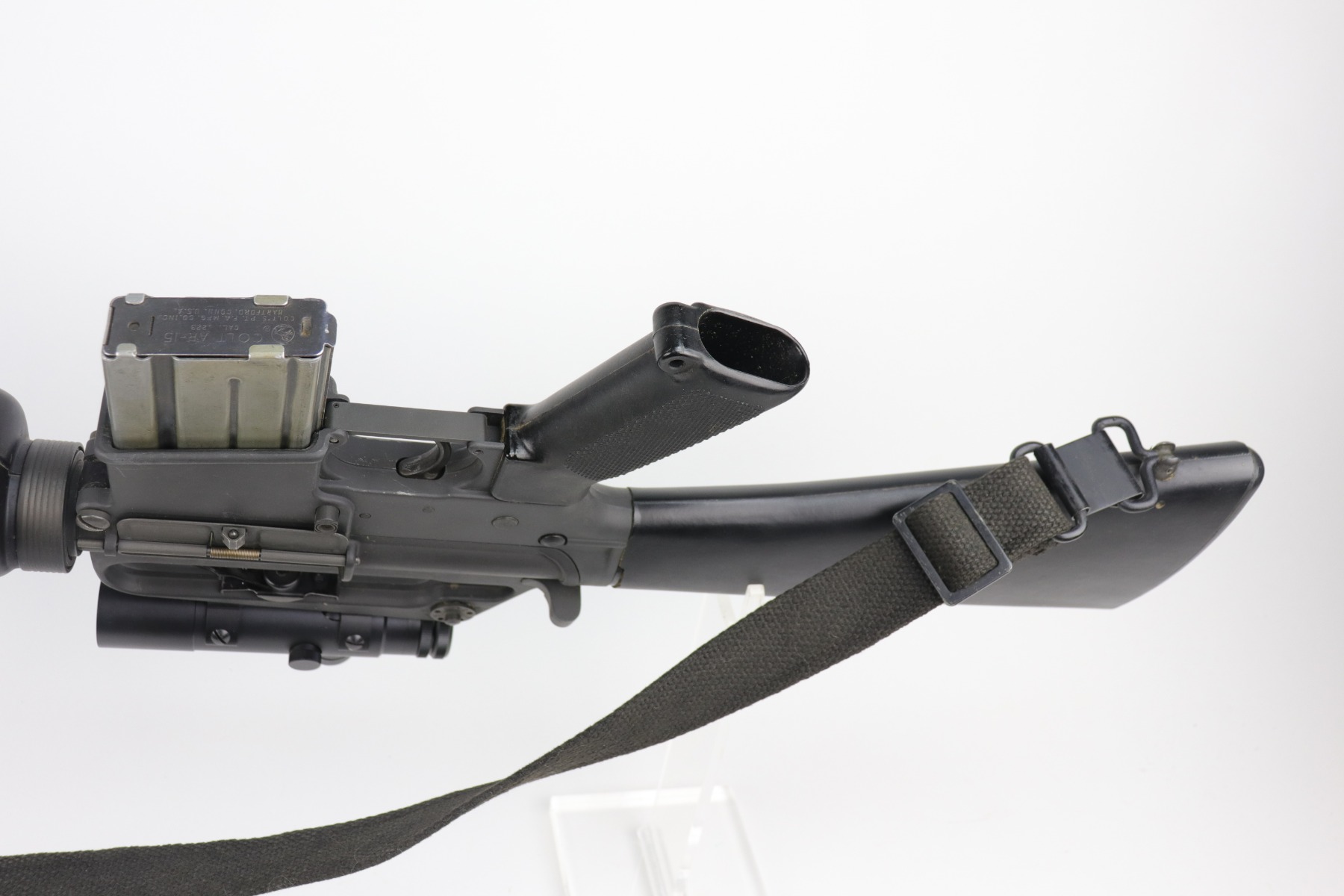 9/4/20 – This is a minty Colt SP1 AR-15 Rifle, manufactured in 1968. This gun is fully functional and has retained about 99% of its original finish. The only sign of wear is a few scuffs on the barrel. It comes with a Japanese-made Colt scope (clear optics), 15-round Colt magazine, and a black canvas sling. The bore is mint. C&R eligible.