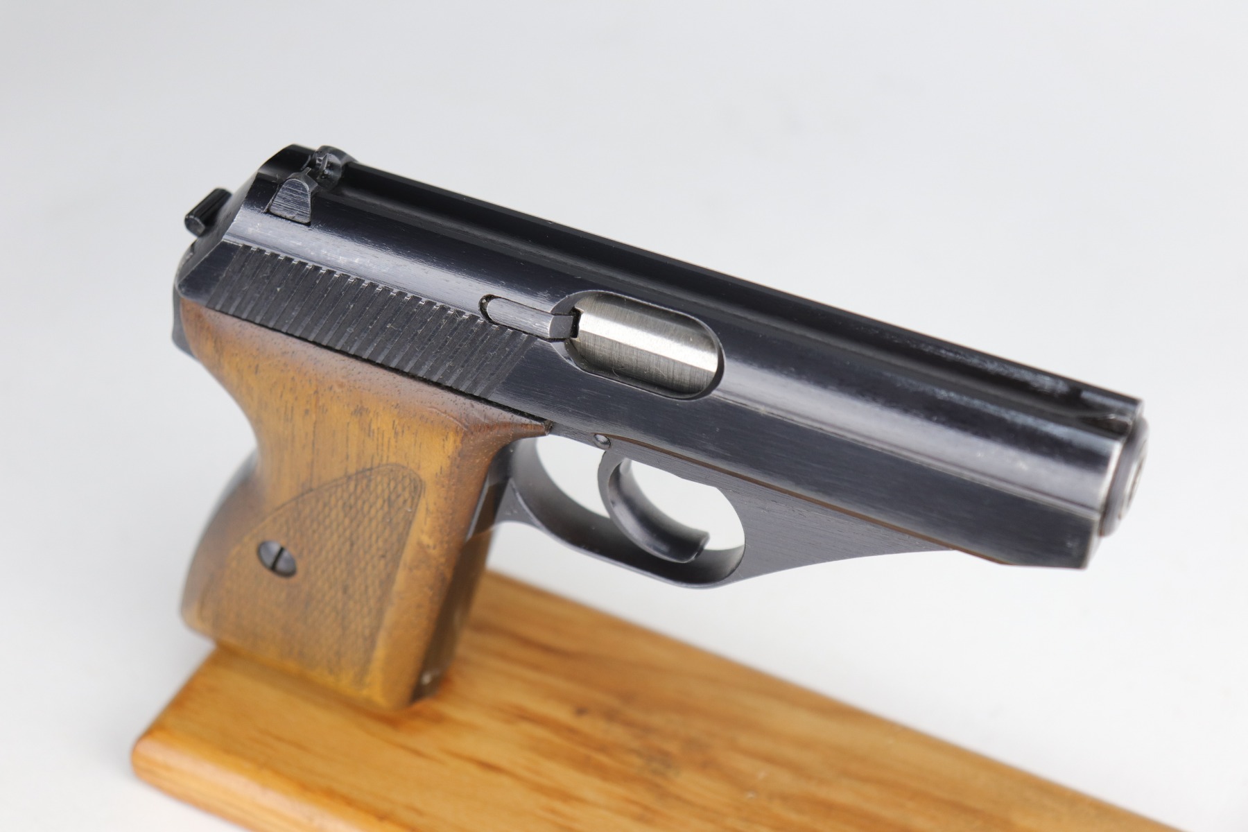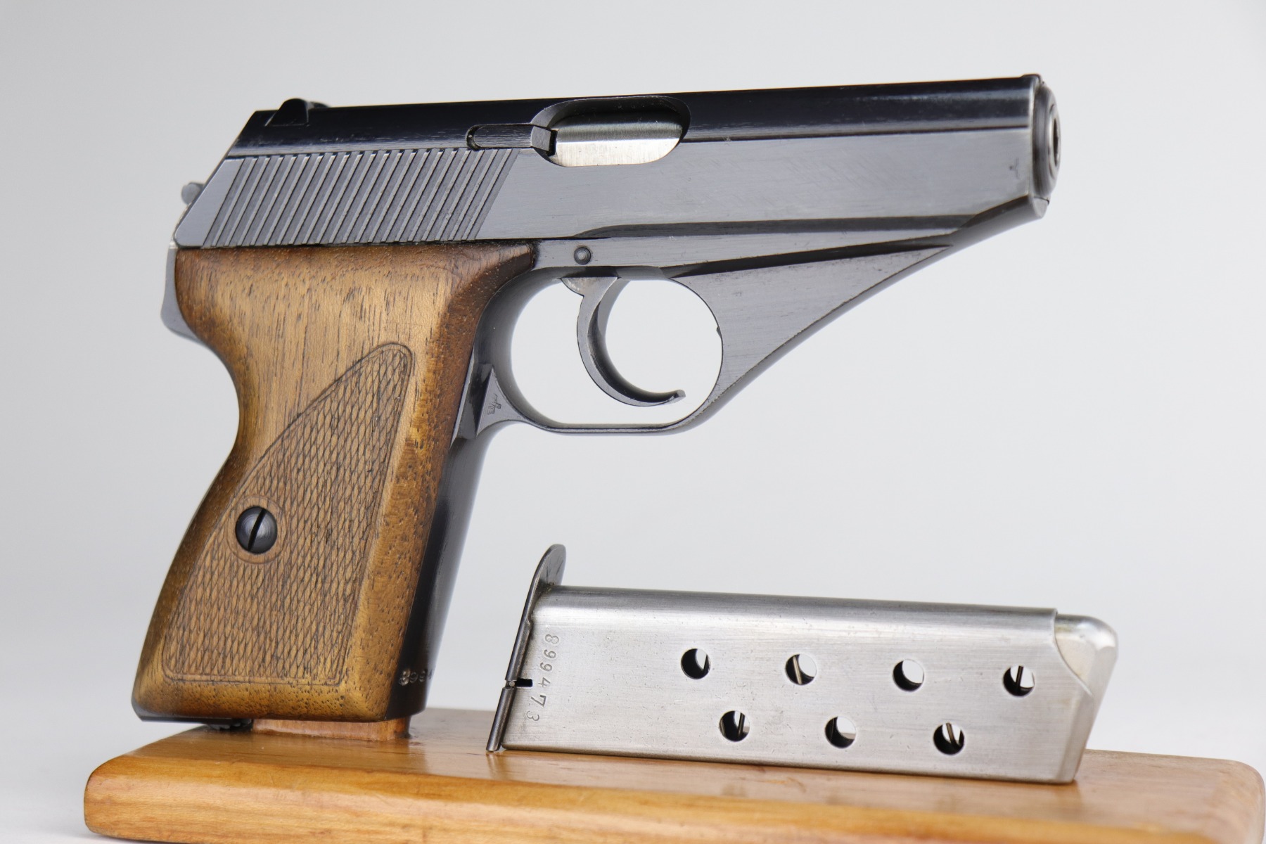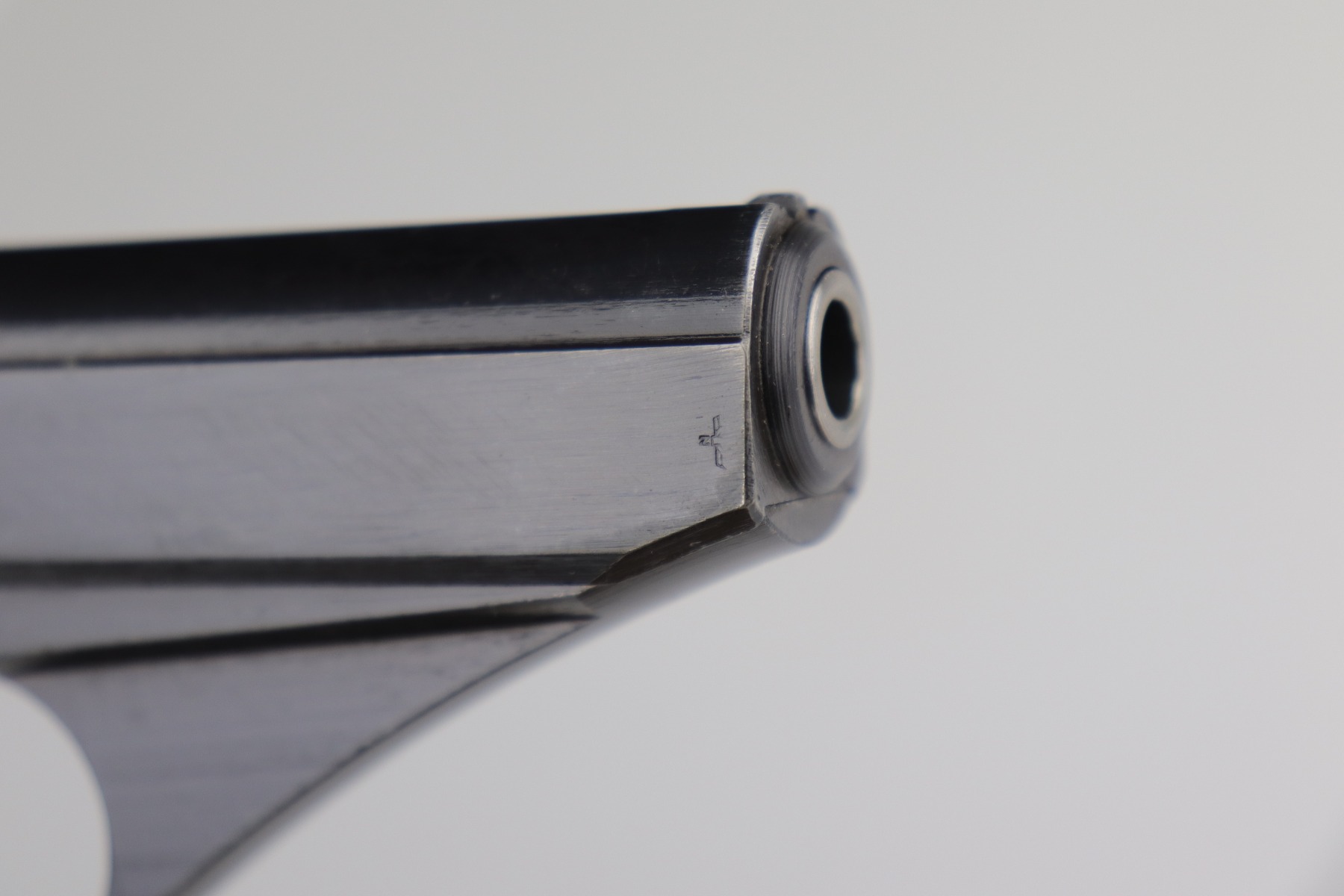 12/31/20 – This is a minty example of a Mauser HSC sold in the commercial market in 1944. It is all correct and has the proper “Eagle N” proofs. It has retained about 98% of its original finish. There is a hint of wear around the muzzle, a light streak of wear on the front strap, and minor wear on some of the high edges. Comes with excellent grips and one original matching magazine. We’re not sure why the magazine is numbered. Likely done after the war. The bore is mint.
