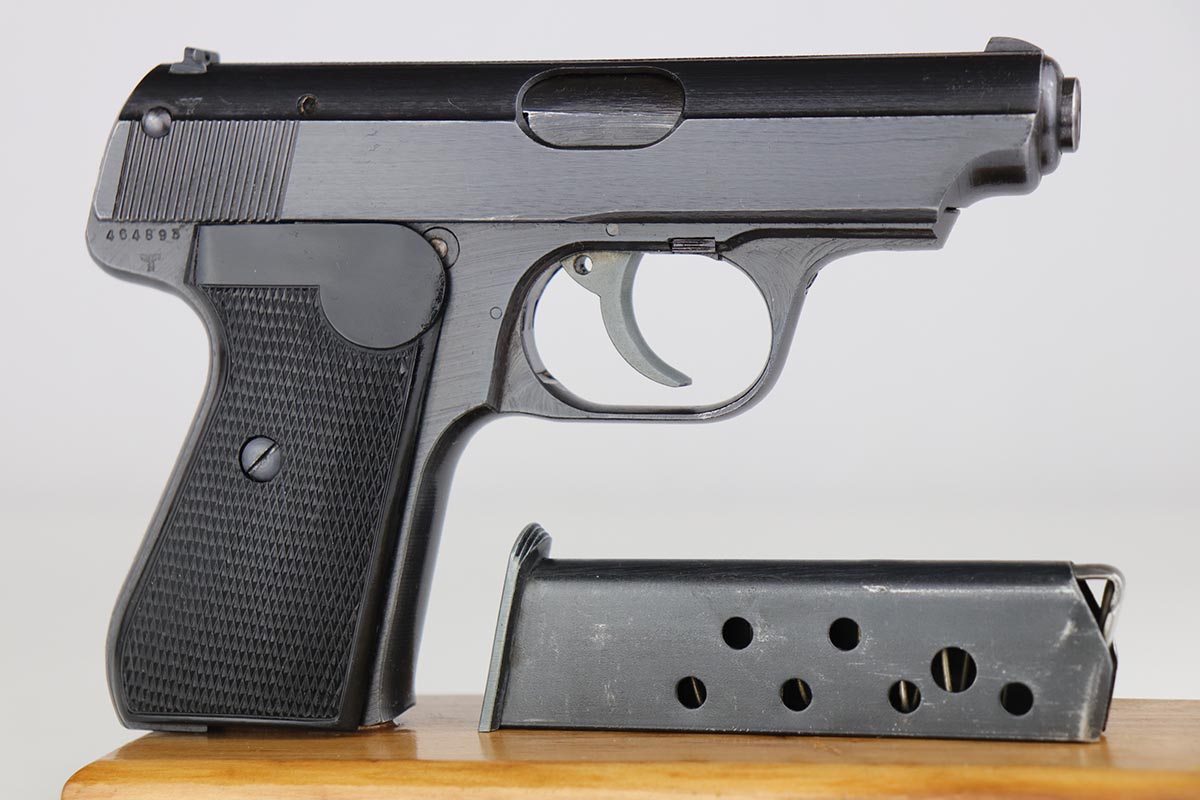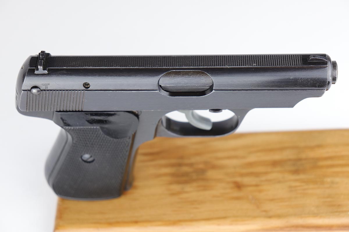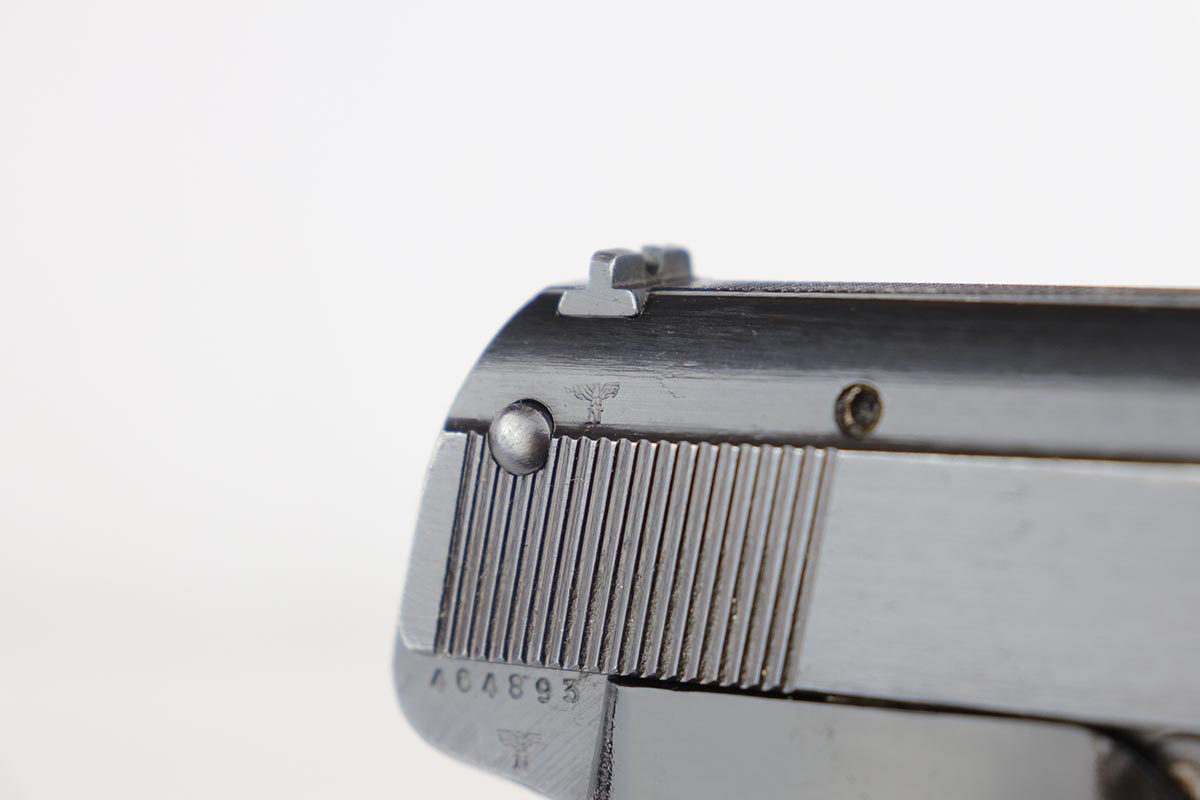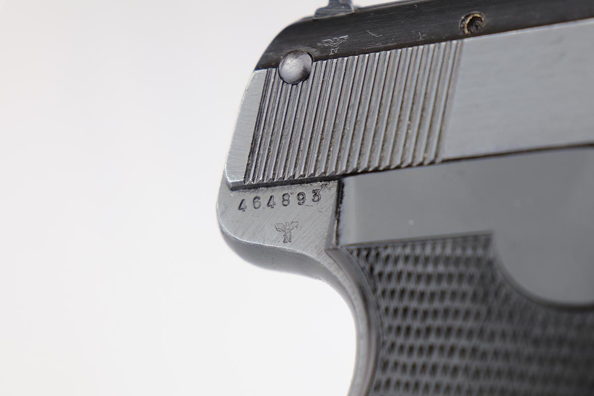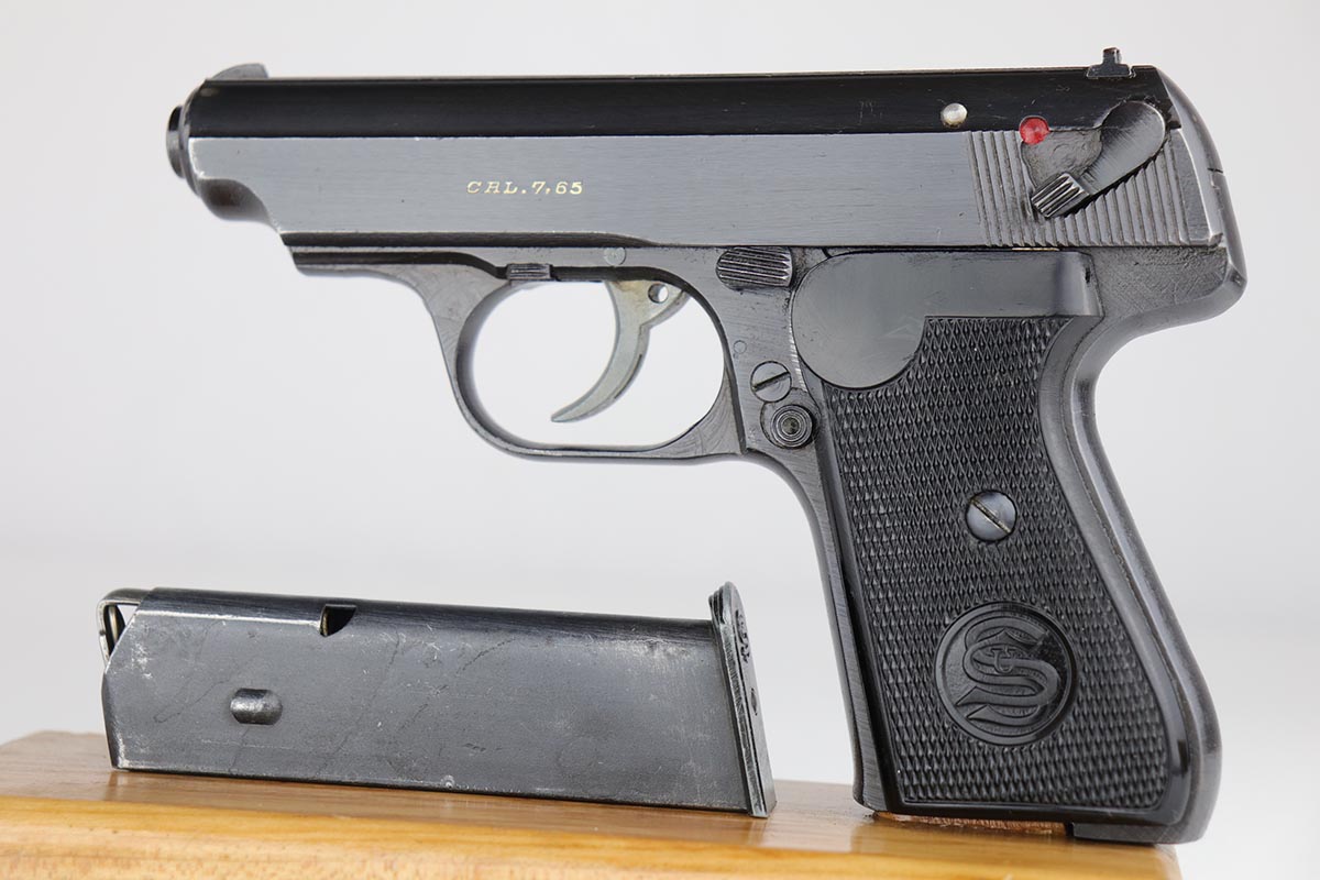 7/17/19 – This is a near-mint Sauer 38h that was made late in the World War II era for the German commercial market. The military blue rates at 98-99% with just minor hints of edge wear. Grips show minor handling wear but otherwise in great shape. Mint bore and good mechanics. Intertwined ‘S’ marked magazine.