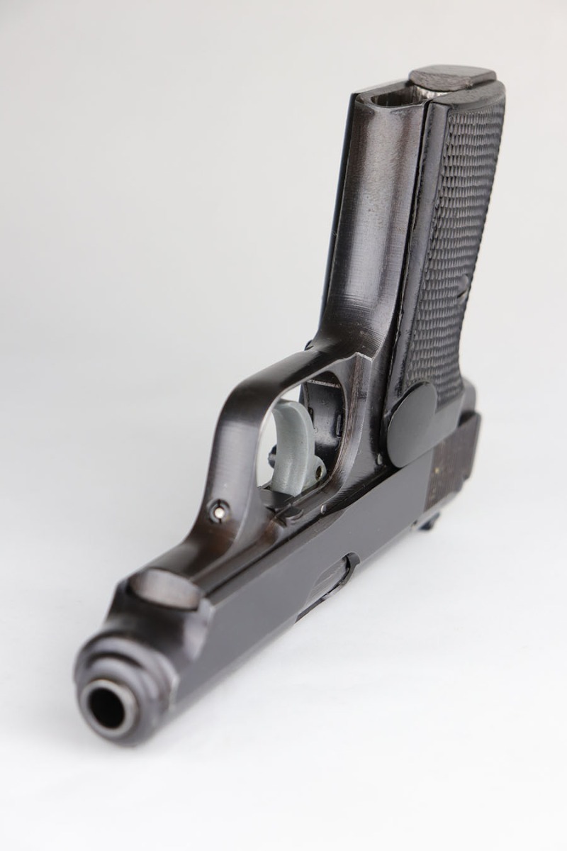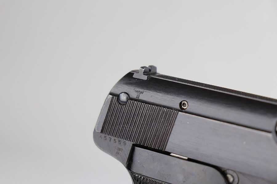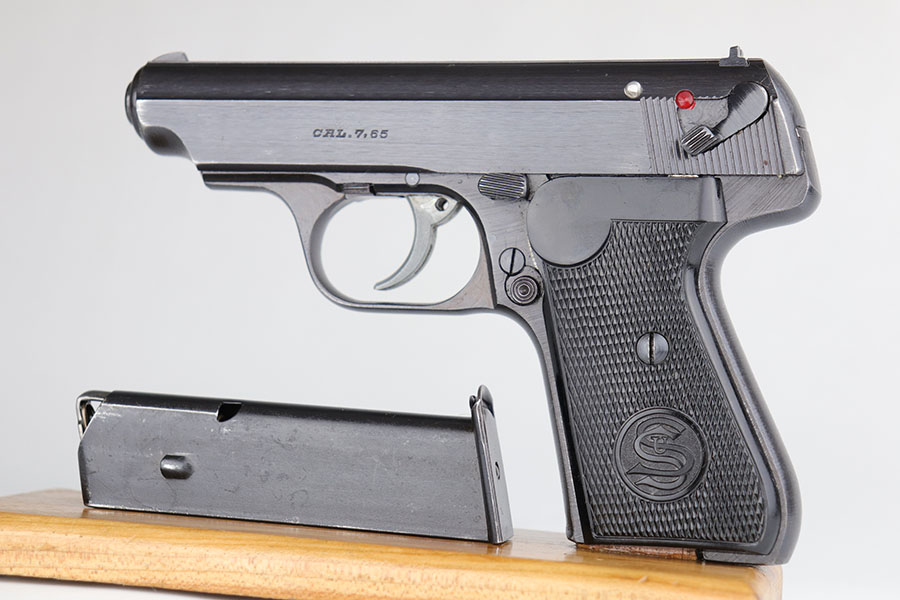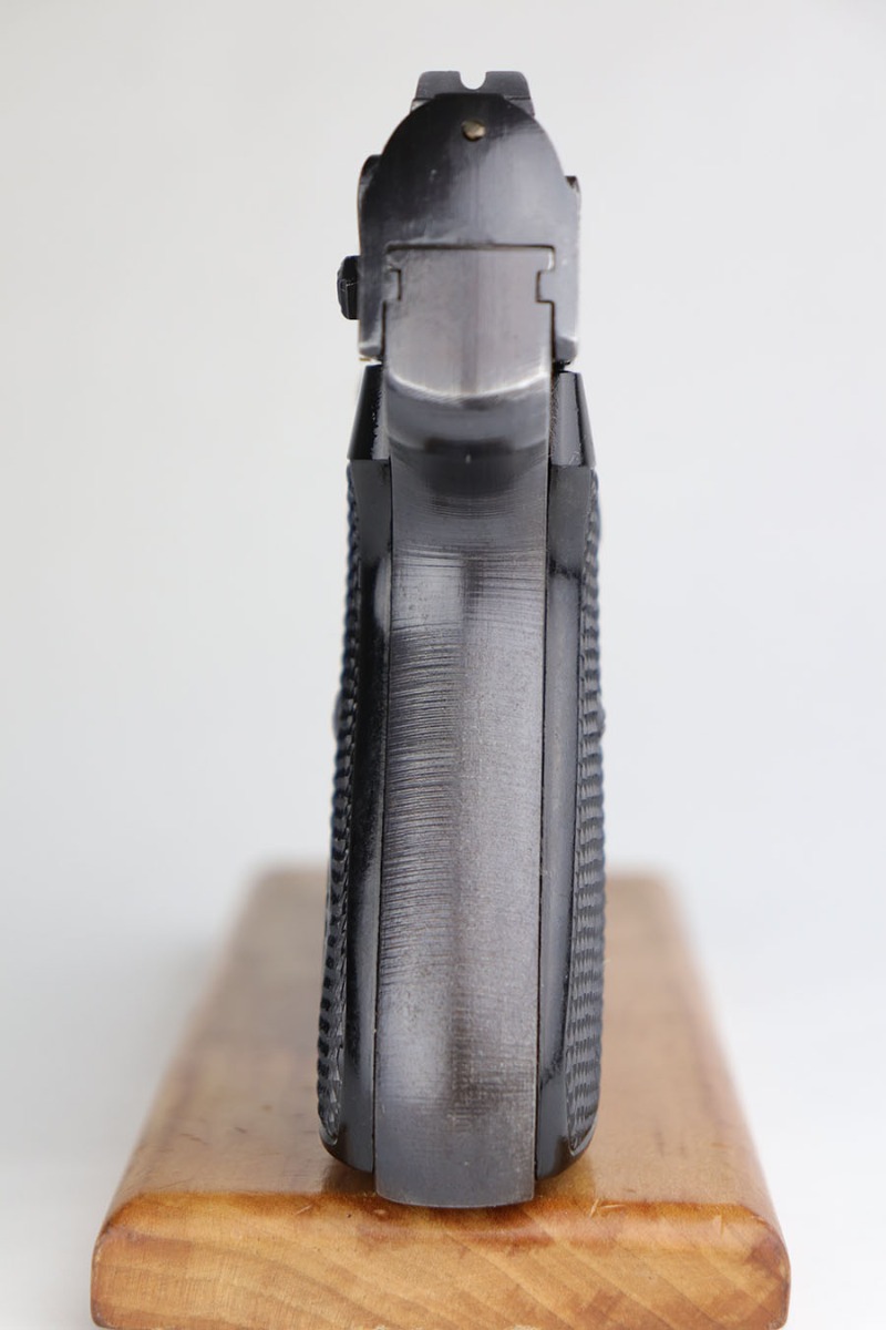 6/10/20 – This is a near-mint Sauer 38h that was made during the Nazi era for the German commercial market. It has 99% of the original military style blue remaining, with just minor hints of muzzle and high edge wear on the slide. Mint bore and similarly excellent grips. Half-moon magazine. Smooth/correct mechanics.