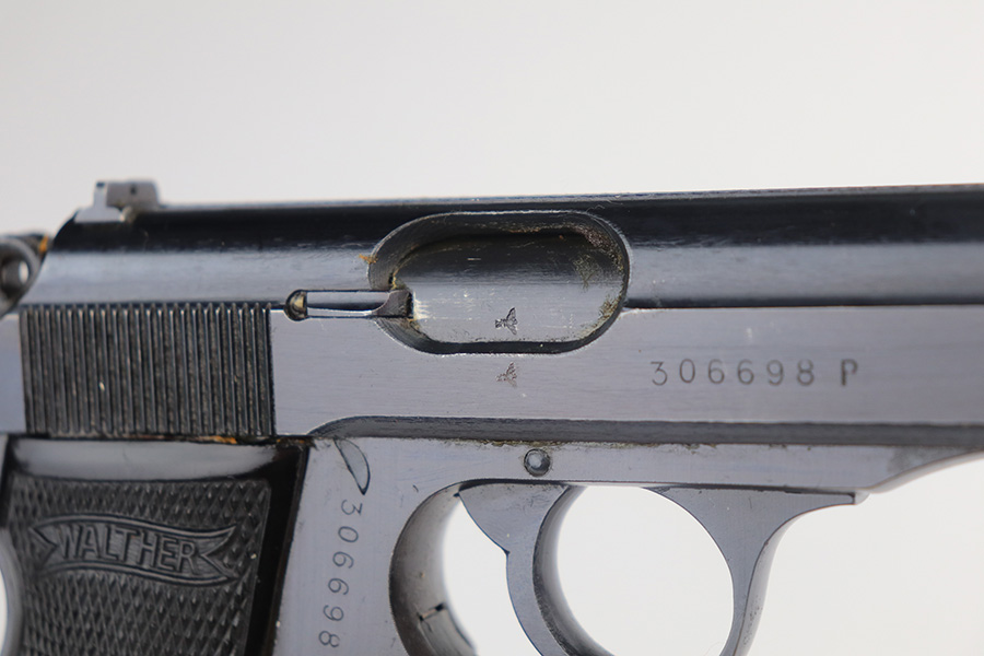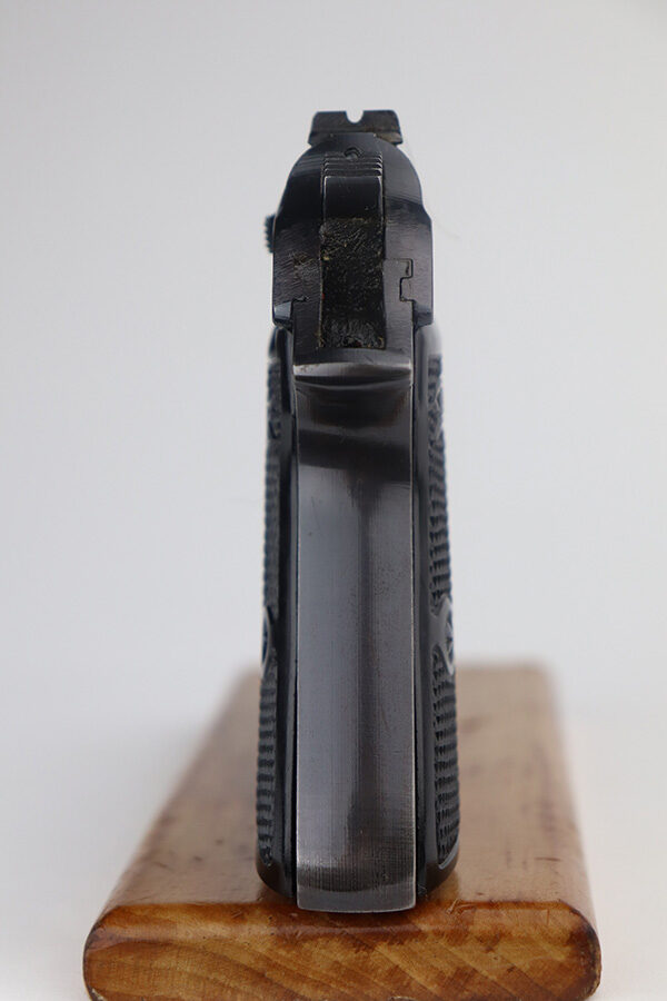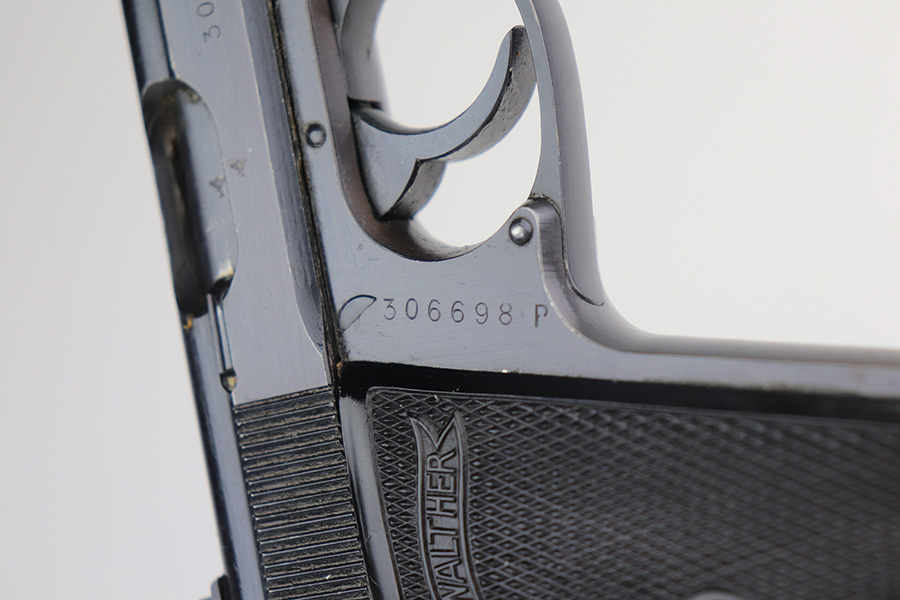 6/1/21 – This is a near-mint example of a Walther PP sold in the commercial market in 1943. It is all matching and has the proper “Eagle N” commercial proofs. It has retained more than 98% of its original finish. There is just a hint of wear around the muzzle and some of the high edges. A few very small micro-scratches here and there. Comes with excellent grips and a proper wartime magazine. Mint bore.