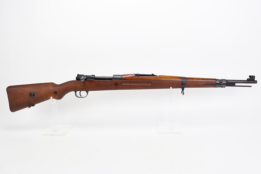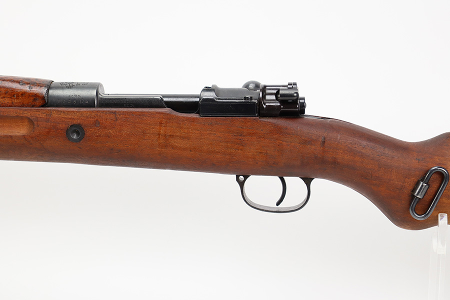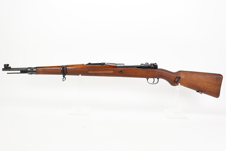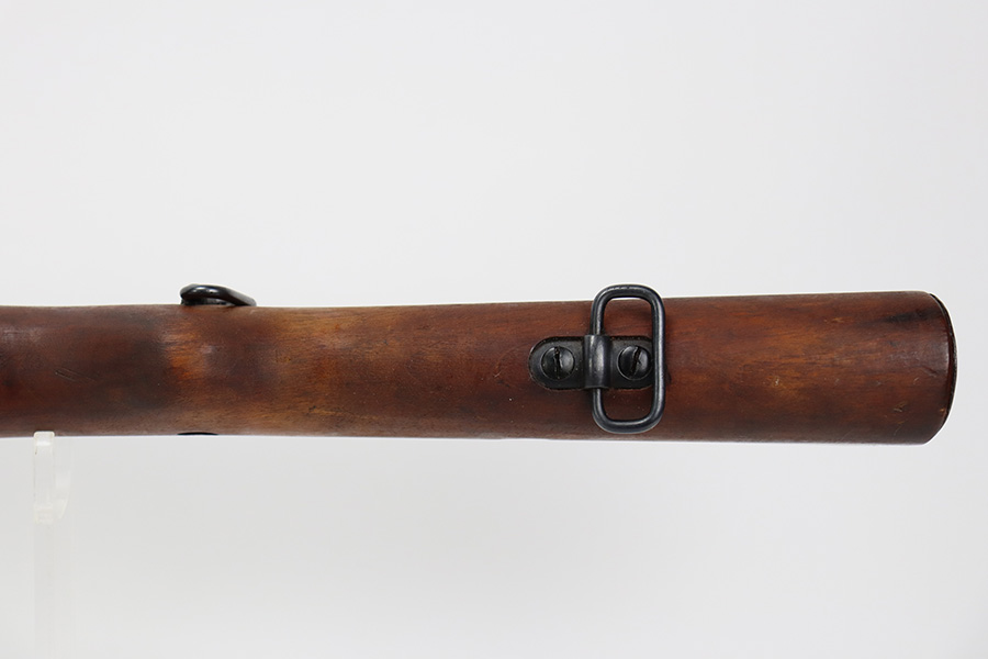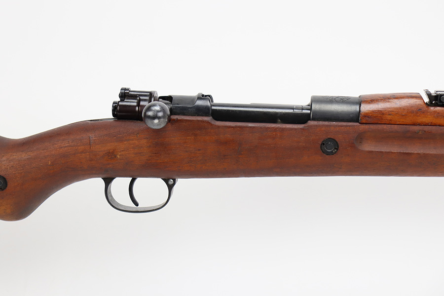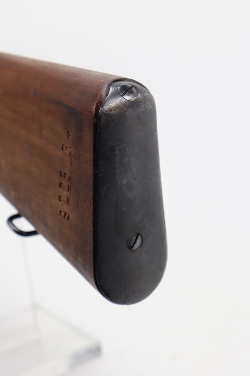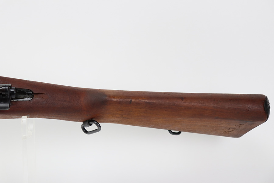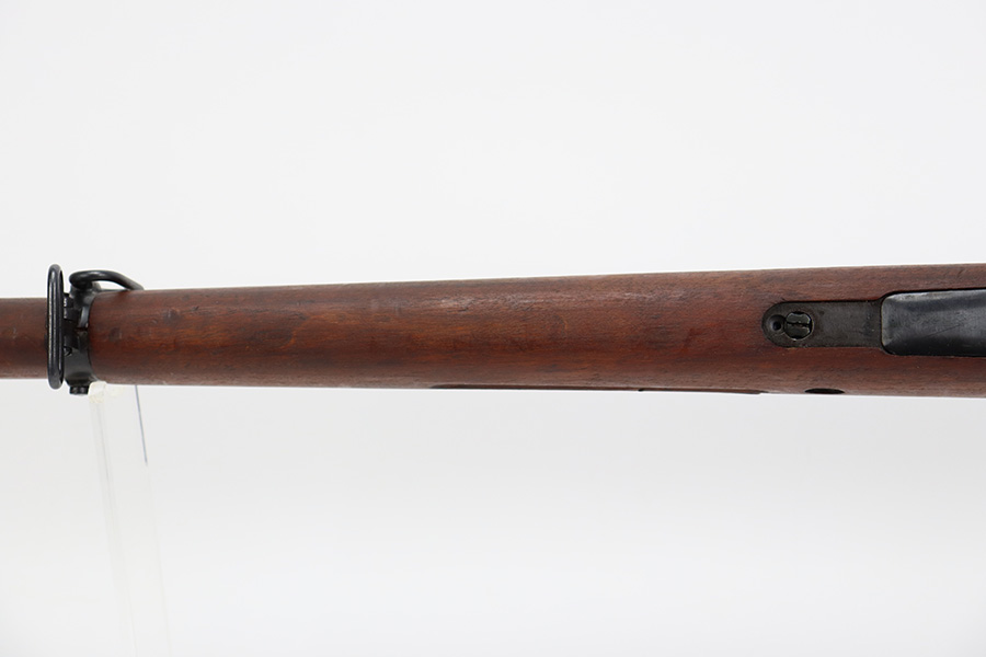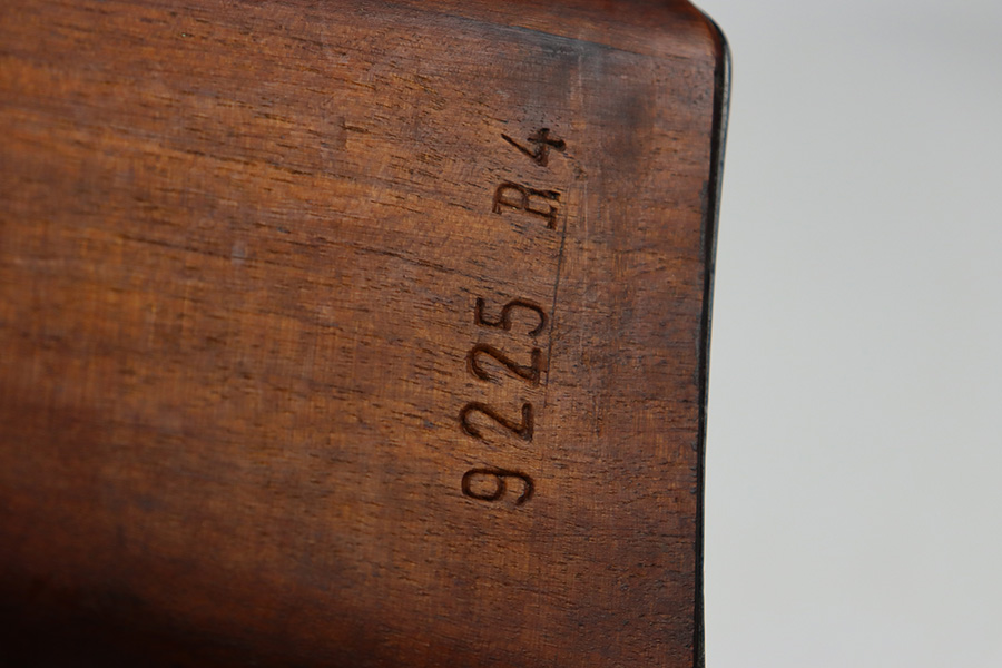 9/7/23 – This is a very nice Czech VZ.24 rifle with 1938 date on receiver. It’s arsenal refurbished, with matching numbers throughout but the bolt serial is hand etched. Excellent bluing throughout. Bore has strong rifling but some frost and pitting in the grooves. Minty stock, though handguard is visibly from a different rifle. Locking screws are missing from trigger assembly. Import mark on barrel.