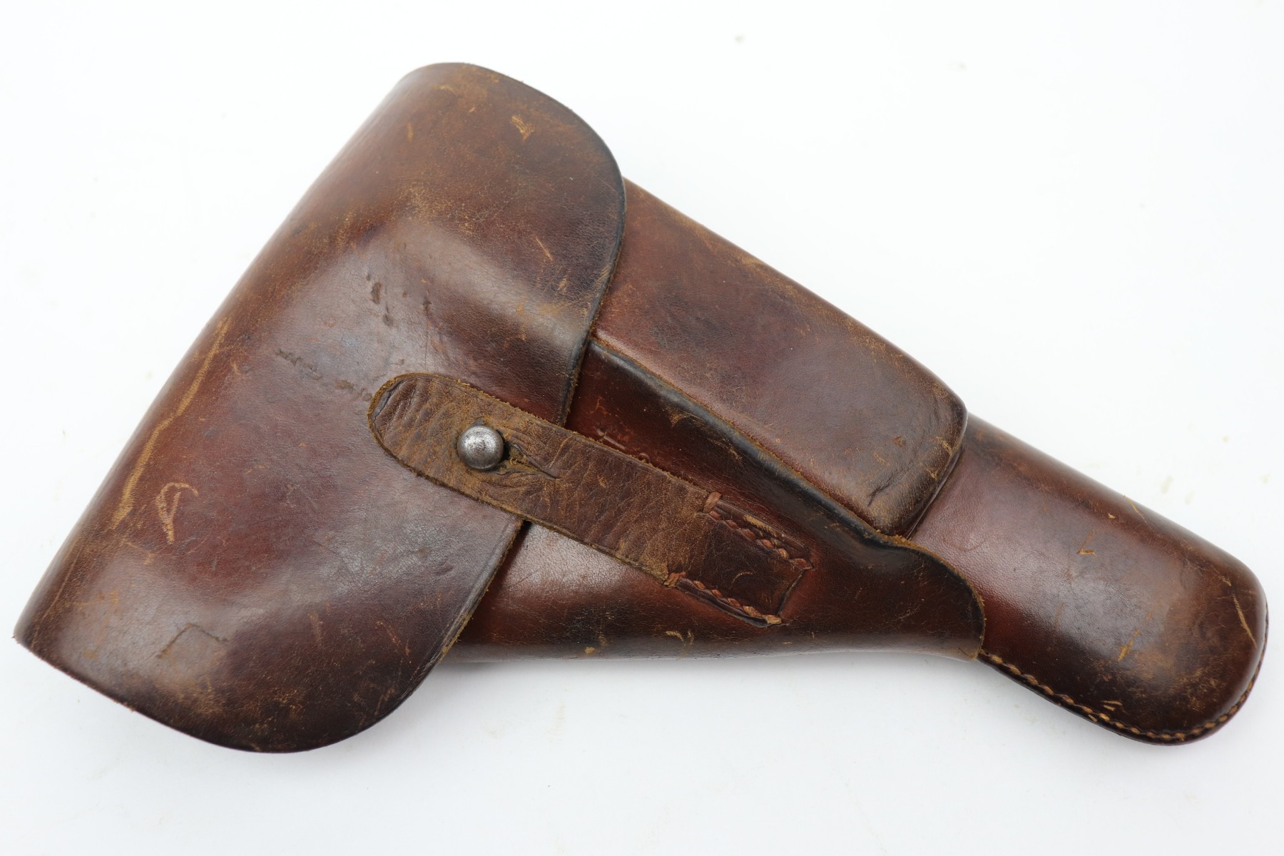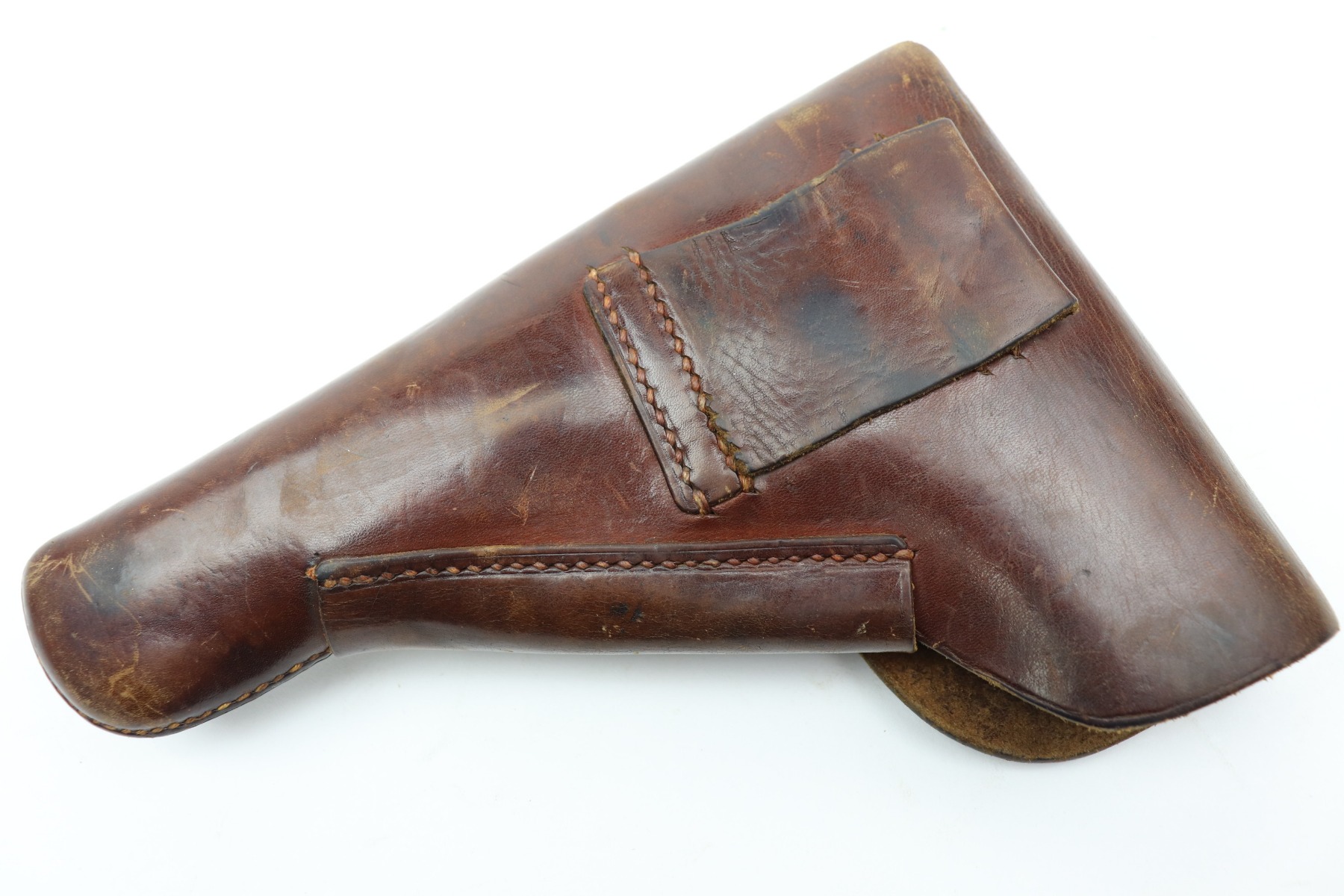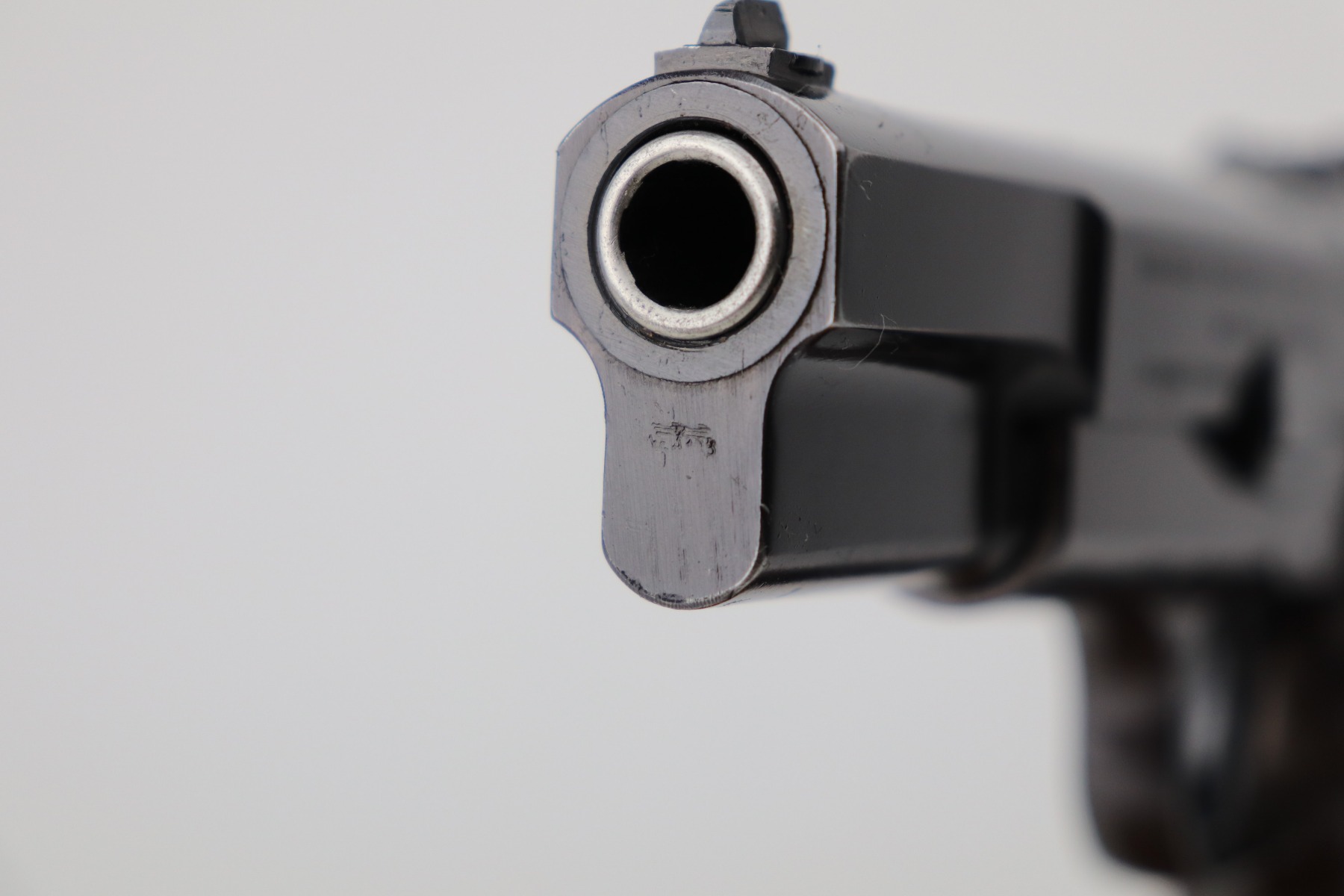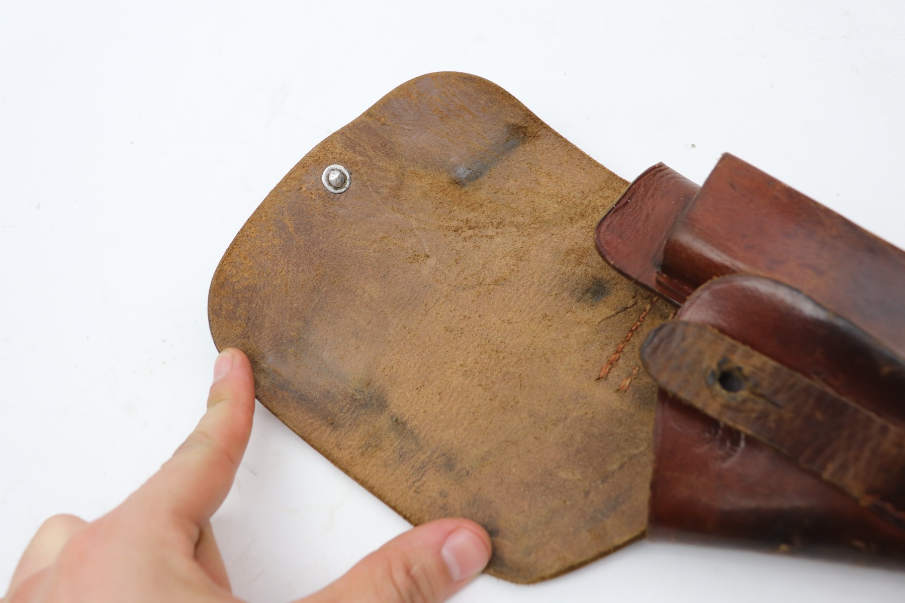 3/17/21 – This is a minty example of an FN Browning High Power rig issued to the Nazi military during WW2. This one has early features such as the adjustable rear sight, high polish finish, and early “Waffen 103” military proofs. All matching. The rig comes with a nice 1942-dated holster and a rare “Waffen 103” proofed magazine. The gun is minty, retaining more than 98% of its plumb-colored finish. There is just a hint of wear on some of the high edges and some light scratching on the back left side of the slide. Very minor freckling on the straps. Comes with excellent wood grips. Excellent bore – shiny with strong rifling.