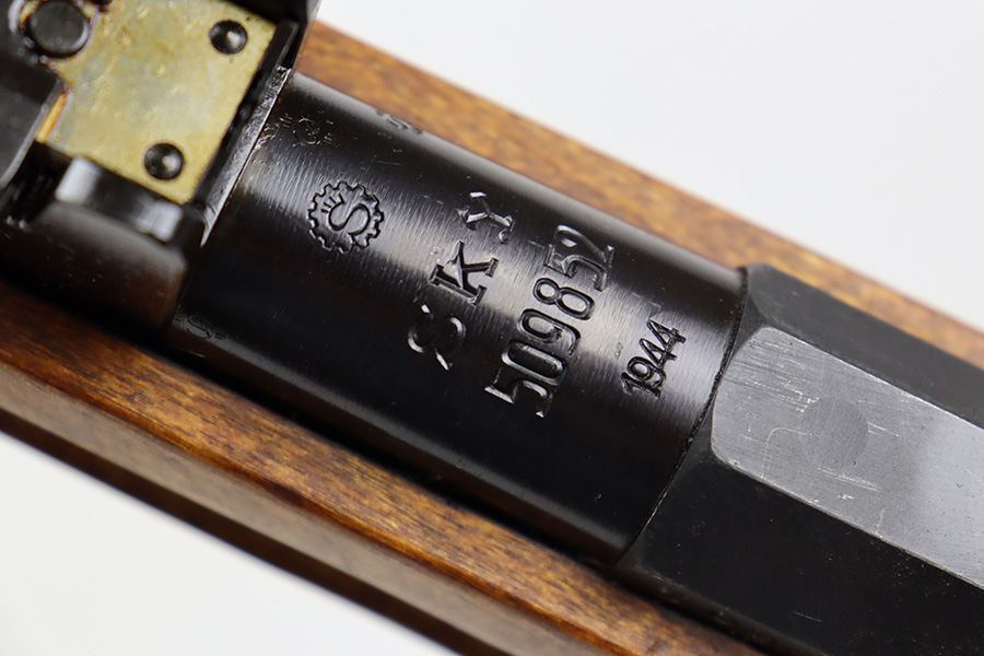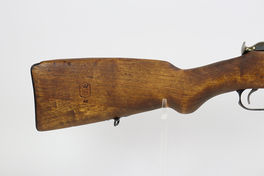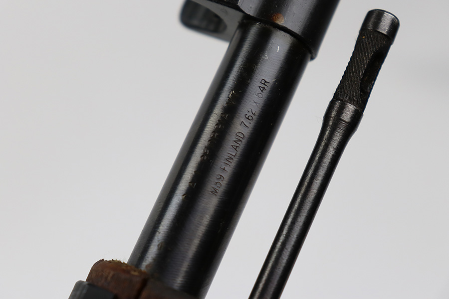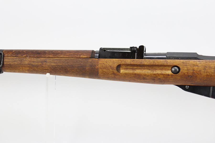 9/13/23 – This is minty Finnish Mosin Nagant M39, manufactured in 1944 and chambered in 7.62x54mmR. The M39 was an improvement over the other Finnish Mosin predecessors, and they are considered to be the finest and most accurate Mosin Nagant rifles ever made. This example features a rare and desirable SK.Y barrel, one of only 10,500 produced. At the time of import, this M39 was considered the highest serial number to exist in a 1944 M39. Even less commonly, this rifle has a matching mint SK.Y marked war time stock, and a proof hang tag. The metal has retained virtually all its finish, but there are minor signs of oxidation on both sides of the receiver, and one tiny spot of wear on the right side of the front sight. The rest of the metal is immaculate, and the wood furniture is also in pristine condition. Bore is absolutely stone mint.