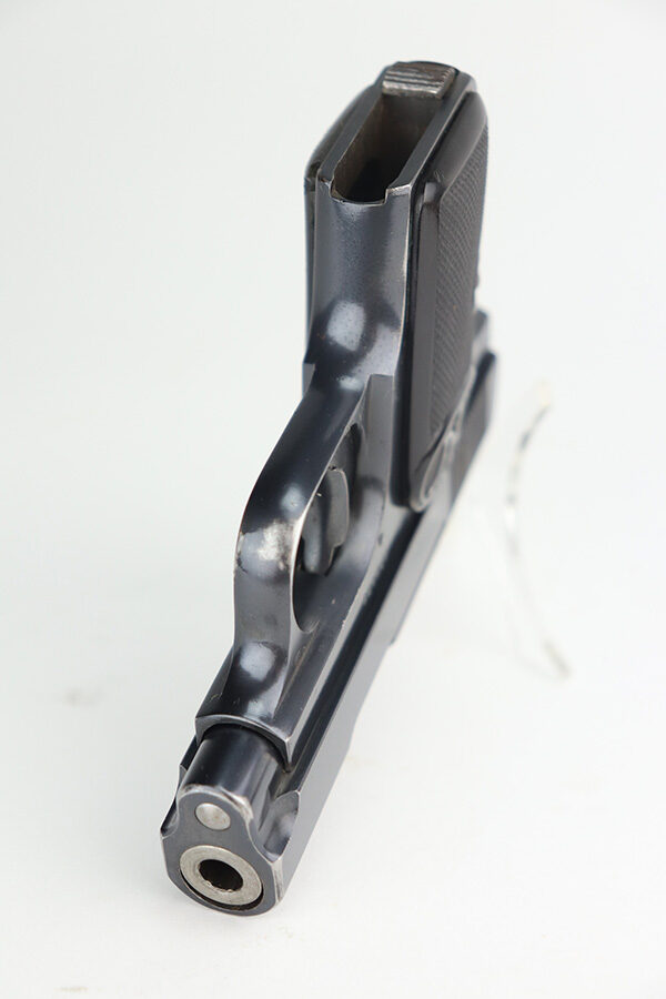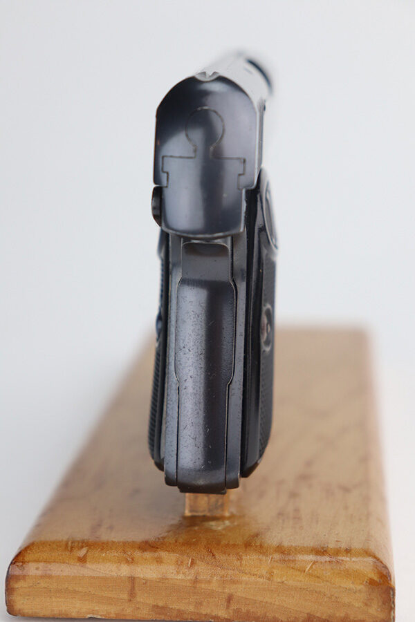 8/4/23 – This is a minty example of an FN Browning Model 1906 manufactured in the early 1900’s. The gun is all matching and has the proper Belgian proofs. Comes with one proper magazine. It has retained about 97-98% of its bluing. There are just hints of wear on the high edges and very minor wear around the muzzle and underside of the trigger guard. Tiny dots of oxidation on the straps. Comes with excellent grips. The rifling in the bore is a little worn with pin-pricking throughout.