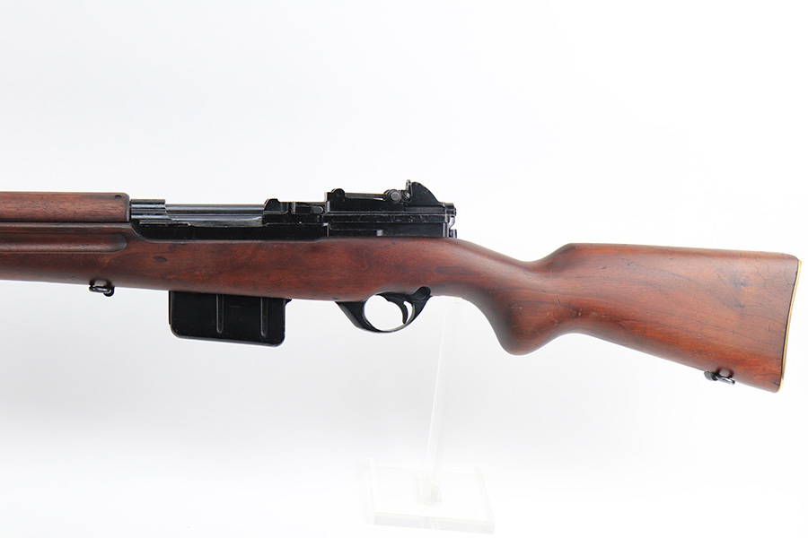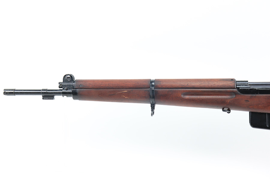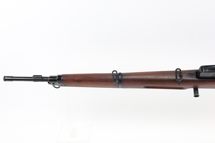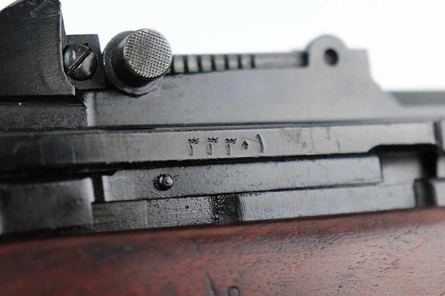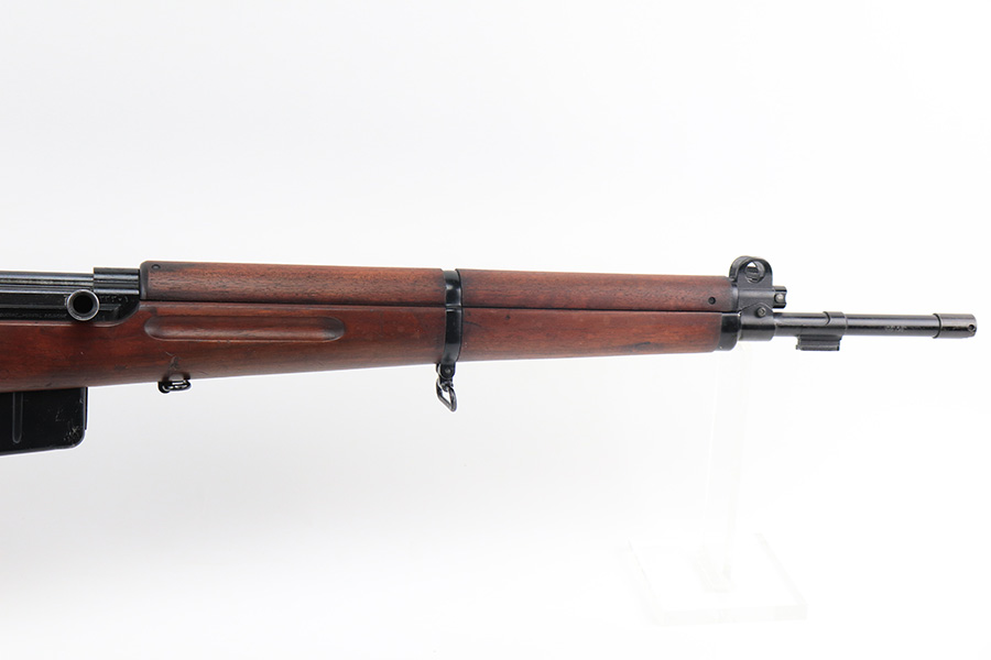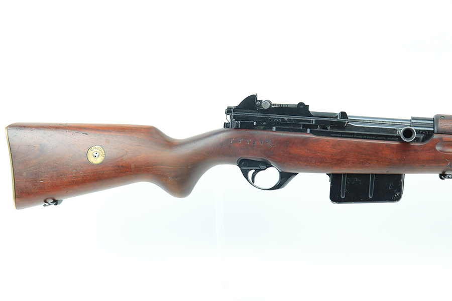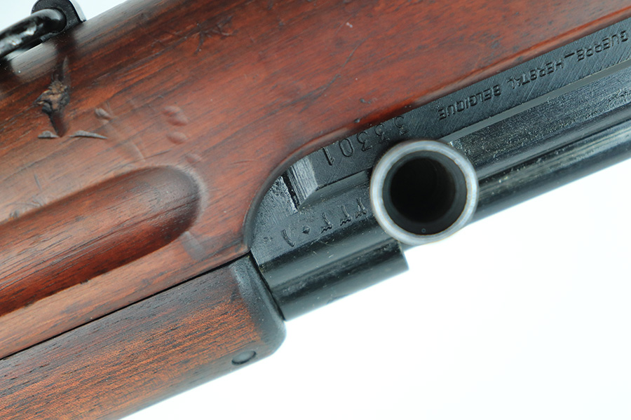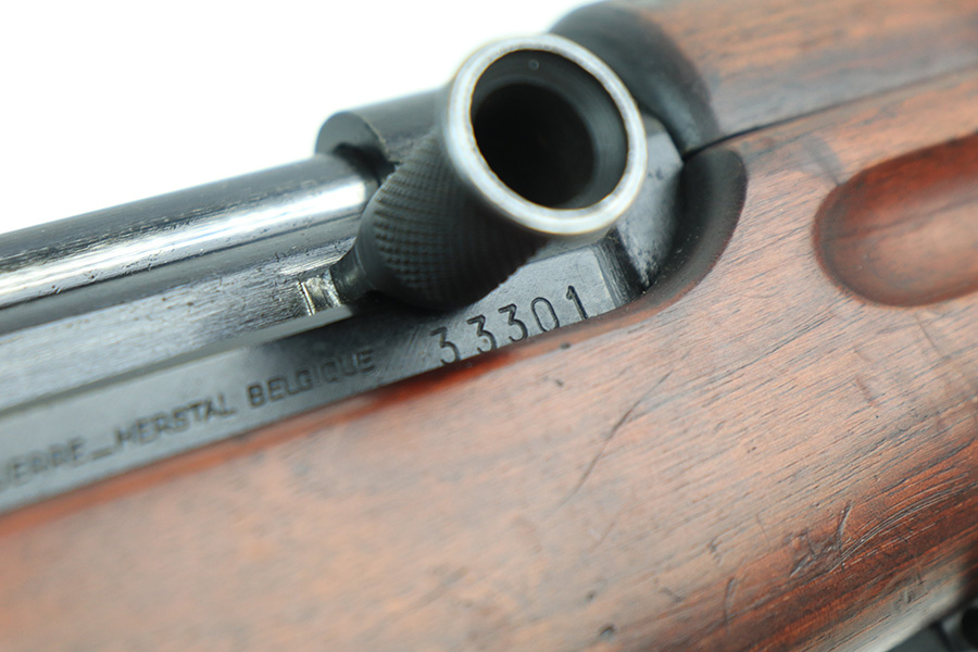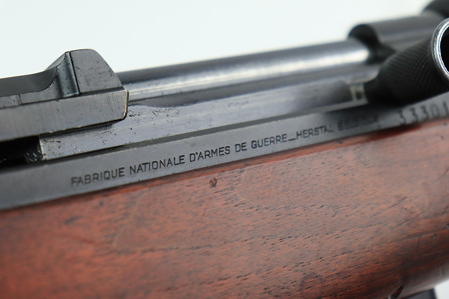 12/10/21 – This is a minty example of an FN Model 1949 rifle that was part of an Egyptian military contract. There’s just a tiny bit of finish loss on the barrel and a little more on top of the receiver. There’s also an import mark on the barrel. The FN49 was designed by the Belgian manufacturer Fabrique Nationale before WWII; however, plans to produce the semi-automatic rifle were abandoned when the Germans occupied Belgium. Many FN engineers fled to England during the war and returned to Belgium when it was liberated by the allies in 1944. With their return to Belgium these engineers revitalized their plans for what would eventually become the FN49 (also known as the SAFN short for “semi-automatic FN”). While the FN49 was high quality in its time, it saw limited production and use because it did not come into production until after WWII and it eventually had to compete with the popular HK G3 and FN FAL rifles which utilized more modern technology. The FN49 was produced for 8 primary contracts. This particular rifle was produced for the second contract which brought 37,641 FN49 rifles to Egypt in 1949. Many rifles in this contract were used in Suez Crisis in 1956. As with all Egyptian contract FN49s, this rifle is chambered for 7.92x57mm Mauser. The receiver, stock and barrel are matching serials in Arabic numerals (see photos). Markings, including the Egyptian crest, are sharp and clear on the receiver. The stock is in terrific condition, with original stock disk present. One notable ding, and a surface scratch on the left side. Strong, shiny bore that does have a little frost throughout.