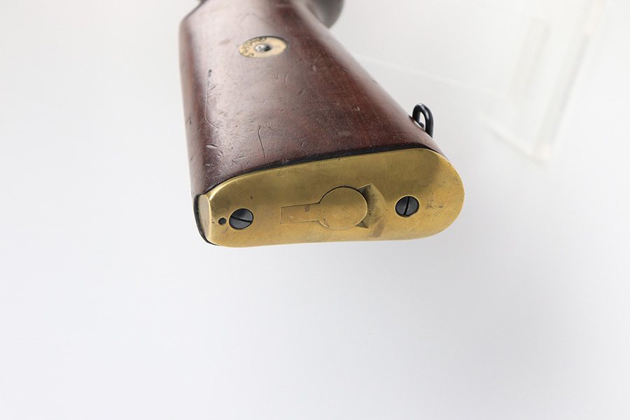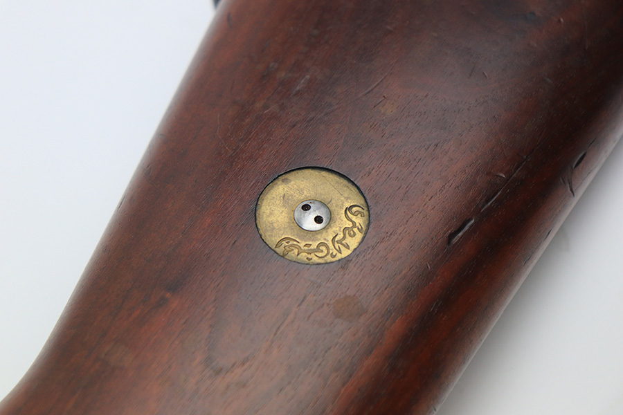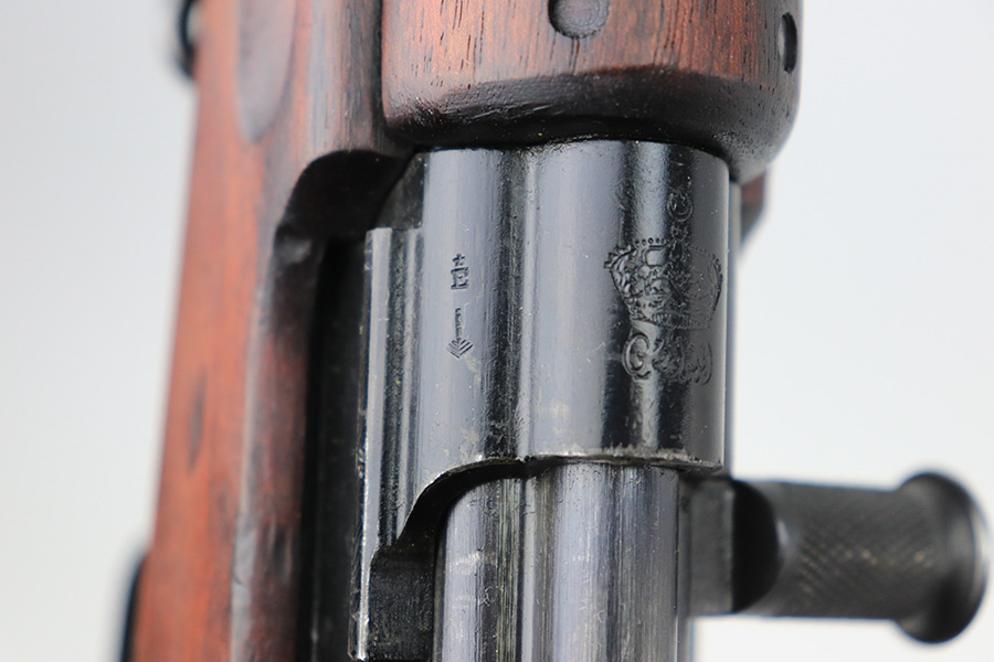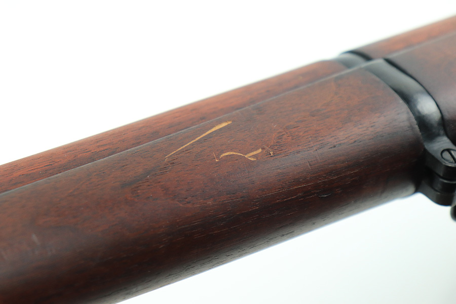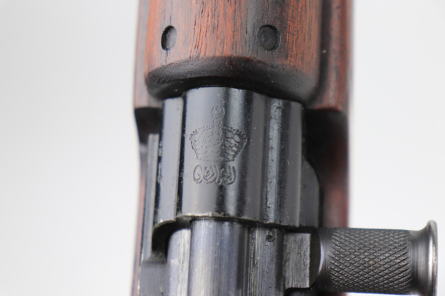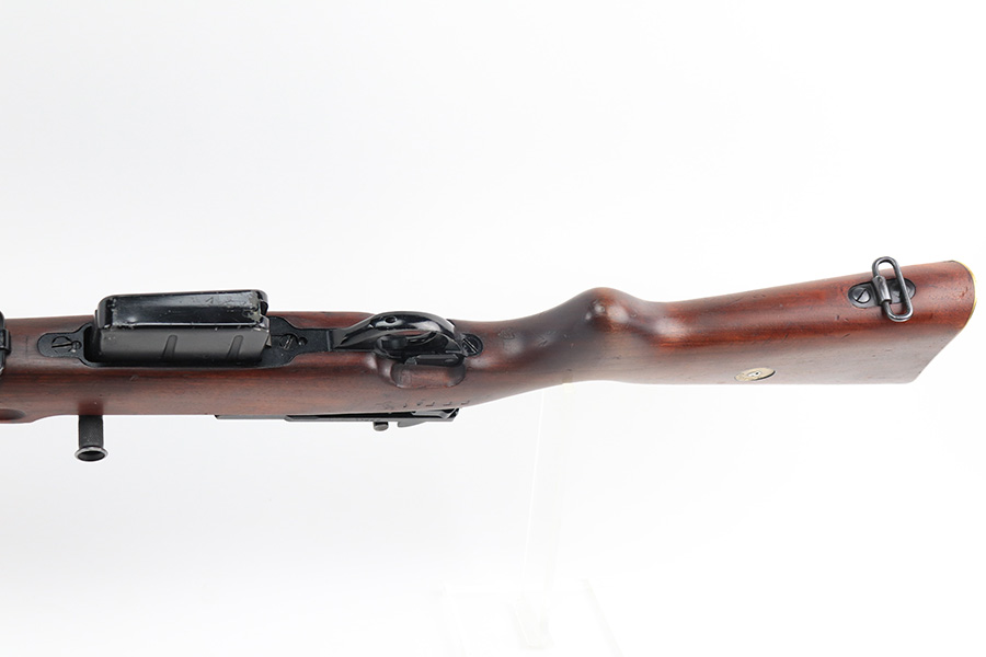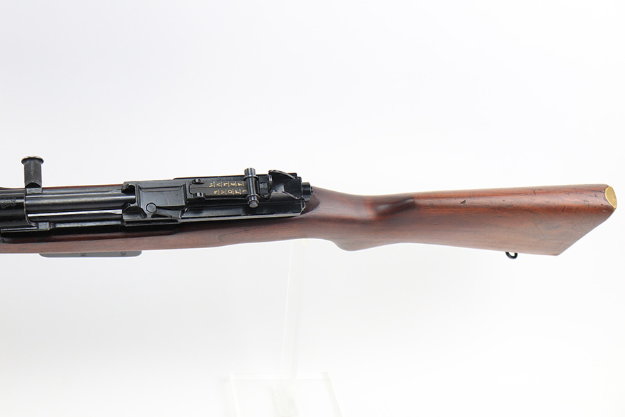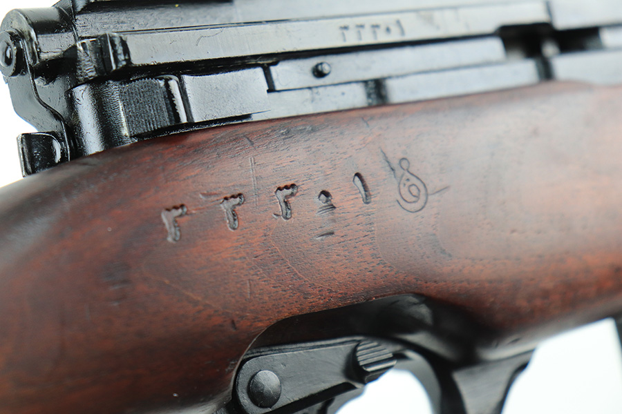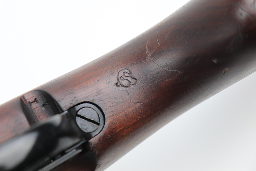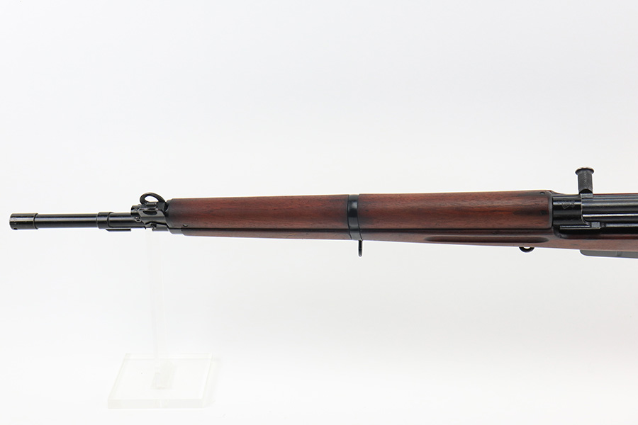 12/10/21 – This is a minty example of an FN Model 1949 rifle that was part of an Egyptian military contract. There’s just a tiny bit of finish loss on the barrel and a little more on top of the receiver. There’s also an import mark on the barrel. The FN49 was designed by the Belgian manufacturer Fabrique Nationale before WWII; however, plans to produce the semi-automatic rifle were abandoned when the Germans occupied Belgium. Many FN engineers fled to England during the war and returned to Belgium when it was liberated by the allies in 1944. With their return to Belgium these engineers revitalized their plans for what would eventually become the FN49 (also known as the SAFN short for “semi-automatic FN”). While the FN49 was high quality in its time, it saw limited production and use because it did not come into production until after WWII and it eventually had to compete with the popular HK G3 and FN FAL rifles which utilized more modern technology. The FN49 was produced for 8 primary contracts. This particular rifle was produced for the second contract which brought 37,641 FN49 rifles to Egypt in 1949. Many rifles in this contract were used in Suez Crisis in 1956. As with all Egyptian contract FN49s, this rifle is chambered for 7.92x57mm Mauser. The receiver, stock and barrel are matching serials in Arabic numerals (see photos). Markings, including the Egyptian crest, are sharp and clear on the receiver. The stock is in terrific condition, with original stock disk present. One notable ding, and a surface scratch on the left side. Strong, shiny bore that does have a little frost throughout.